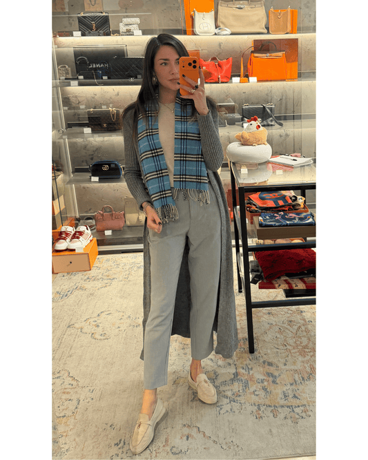 SCIARPA BURBERRY CHECK AZZURRO LANA