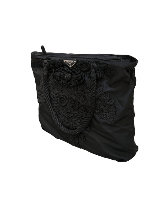 BORSA PRADA NERA CON LAVORAZIONE IN CORDA