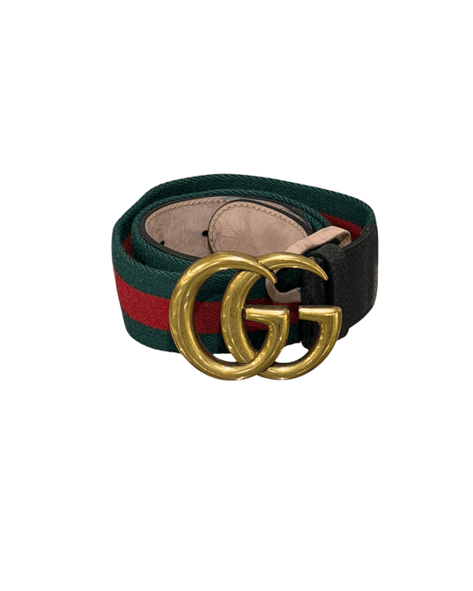 CINTURA GUCCI FASCIA WEB ROSSA E VERDE HARDWARE DORATO