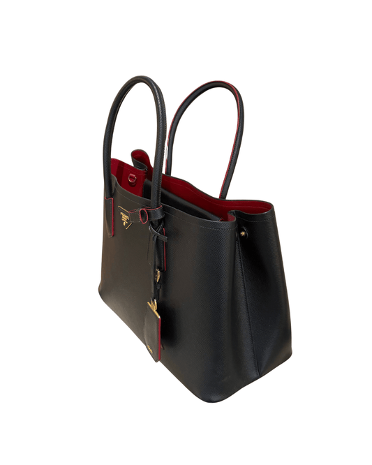 SHOPPER PRADA SAFFIANO NERA RIFINITURE ROSSE