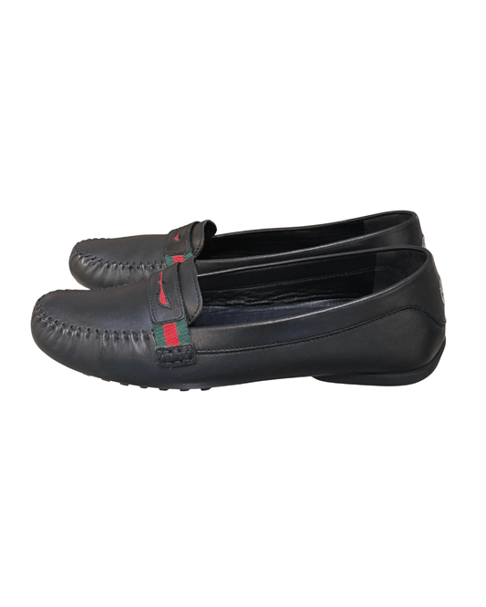 MOCASSINI GUCCI NERI FASCIA WEB NR 37.5