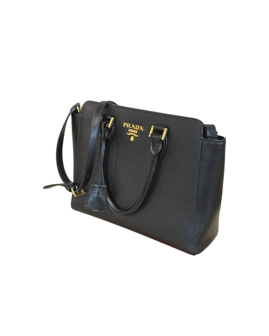 SHOPPER TESSUTO BLU PRADA PELLE SAFFIANO