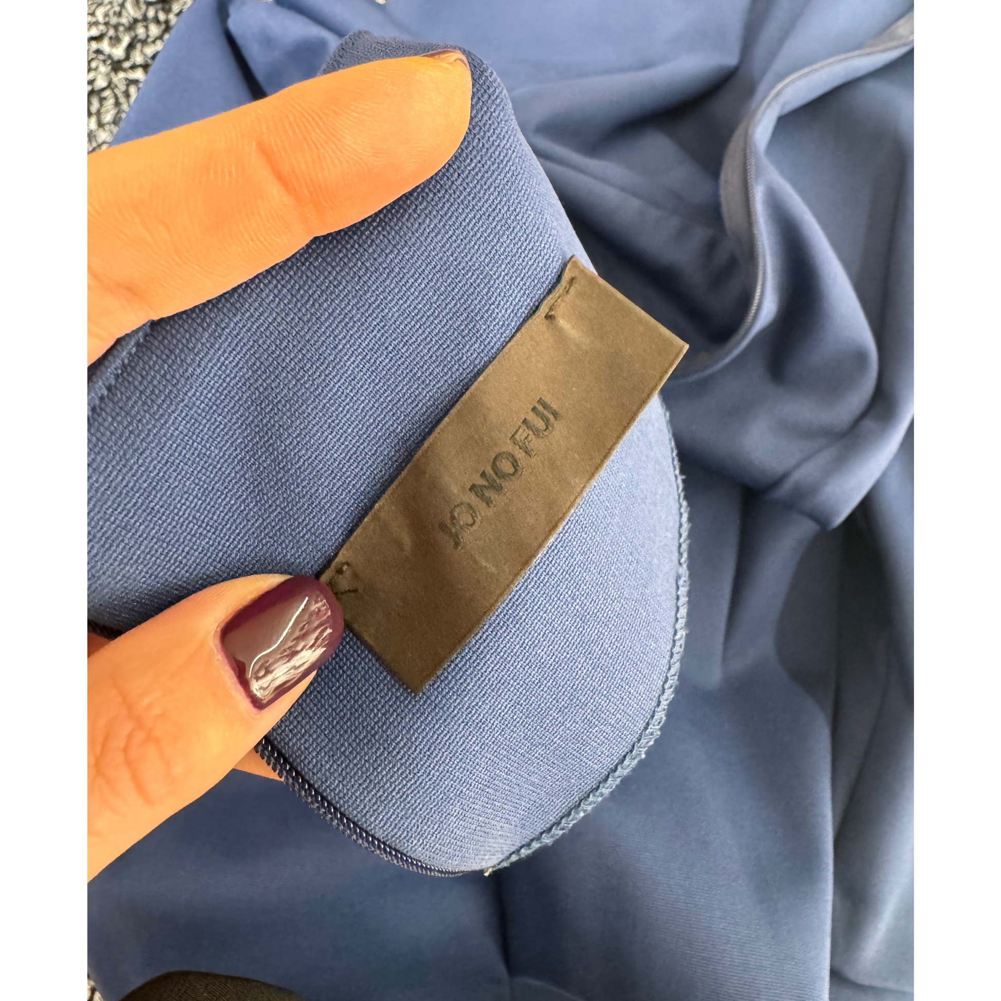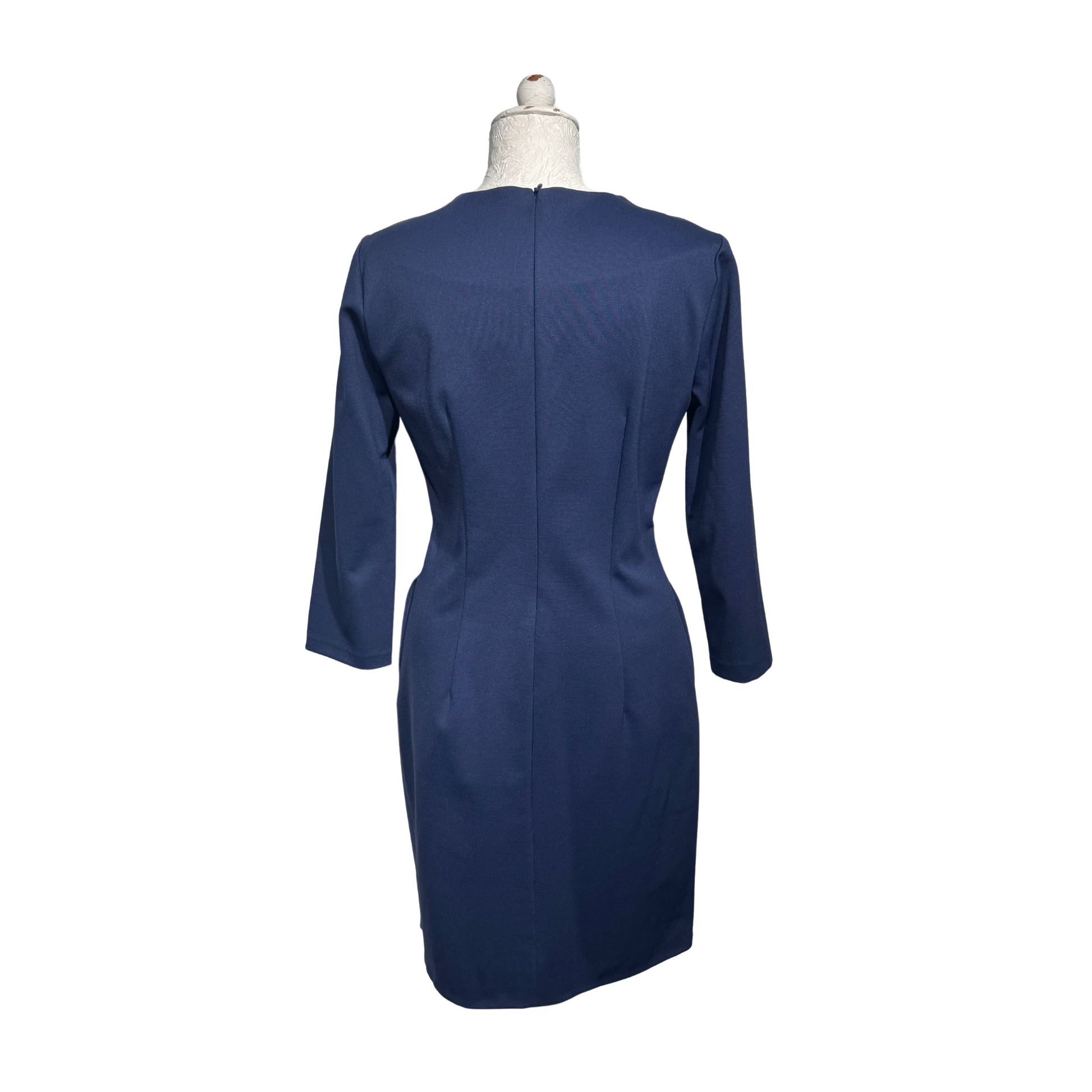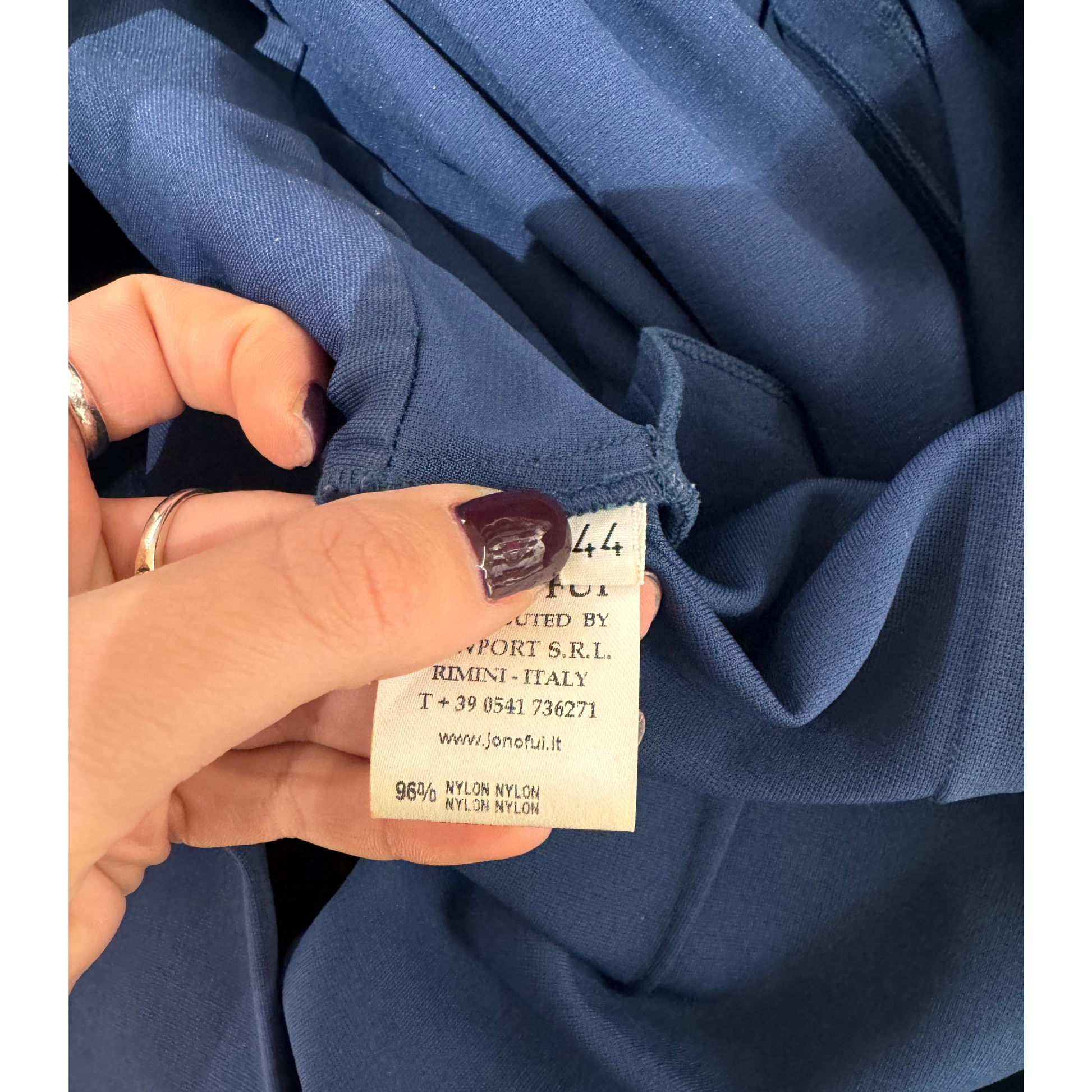 Abito Jo No Fui blu in nylon. Manica a tre quarti. Apertura posteriore con cerniera. Scollo a V. Molto elegante.