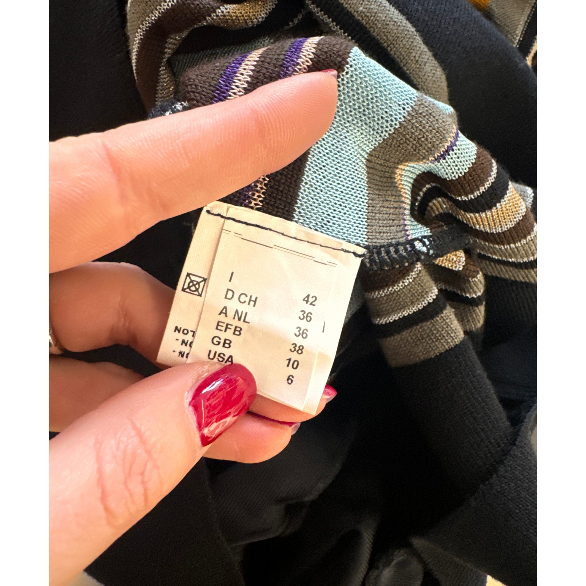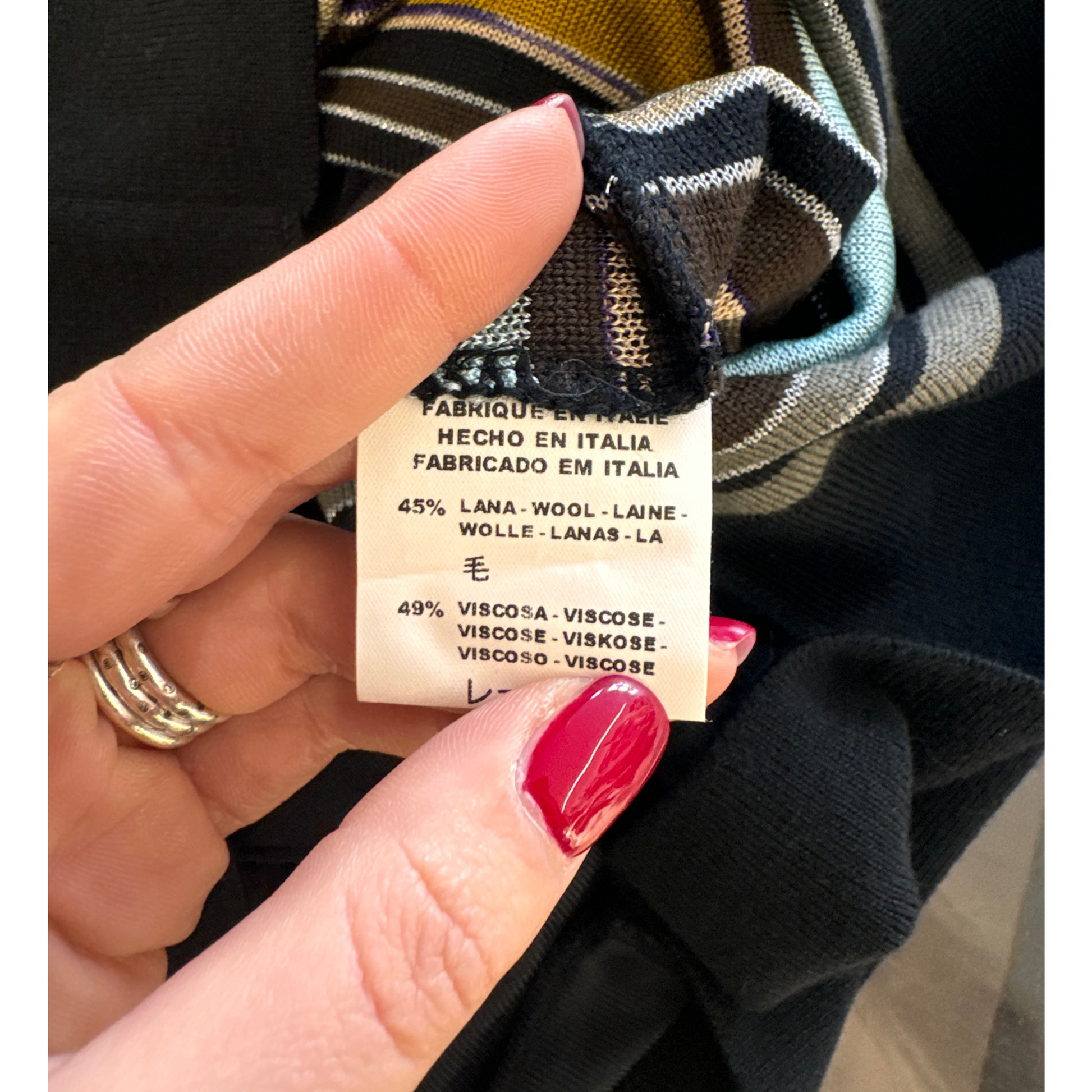 Abito Missoni in lana e viscosa a righe. Maniche e cintura in vita nere. Scollo morbido. Perfetto per l'autunno/inverno