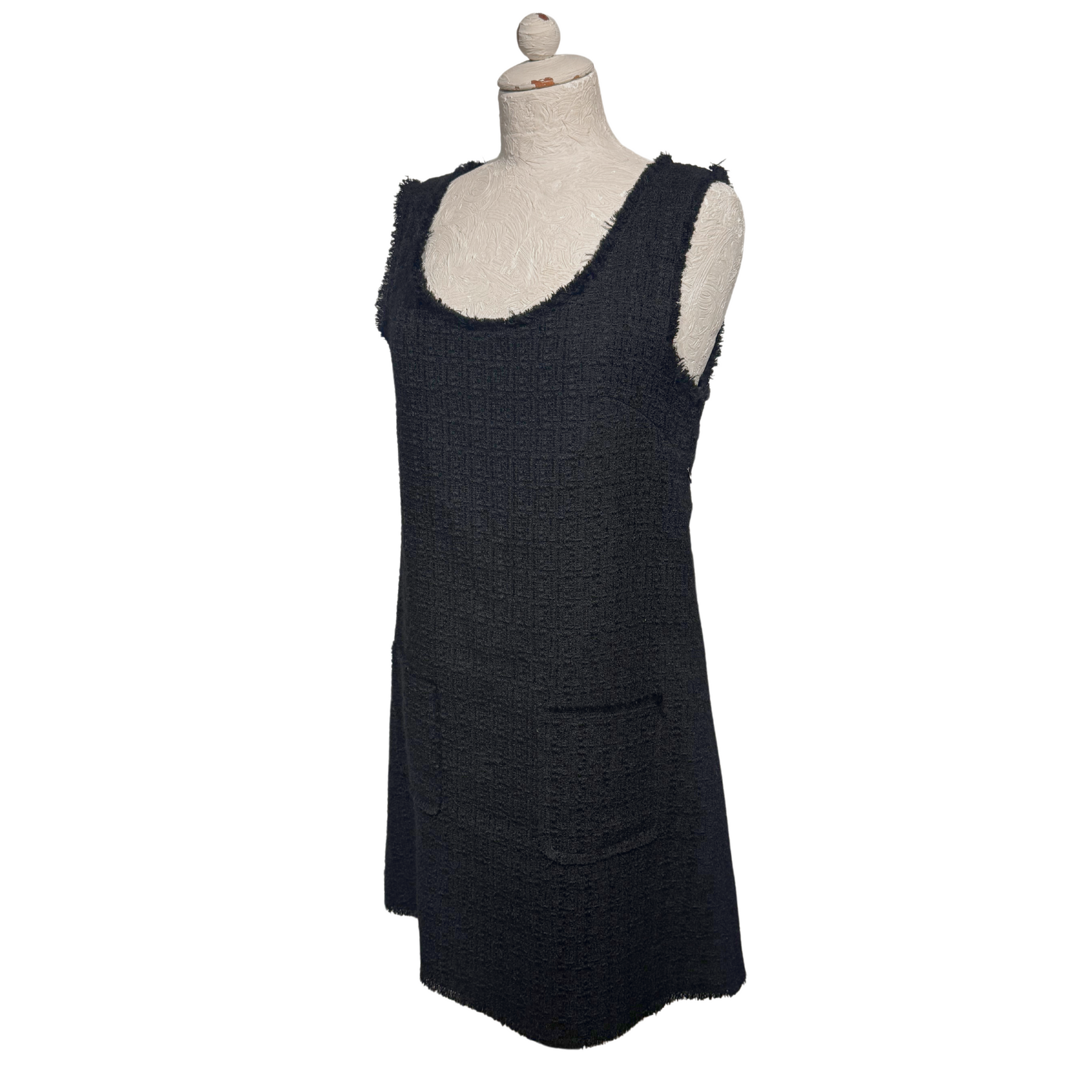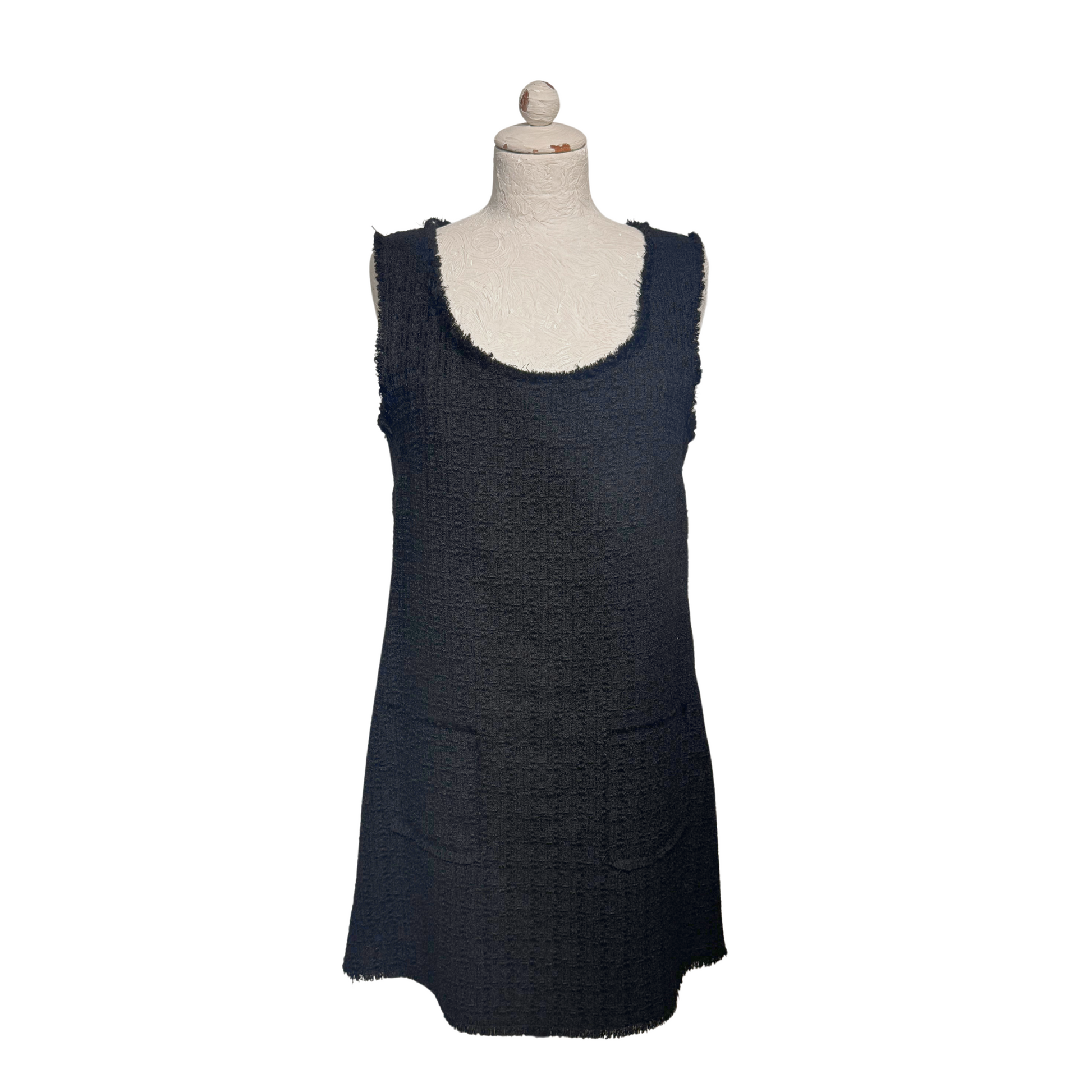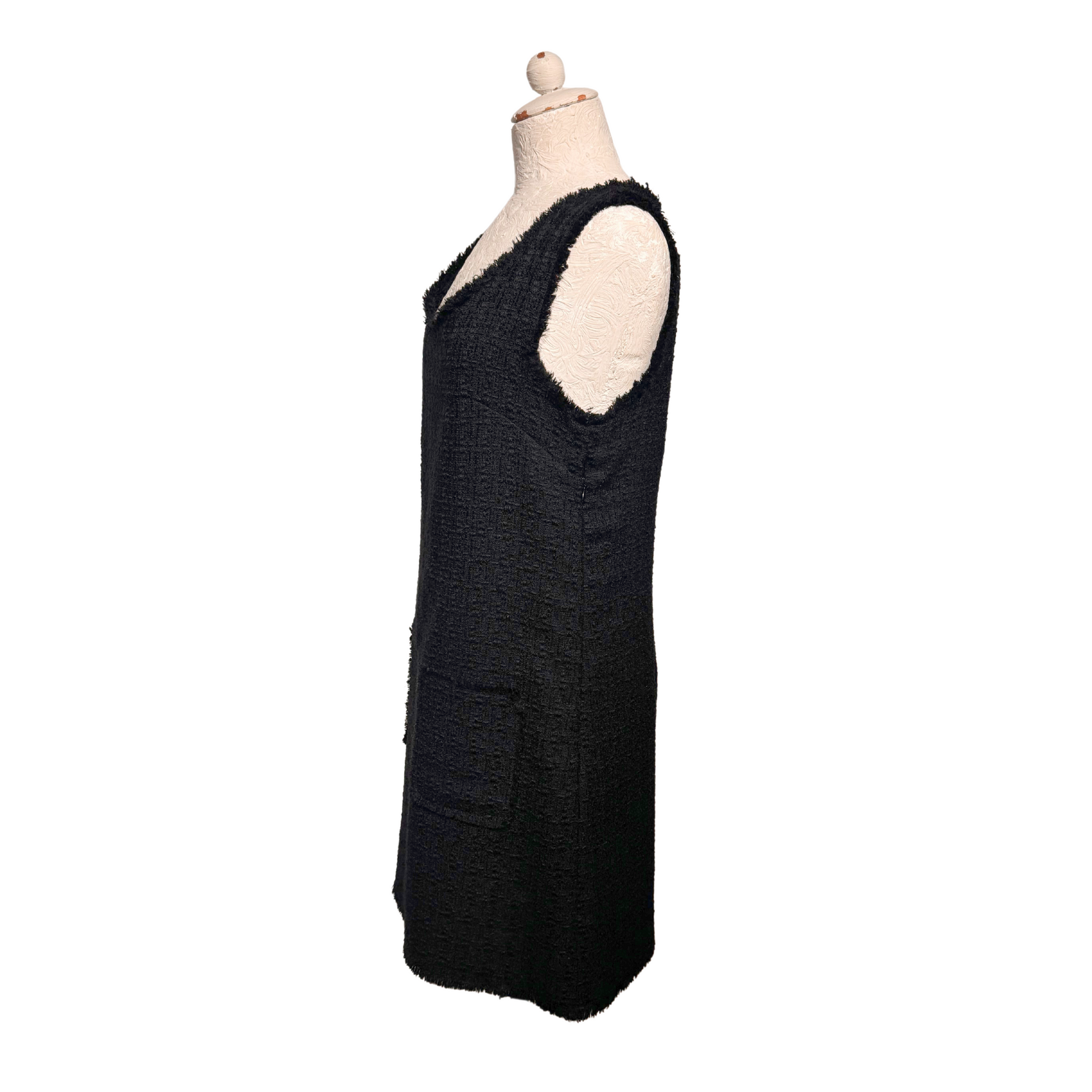 Abito PAROSH smanicato nero tessuto pesante(effetto Chanel ) Tasche laterali. Apertura laterale con cerniera.