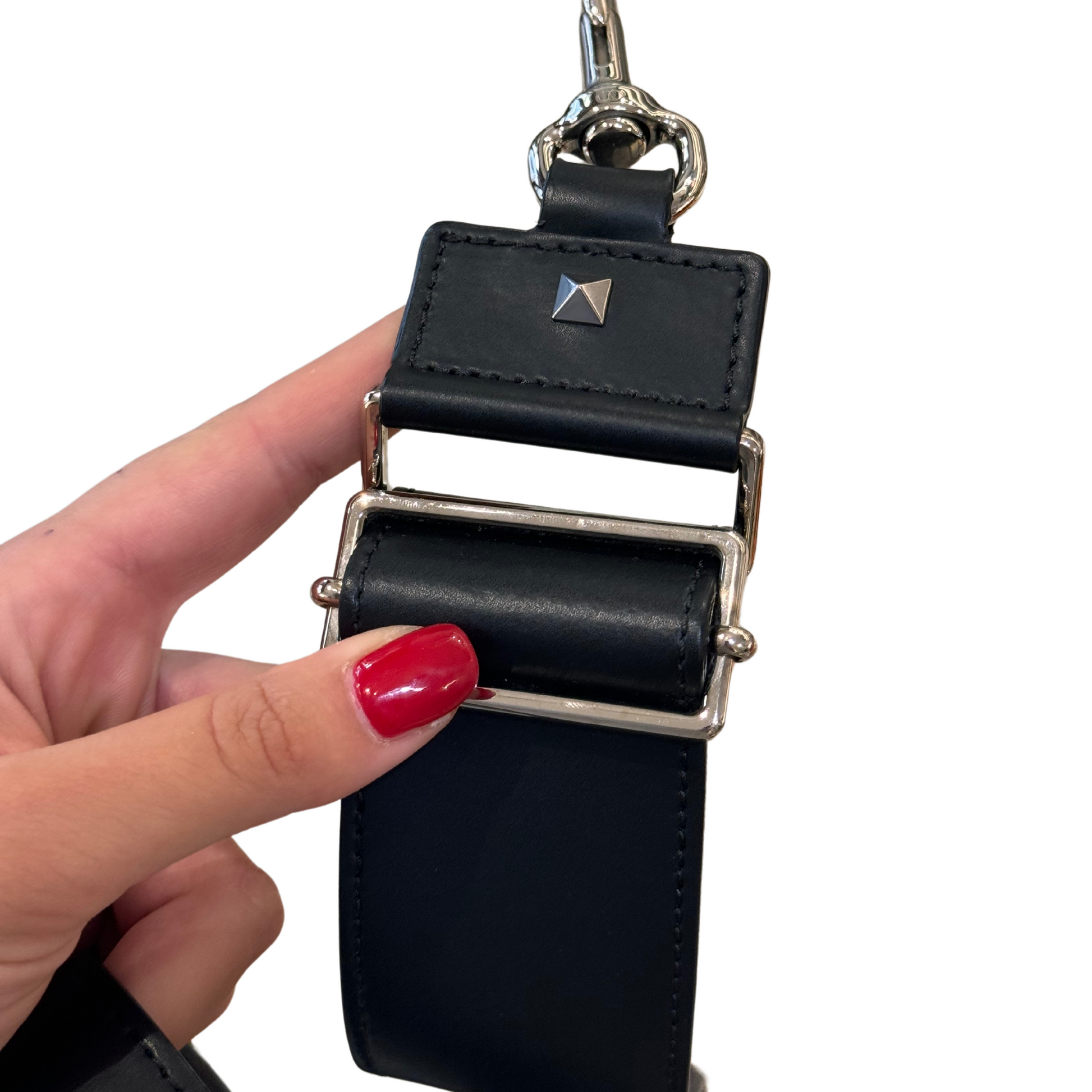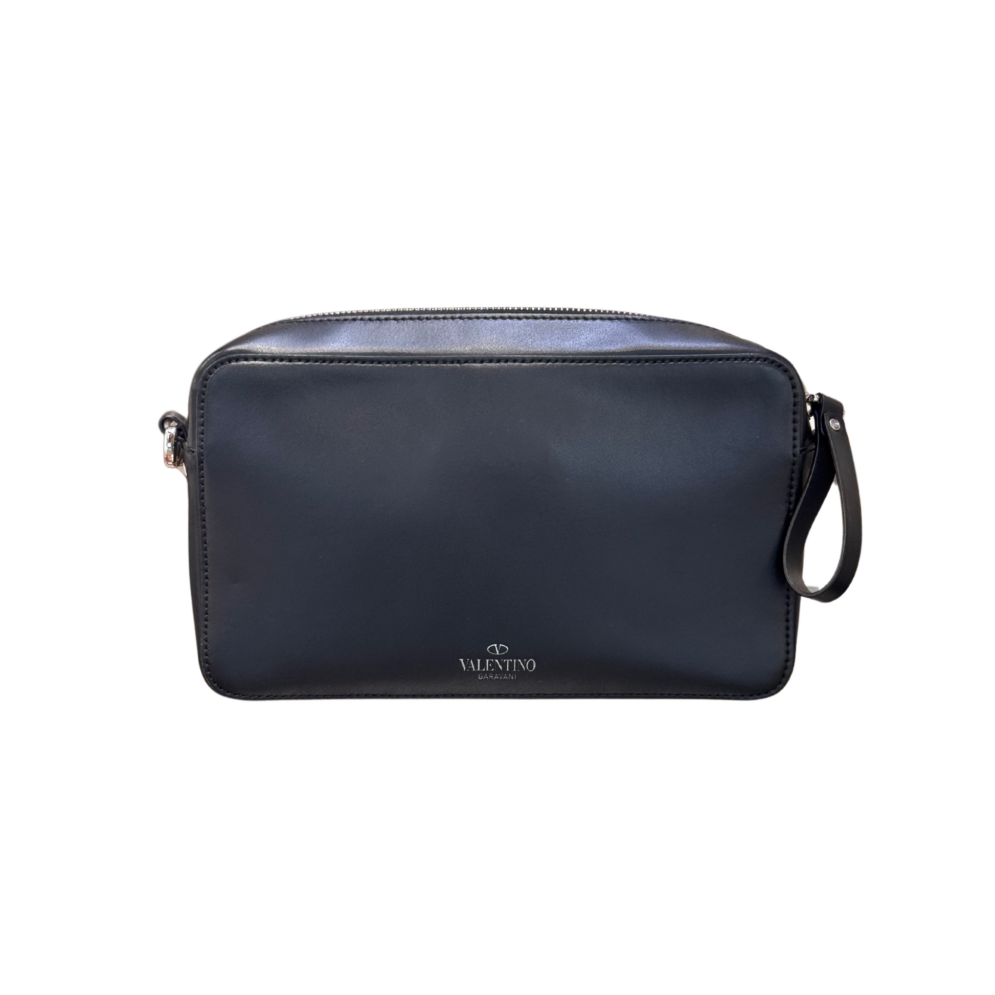 Borsa a tracolla unisex di Valentino relizzata in pelle di vitello liscia nera con scritta frontale VLTN bianca. Tracolla in pelle amovibile e regolabile. Apertura superiore con cerniera. Dettaglio borchie argentate. Interno nero. Logo Valentino Garavani posteriore.