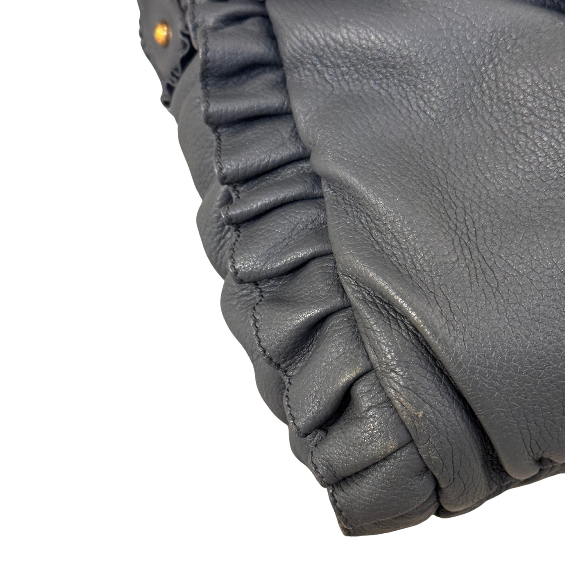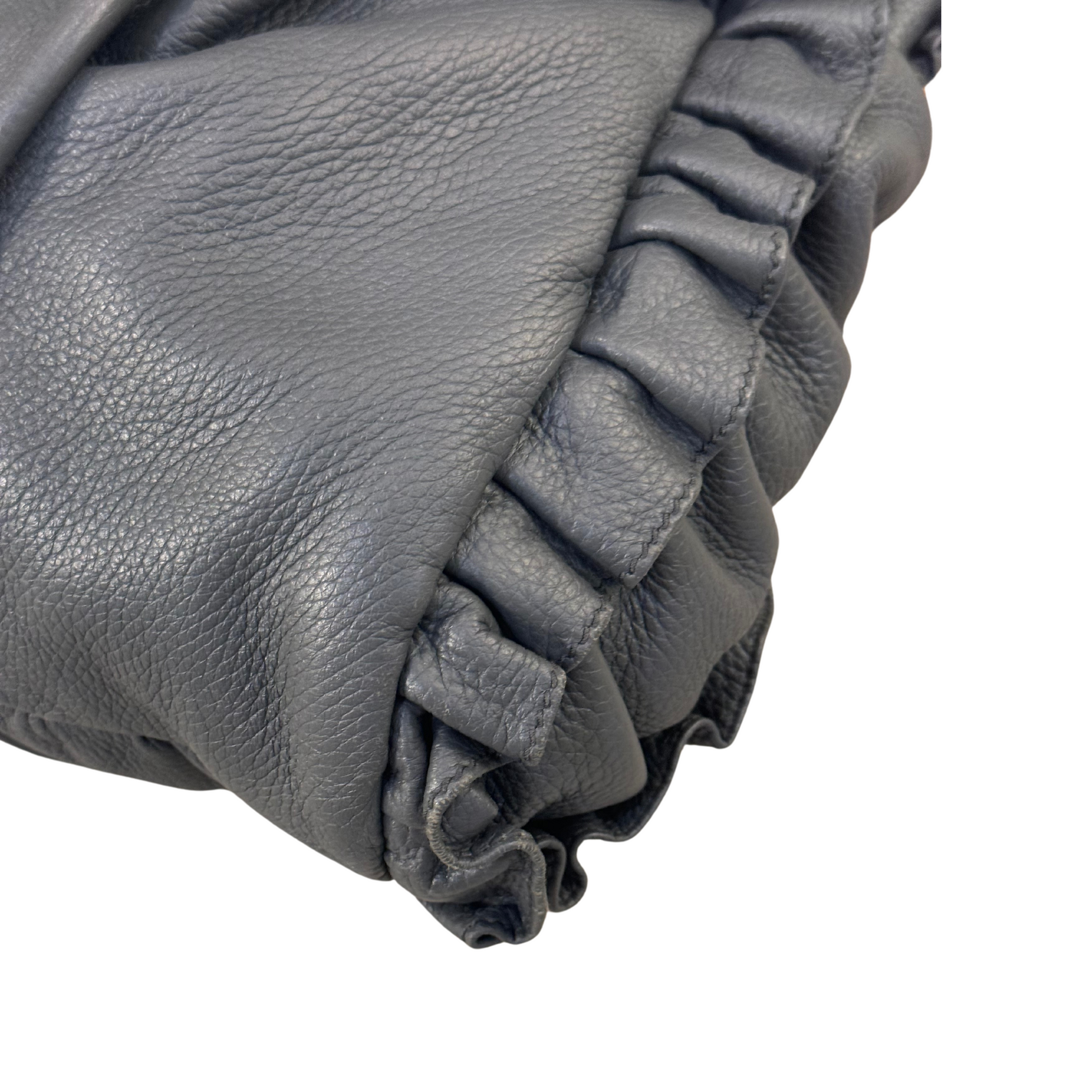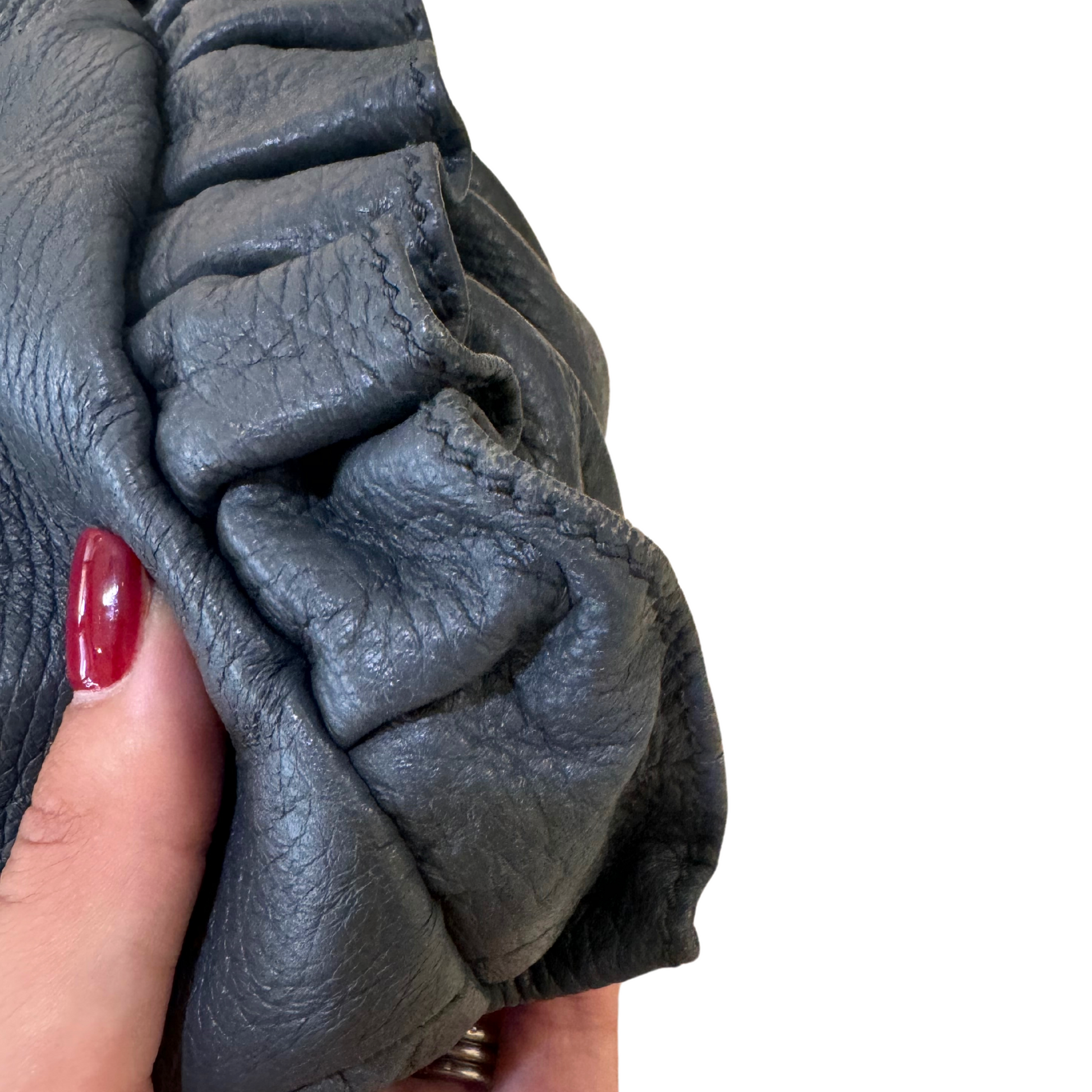 Borsa grigia Dolce&Gabbana in pelle martellata impreziosita da rouges laterali. Apertura frontale con patta magnetica. Manico superiore piatto e targhetta in metallo dorato. Interno in tessuto maculato , tasca interna con cerniera. Metalleria dorata. Pellame morbidissimo