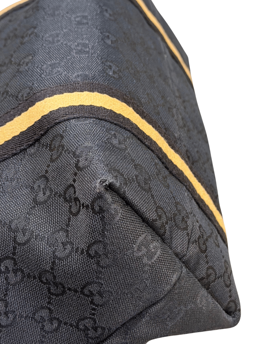 Borsa Gucci realizzata in canvas GG nero. Il design è impreziosito da fascia web nera e color senape. Il modello presenta una struttura morbida ma capiente, ideale per l’uso quotidiano, con doppi manici in pelle nera per una portabilità comoda a spalla o a mano. I profili e i rinforzi in pelle completano la silhouette, garantendo solidità e durata nel tempo. L’interno è foderato in tessuto nero ed è dotato di tasca con zip. A impreziosire il tutto, un charm gioiello applicato a uno dei manici, raffigurante una borsa e uno stivale.( codice: 137396 467861)
