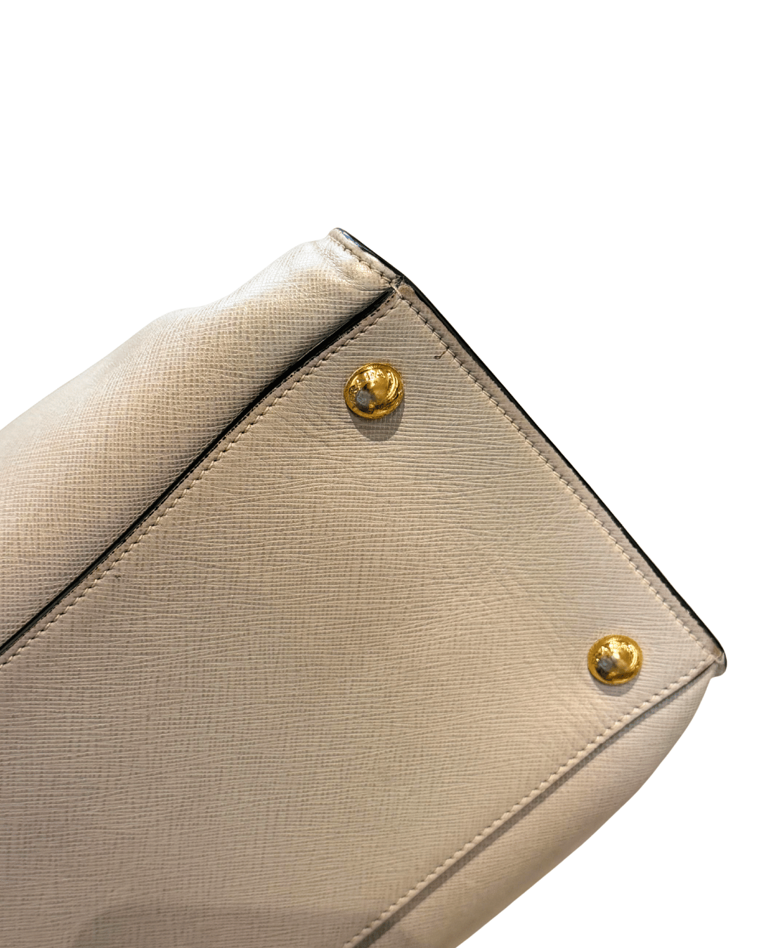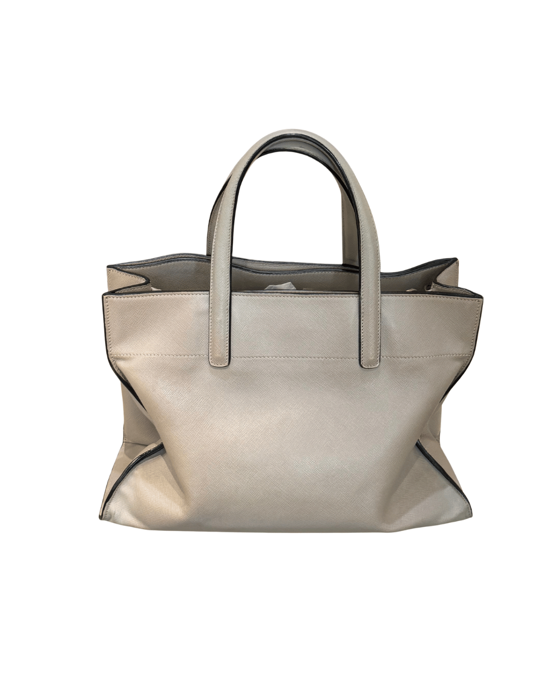 Borsa Prada realizzata in pelle Saffiano, uno dei materiali più iconici e resistenti della Maison, apprezzato per la sua struttura compatta e la capacità di mantenere la forma nel tempo. Il design è pulito ed essenziale, valorizzato dal logo triangolare Prada in metallo dorato applicato sul fronte. Il modello è caratterizzato da doppi manici per una portabilità a mano raffinata e da tracolla regolabile e removibile, che consente di indossarla anche a spalla o crossbody. Base dotata di piedini metallici protettivi. L’interno è in pelle , sono presenti in totale 5 scomparti.