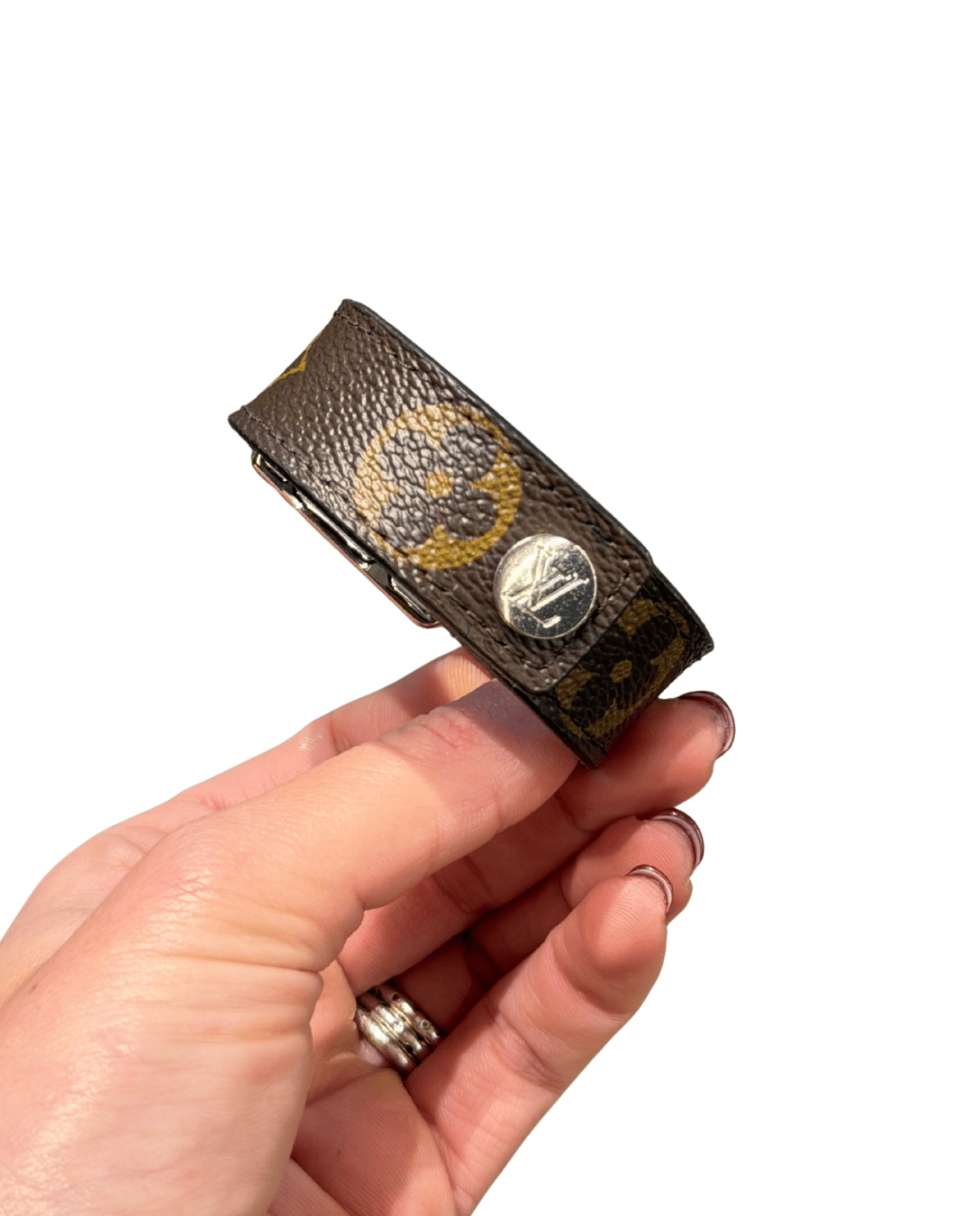 Un dettaglio iconico che completa qualsiasi look: il bracciale LV Initials combina la classicità del canvas Monogram con l’audacia della placca metallica argentata che riproduce l’emblematica iniziale LV. La fascia è realizzata in tela Monogram con interno in pelle nera, morbida e confortevole sul polso. La chiusura a bottone a pressione rende il bracciale pratico e sicuro da indossare. Il design è essenziale ma distintivo, perfetto sia per lui che per lei.