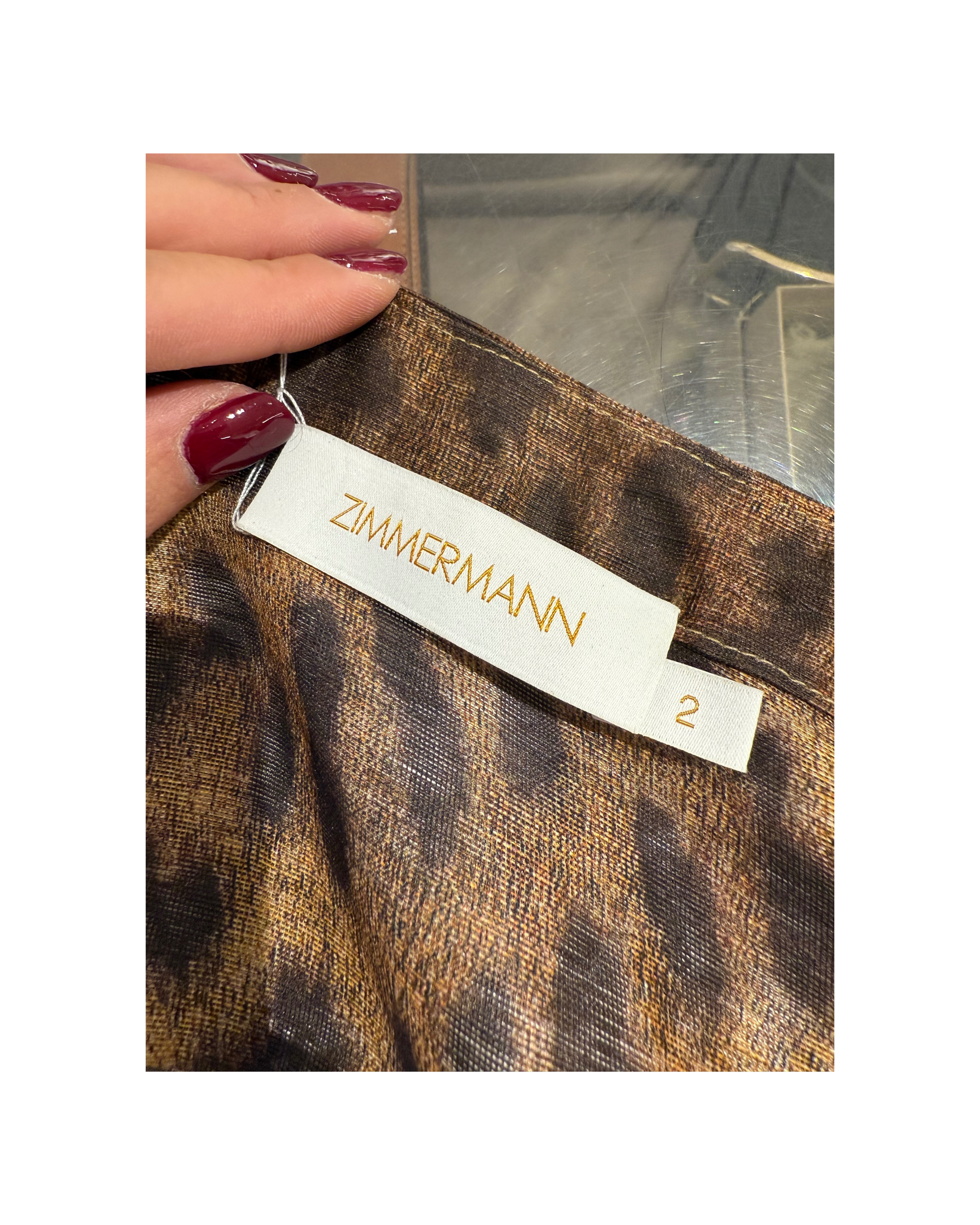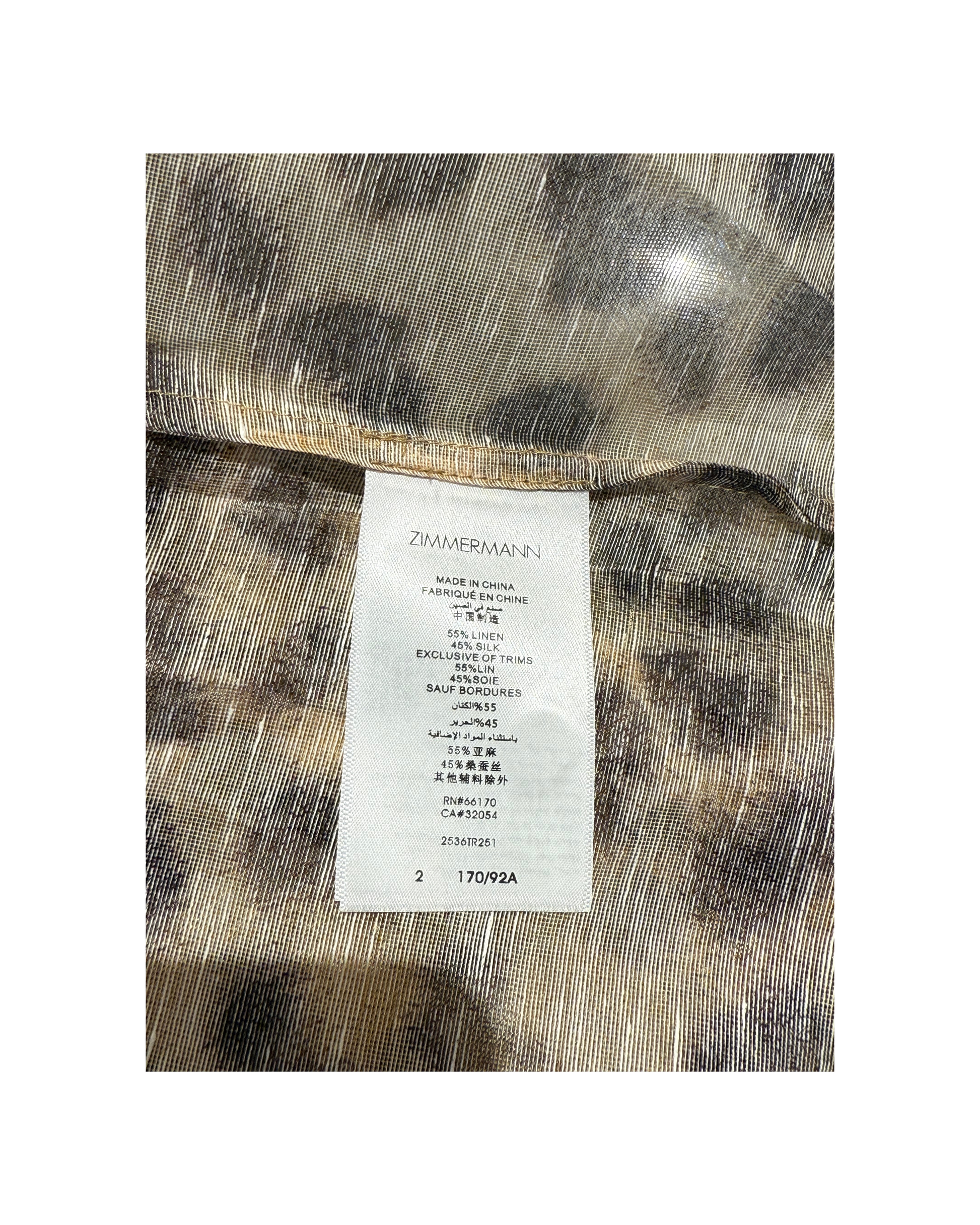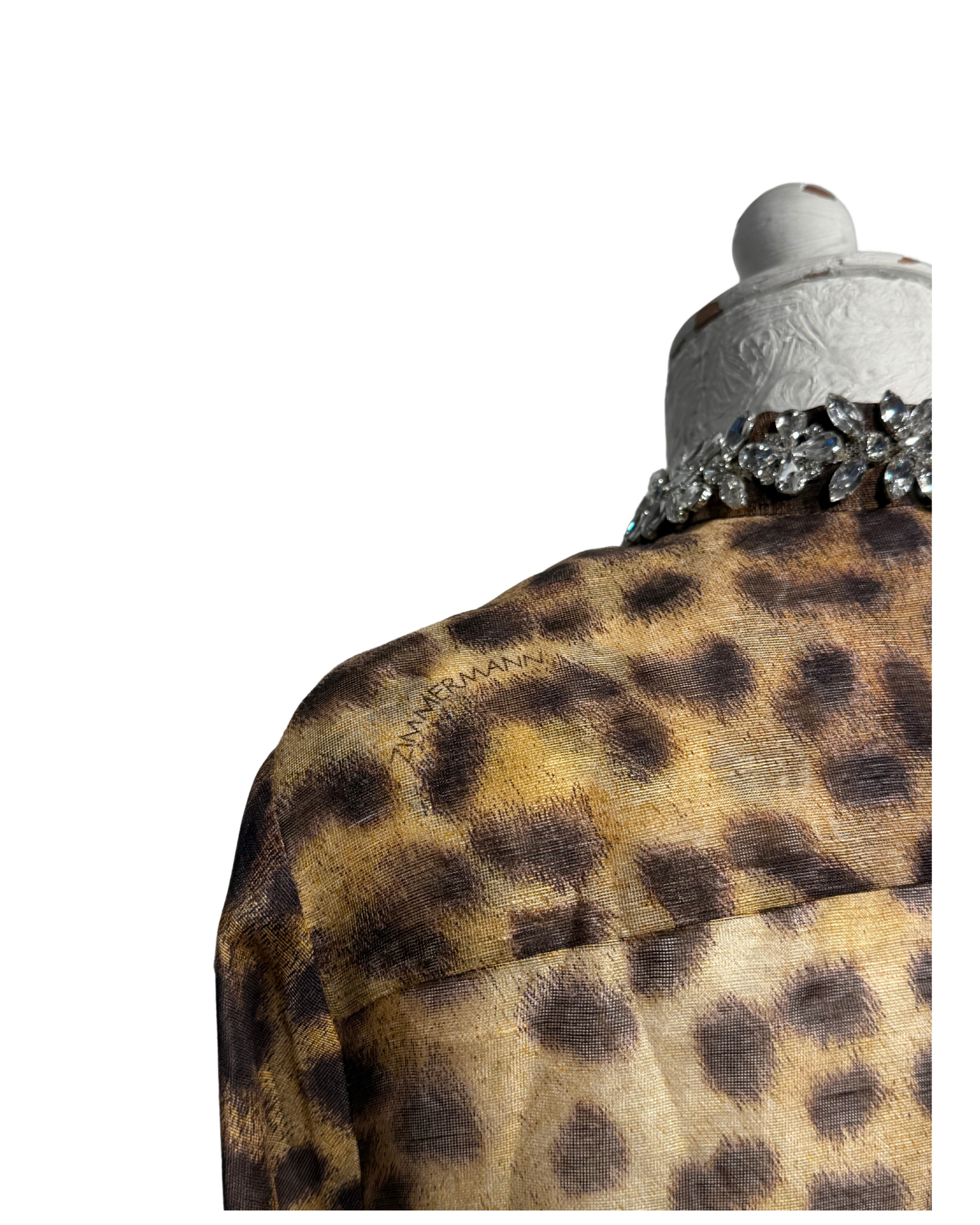 Camicia Zimmermann perfetta per chi ama uno stile raffinato ma con carattere. Realizzato in un esclusivo mix 55% lino e 45% seta, leggero e leggermente trasparente. Impreziosita da stampa animali in tonalità naturali, colletto e polsini gioiello ricamati con pietre brillanti, che aggiungono un tocco glamour perfetto per look da sera o occasioni speciali.