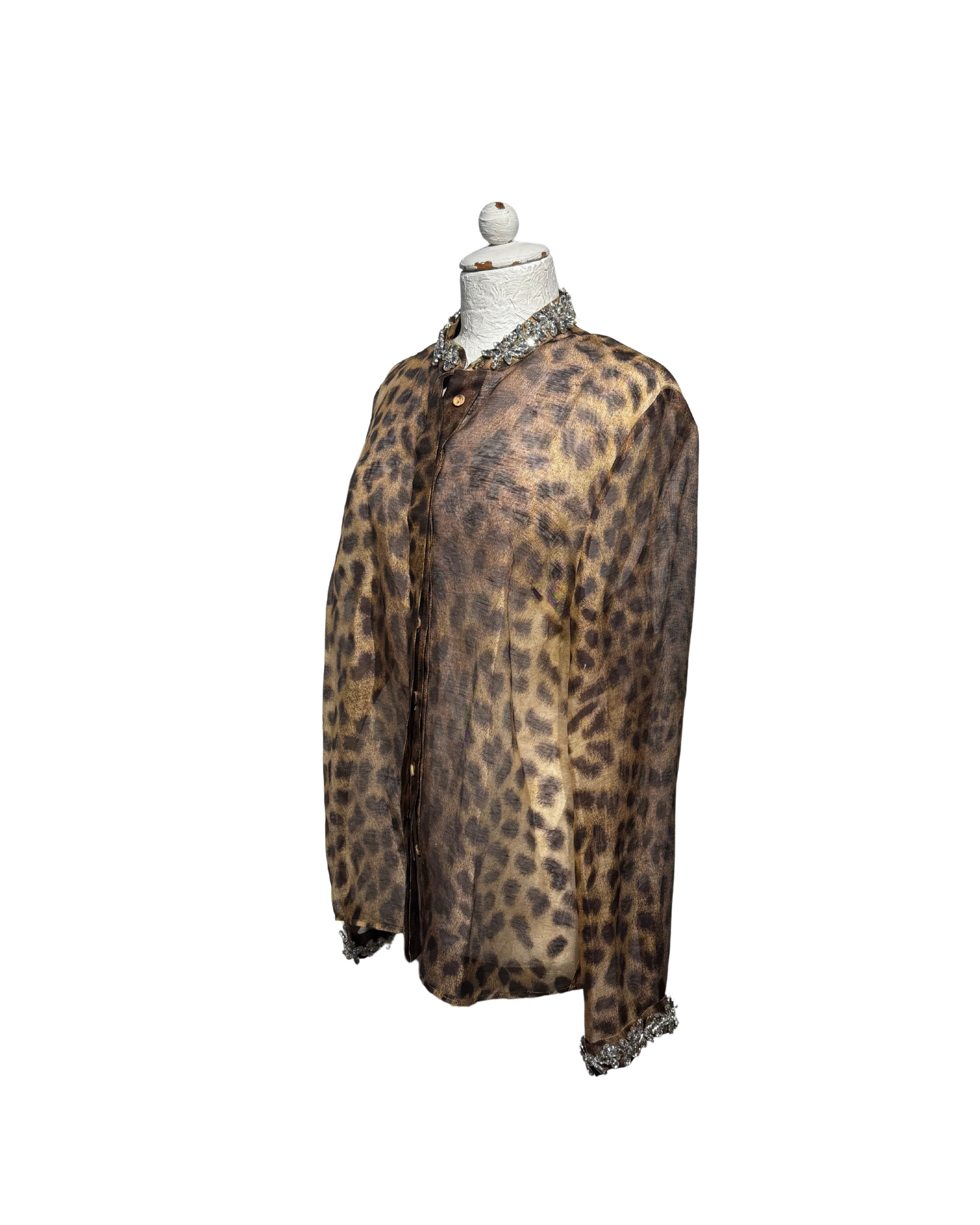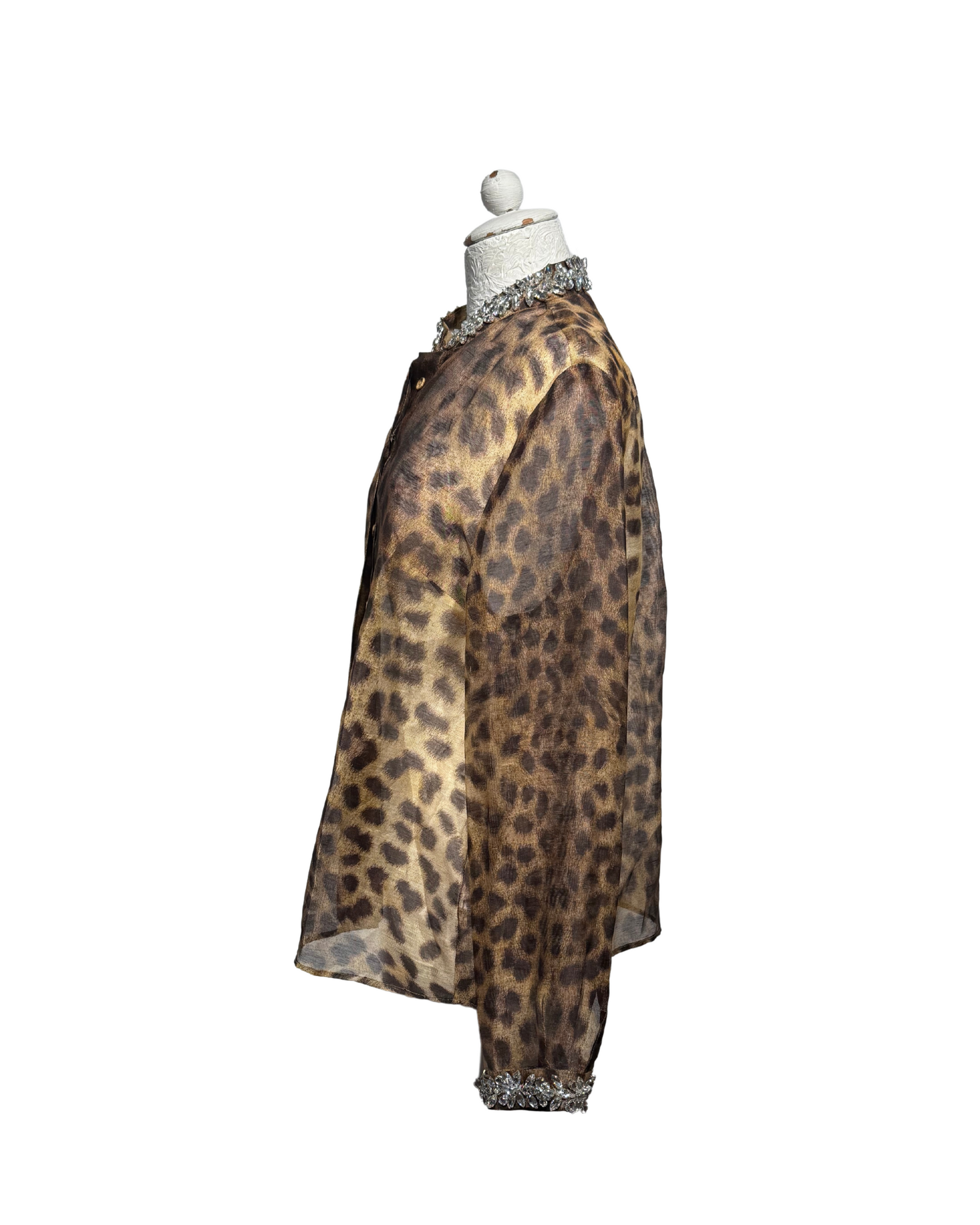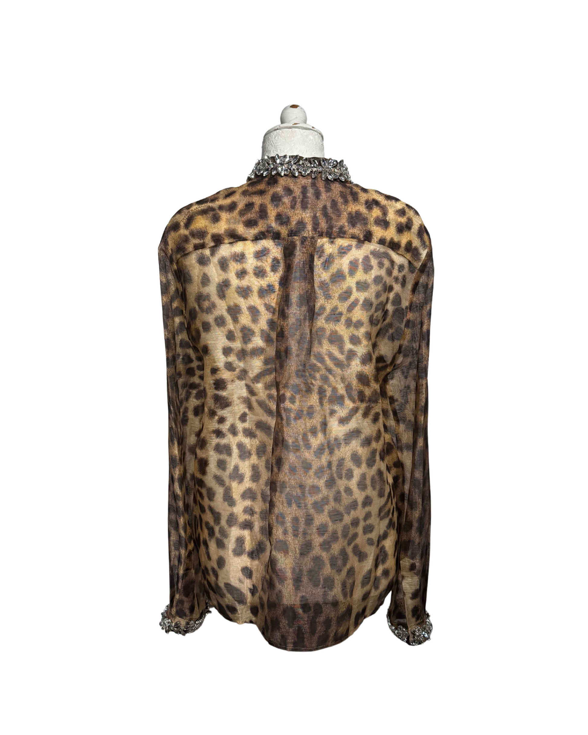 Camicia Zimmermann perfetta per chi ama uno stile raffinato ma con carattere. Realizzato in un esclusivo mix 55% lino e 45% seta, leggero e leggermente trasparente. Impreziosita da stampa animali in tonalità naturali, colletto e polsini gioiello ricamati con pietre brillanti, che aggiungono un tocco glamour perfetto per look da sera o occasioni speciali.