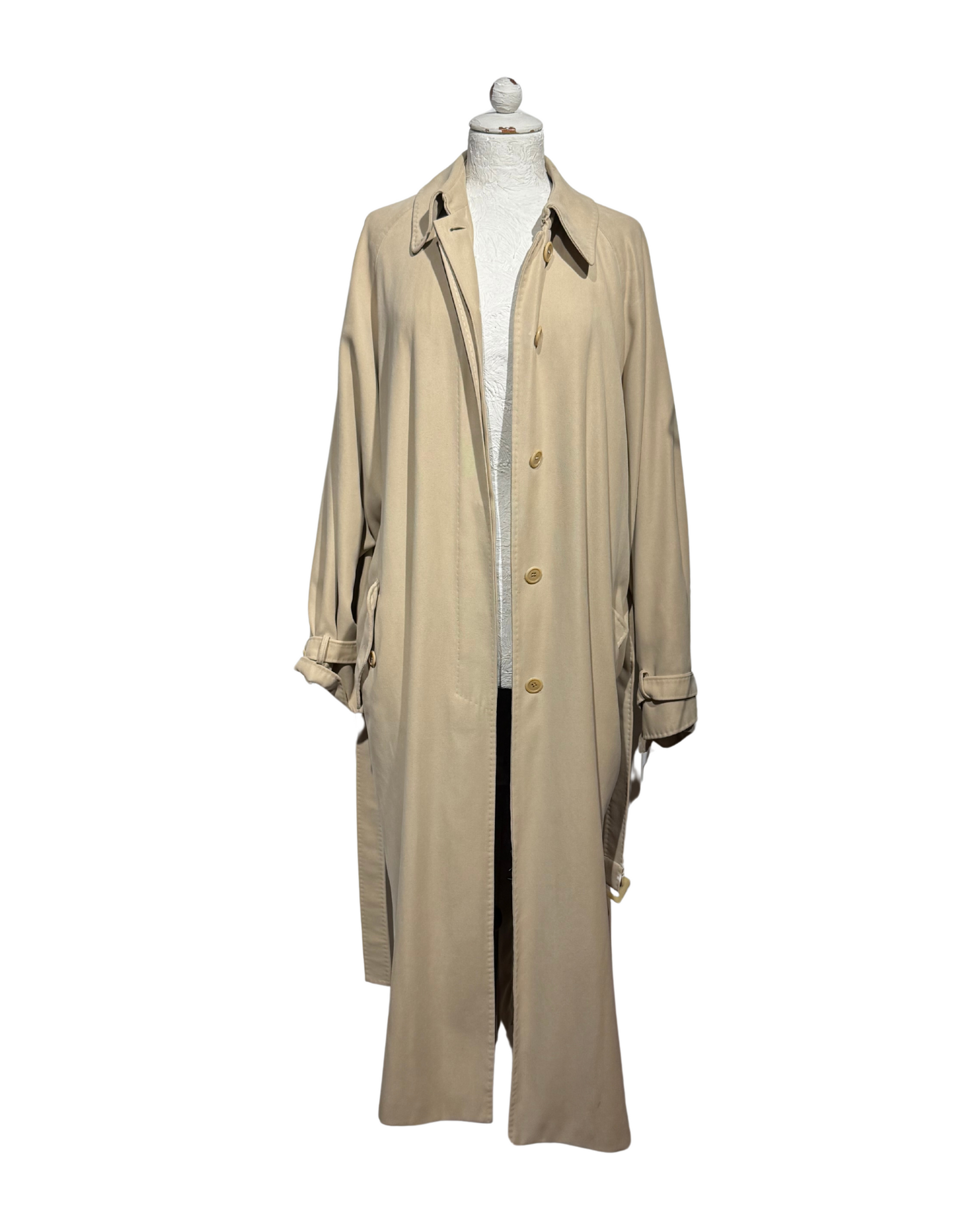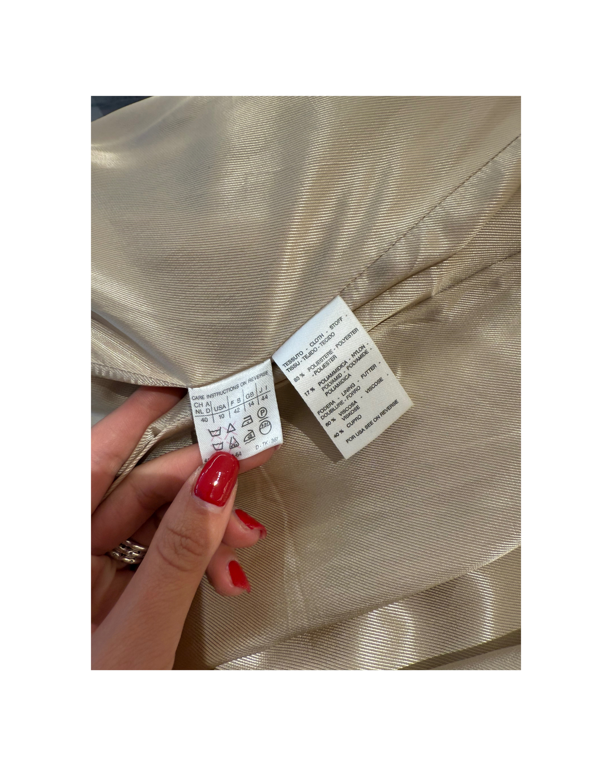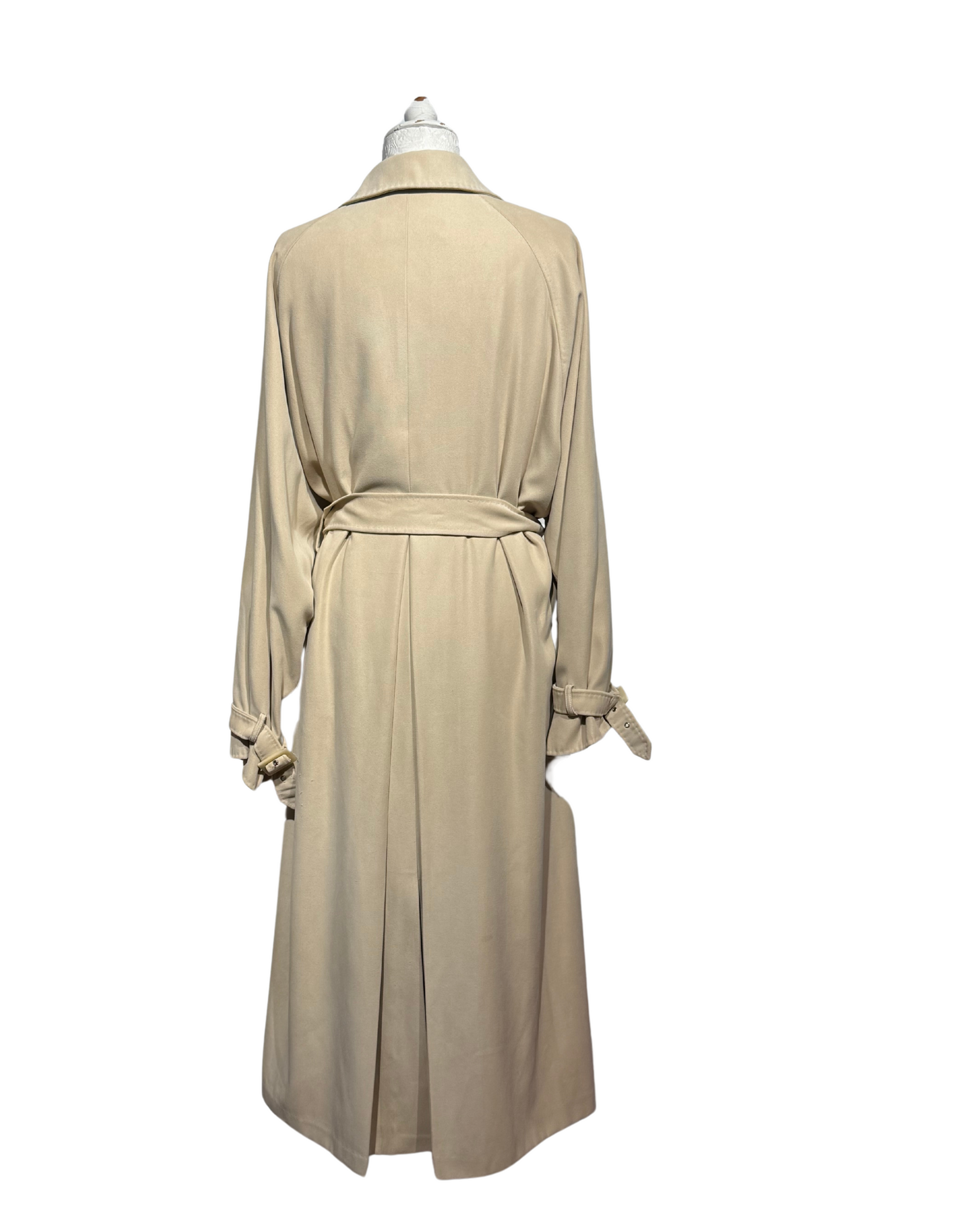 Un capospalla senza tempo firmato Max Mara, perfetto per la mezza stagione. Realizzato in tessuto fluido color sabbia , presenta una linea morbida e avvolgentesi con cintura coordinata in vita che ne sottolinea la femminilità. Il modello è arricchito da dettagli curati come le maniche con cinturini regolabili, tasche e bottoni logati. Foderato internamente in viscosa e copro, assicura comfort e leggerezza. La linea rimane over.