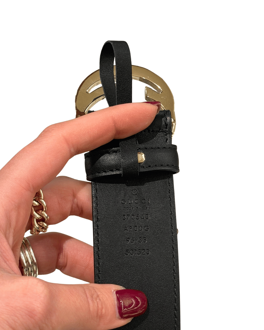 CINTURA GUCCI NERA CON HARDWARE ARGENTATO