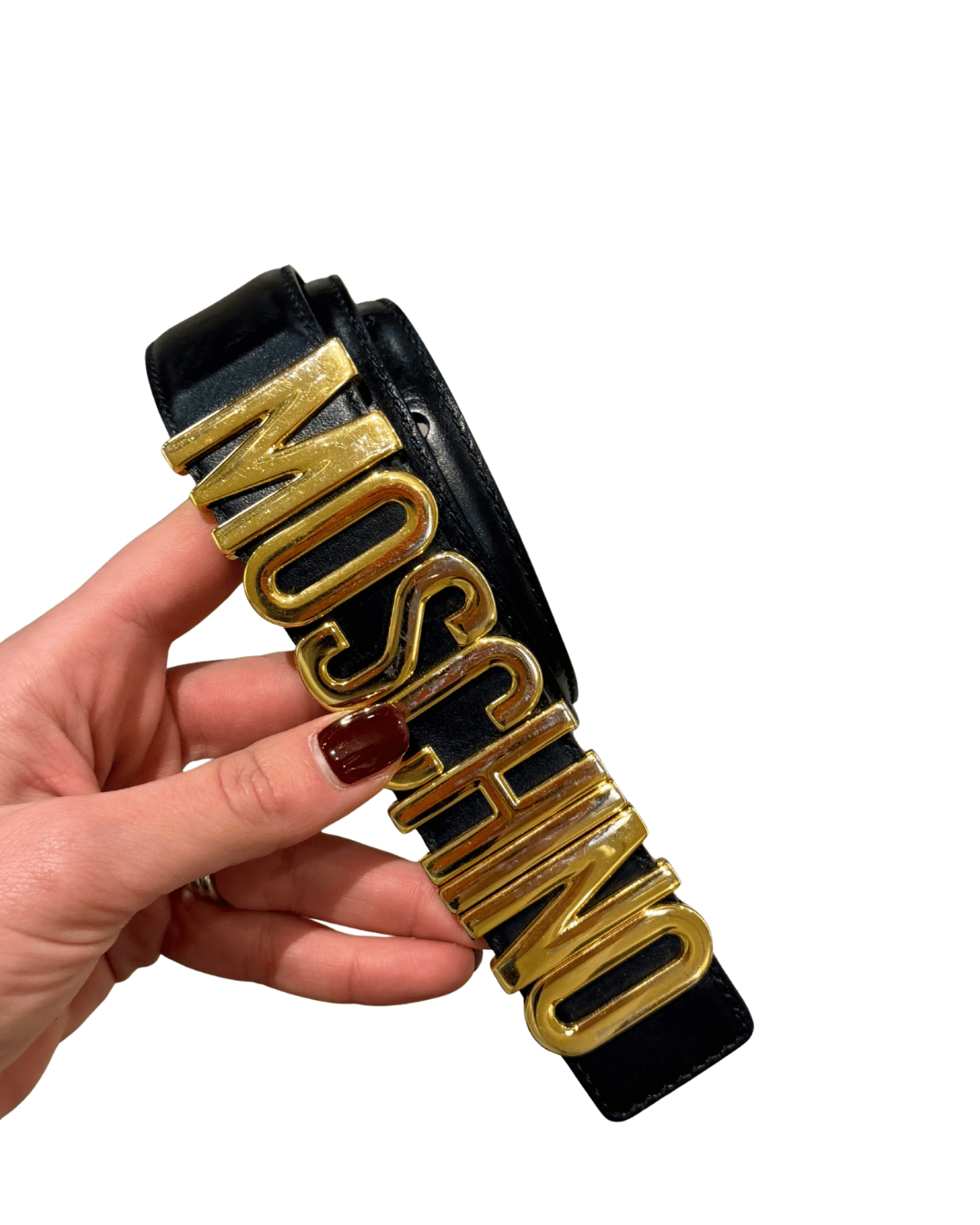 CINTURA MOSCHINO NERA HARDWARE DORATO