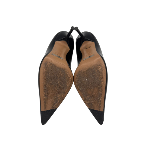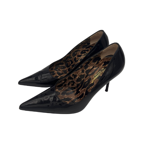 Décolleté in vernice nera a punta. Vero cuoio, Made in Italy. Interno leopardato, tacco 9cm.