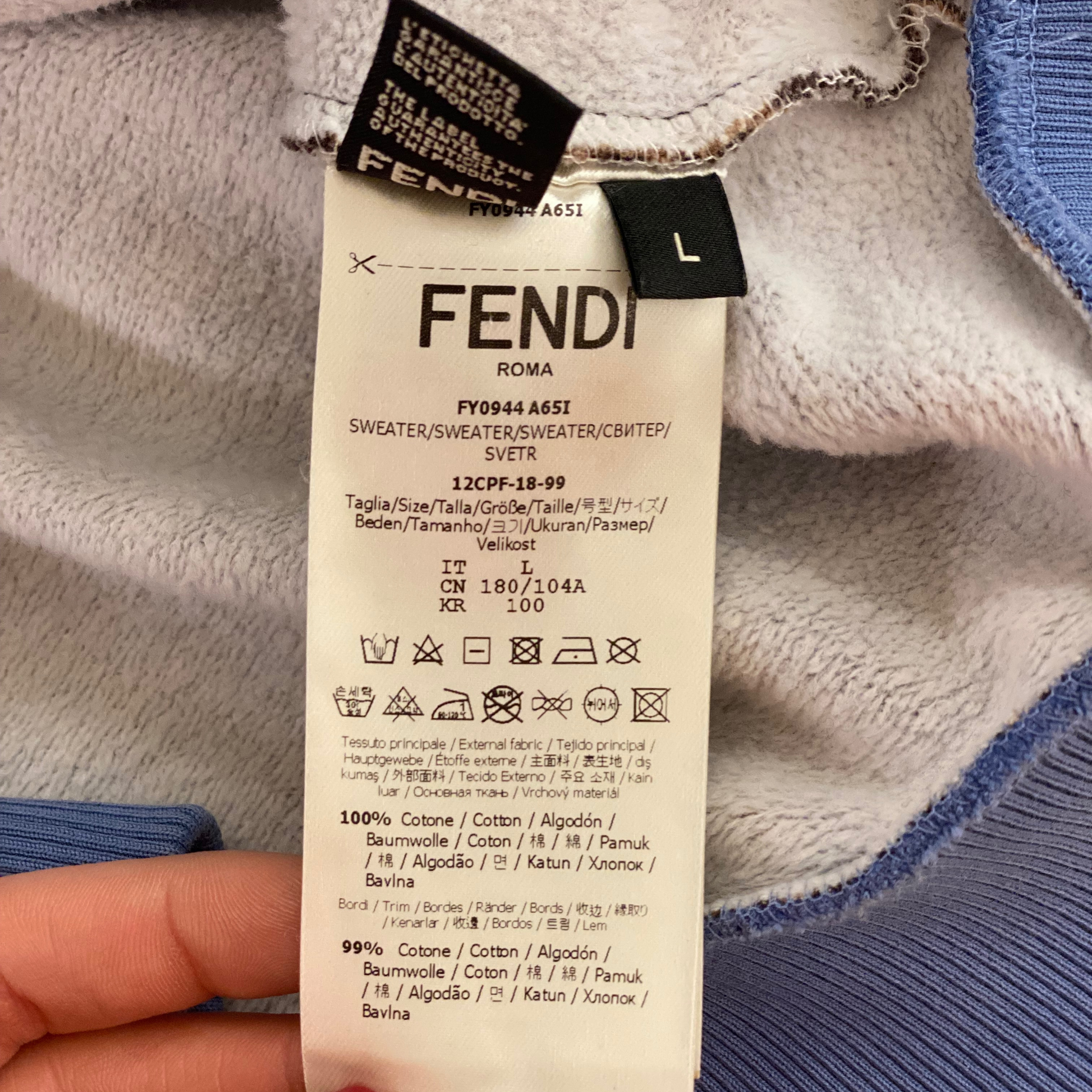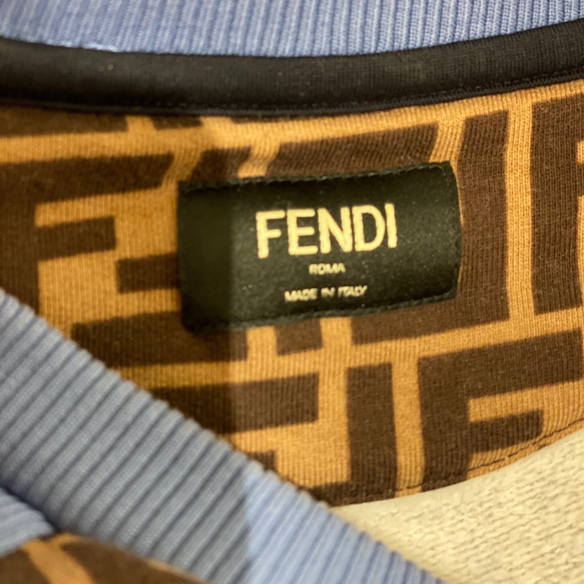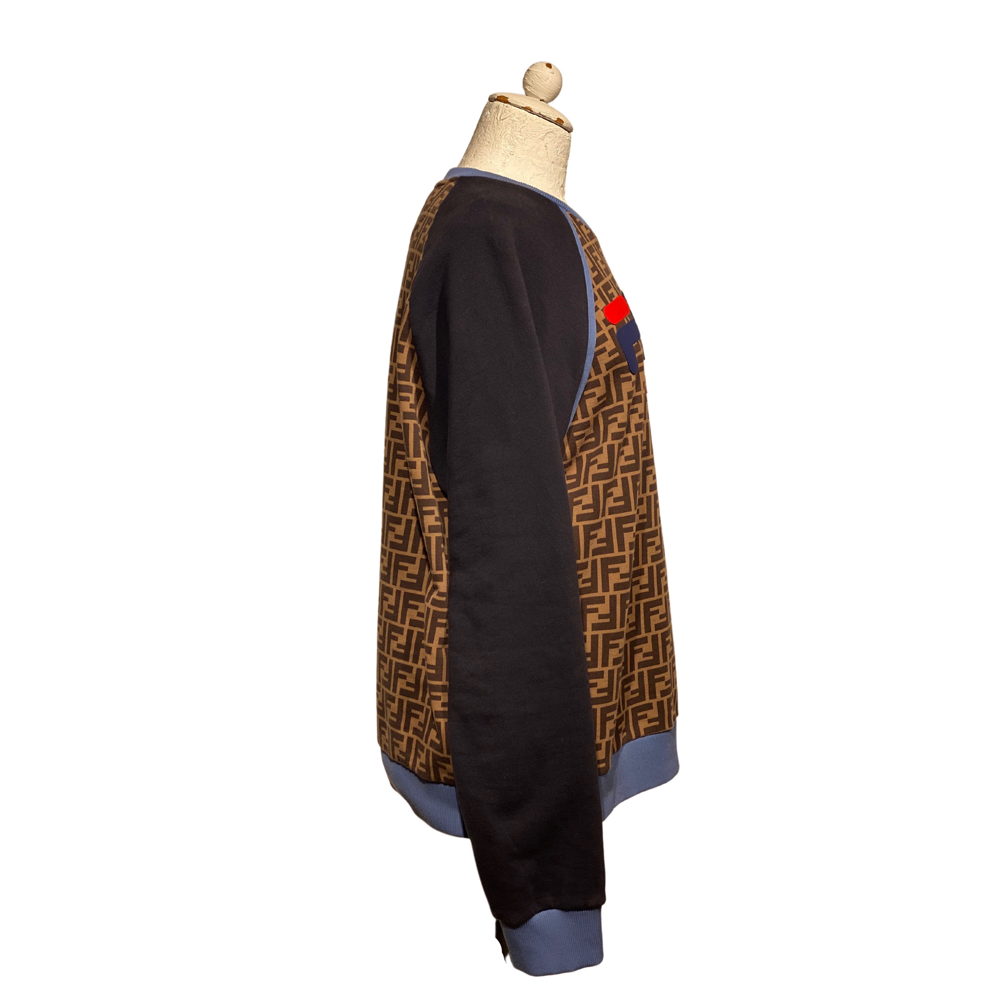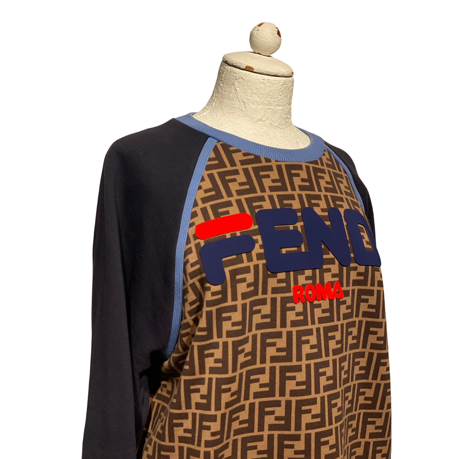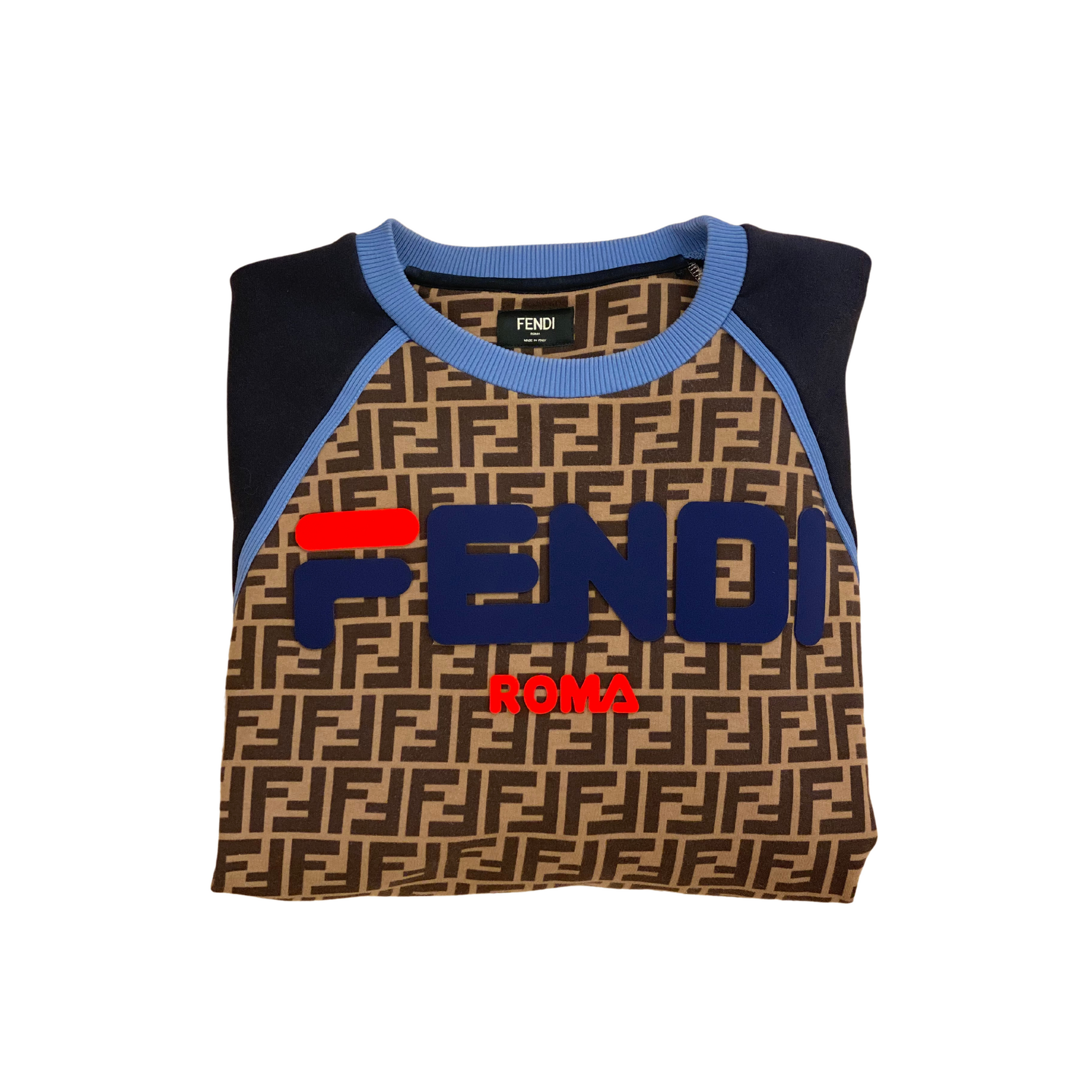 Felpa realizzata in collaborazione con Fila , corpo in tessuto trama Fendi zucca. Maniche in cotone blu,colletto e polsini azzurri.