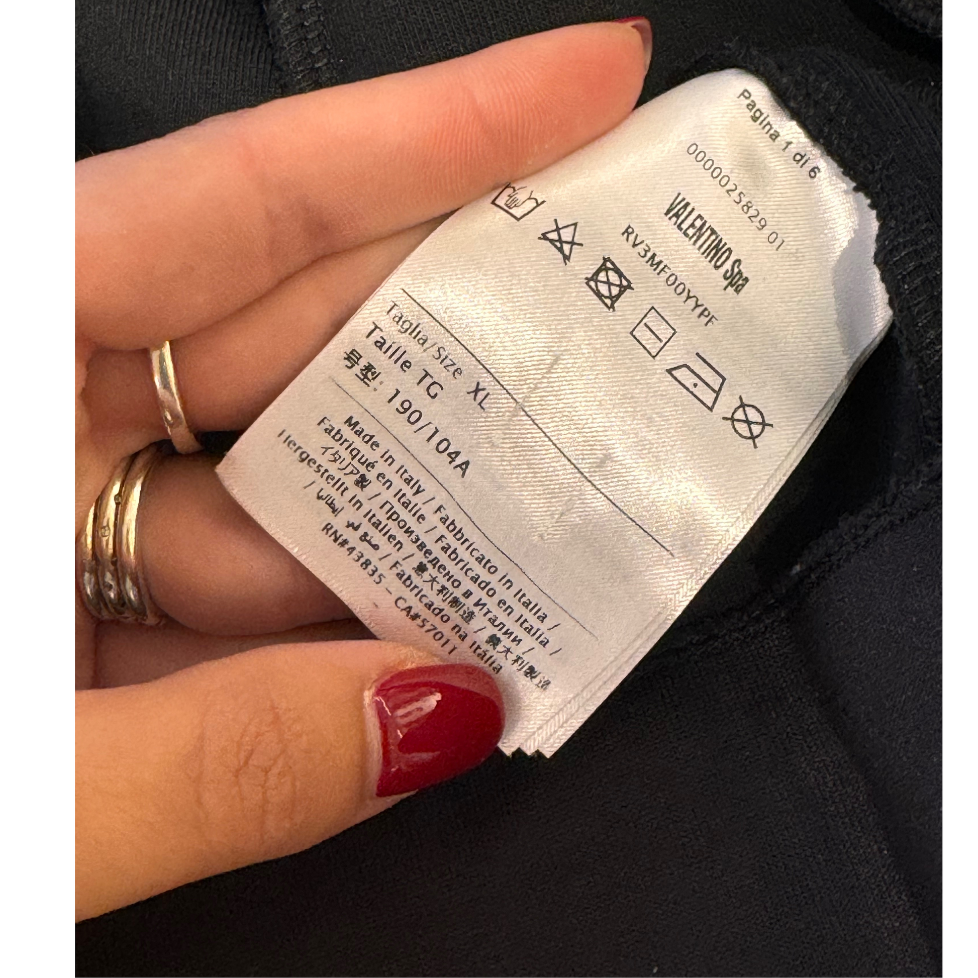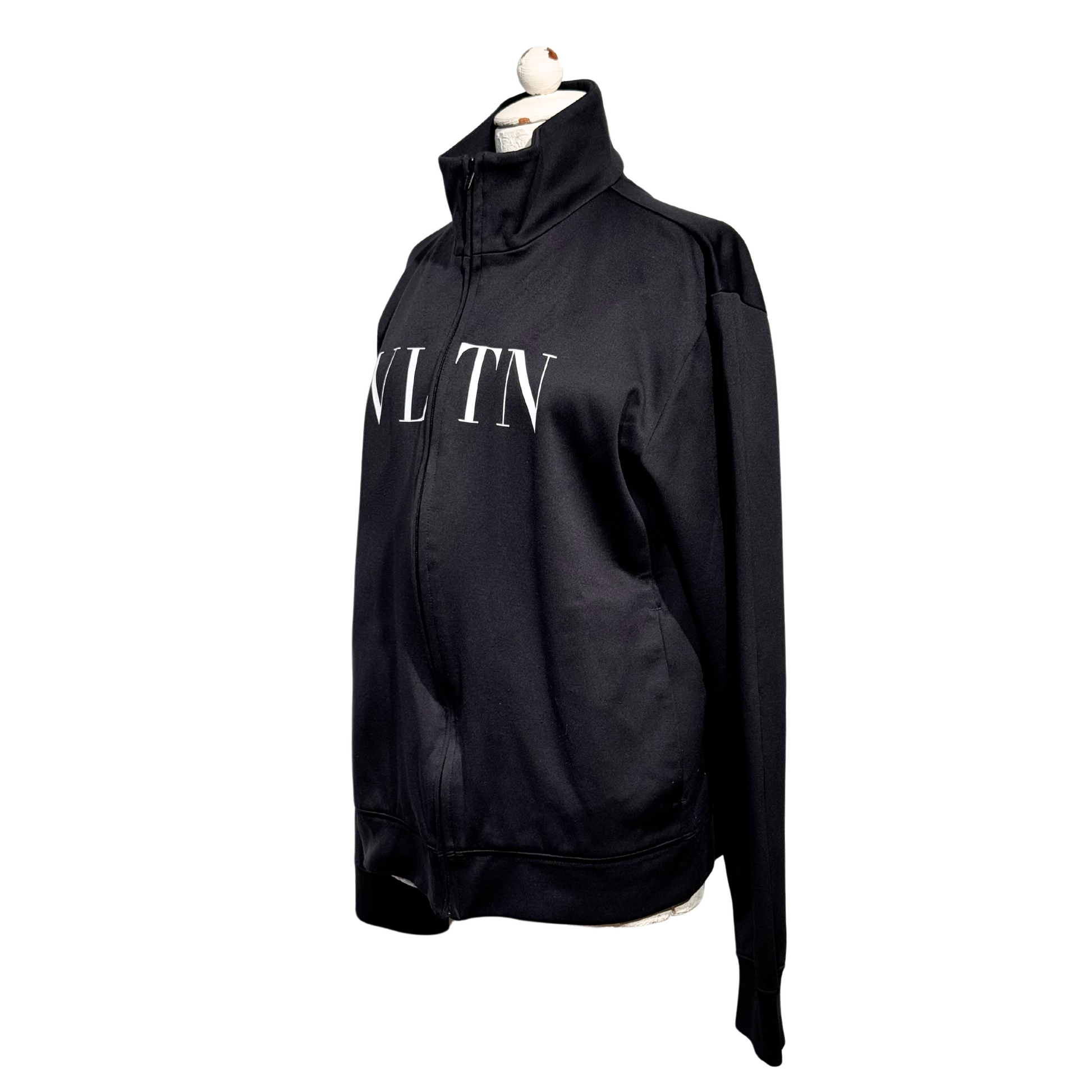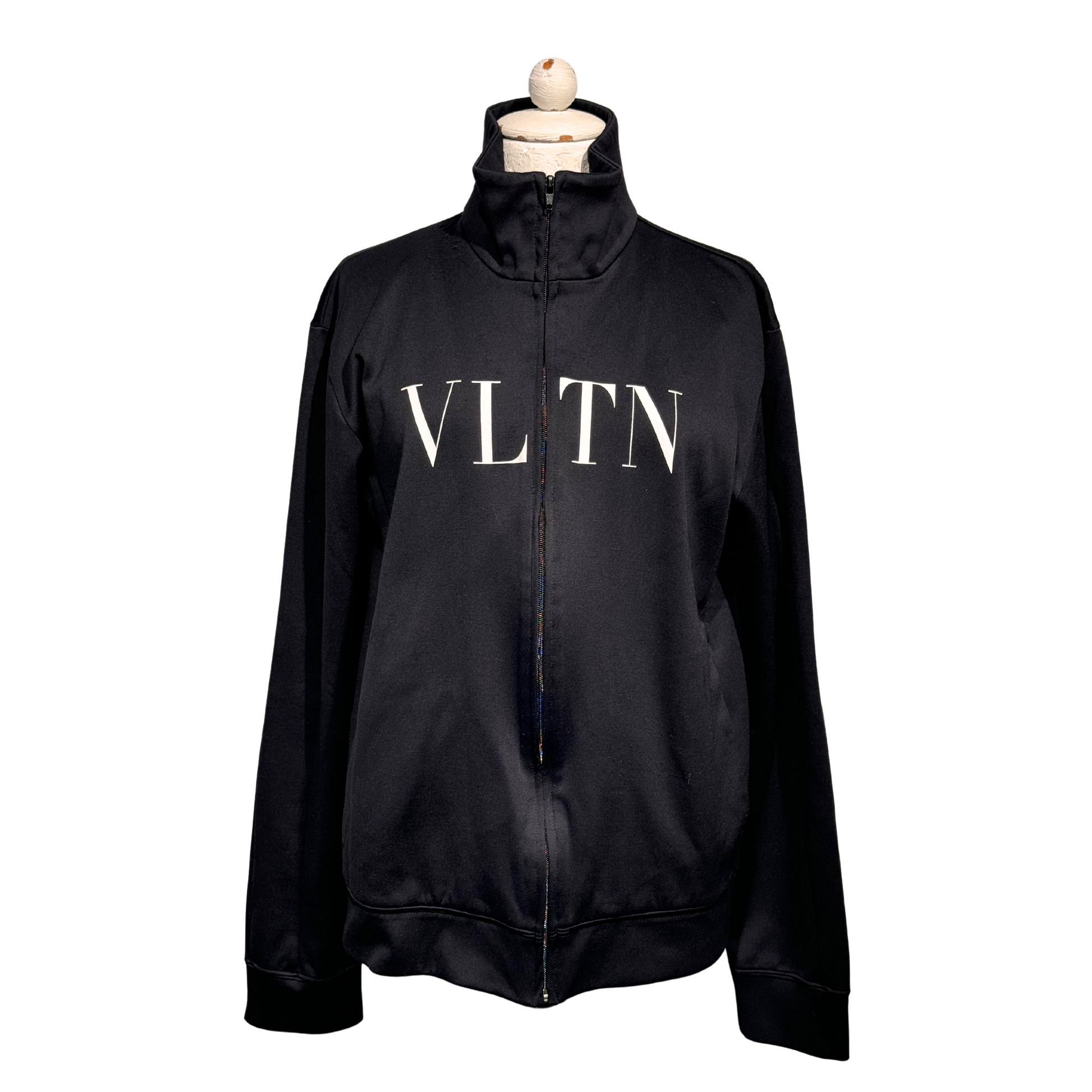 Felpa di Valentino da uomo ma perfetta anche da donna se si desidera una vestibilità over. Realizzata in cotone nero , apertura frontale con cerniera , scritta frontale VLTN in bianco. Tasca laterali.