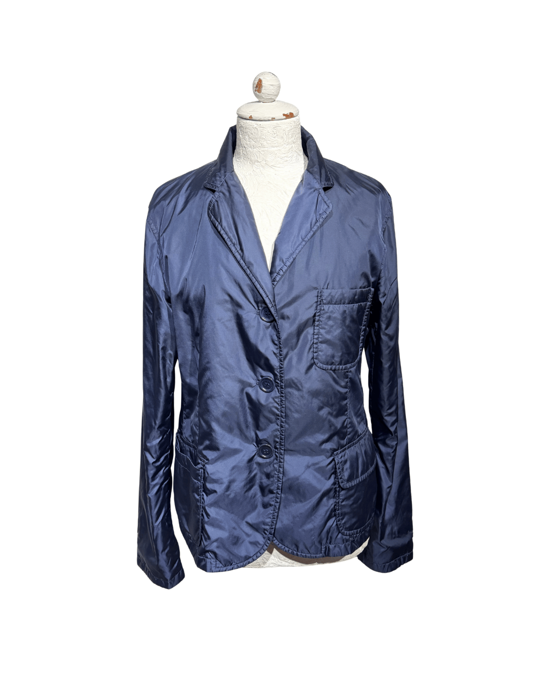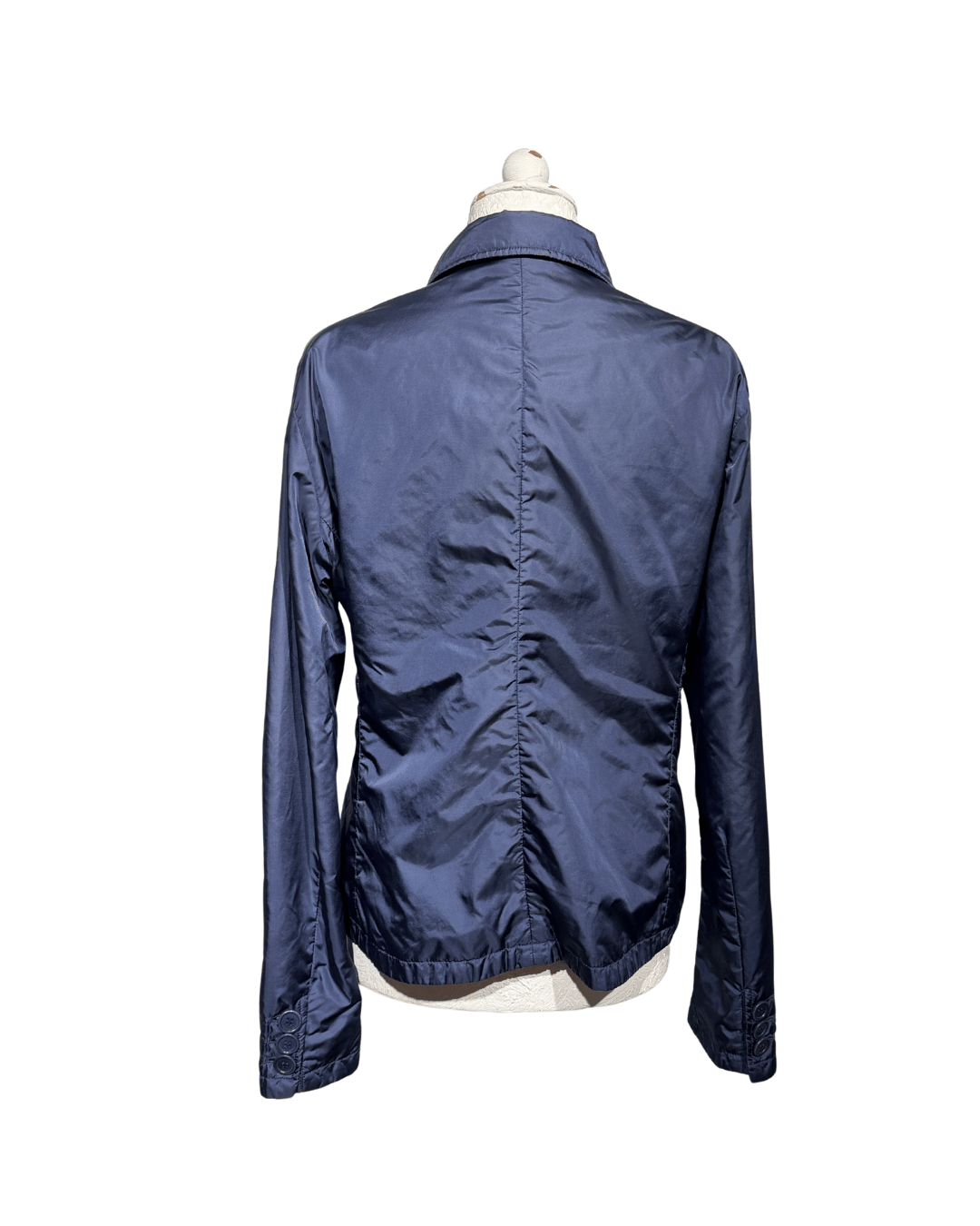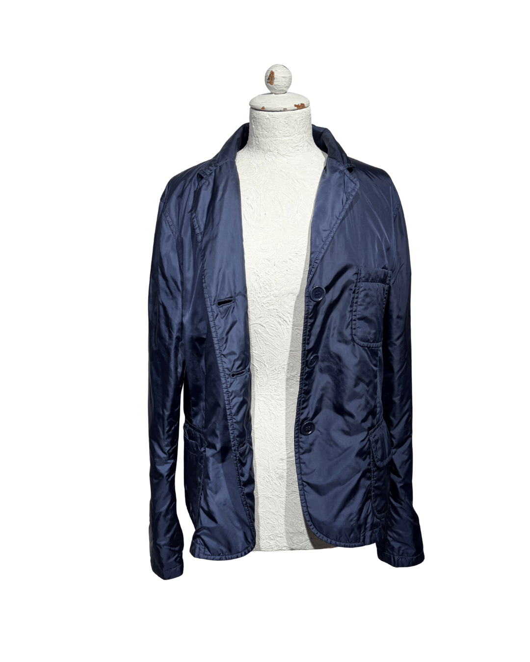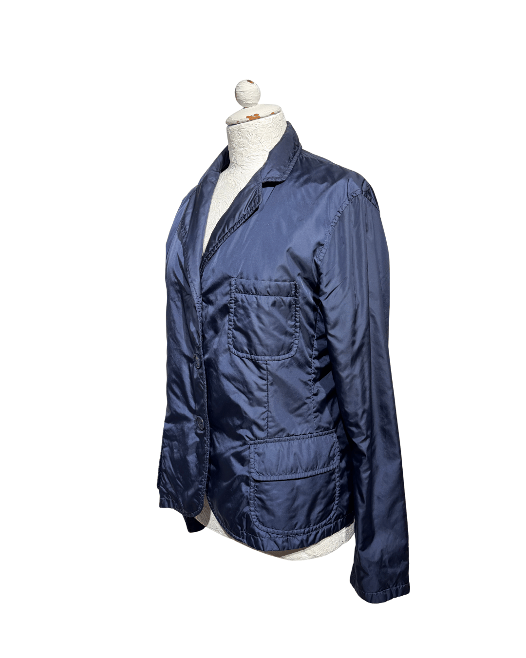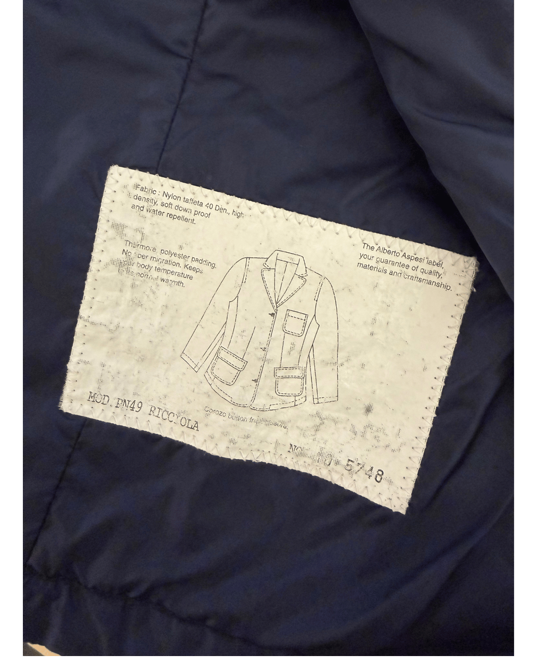 Giacca Aspesi dal design essenziale e raffinato, realizzata in nylon tecnico di alta qualità con imbottitura leggera in poliestere, ideale per la mezza stagione. Il colore blu navy la rende estremamente versatile e facile da abbinare, perfetta sia per look casual che più curati. Il modello presenta una linea ispirata alla giacca sartoriale, con rever classico, chiusura frontale a bottoni e tasche applicate che uniscono funzionalità ed estetica pulita. La struttura è morbida ma ben definita, pensata per garantire comfort, leggerezza e protezione senza appesantire la silhouette. Capo idrorepellente, progettato per offrire una buona tenuta al vento e mantenere il calore corporeo, come da filosofia tecnica del brand.