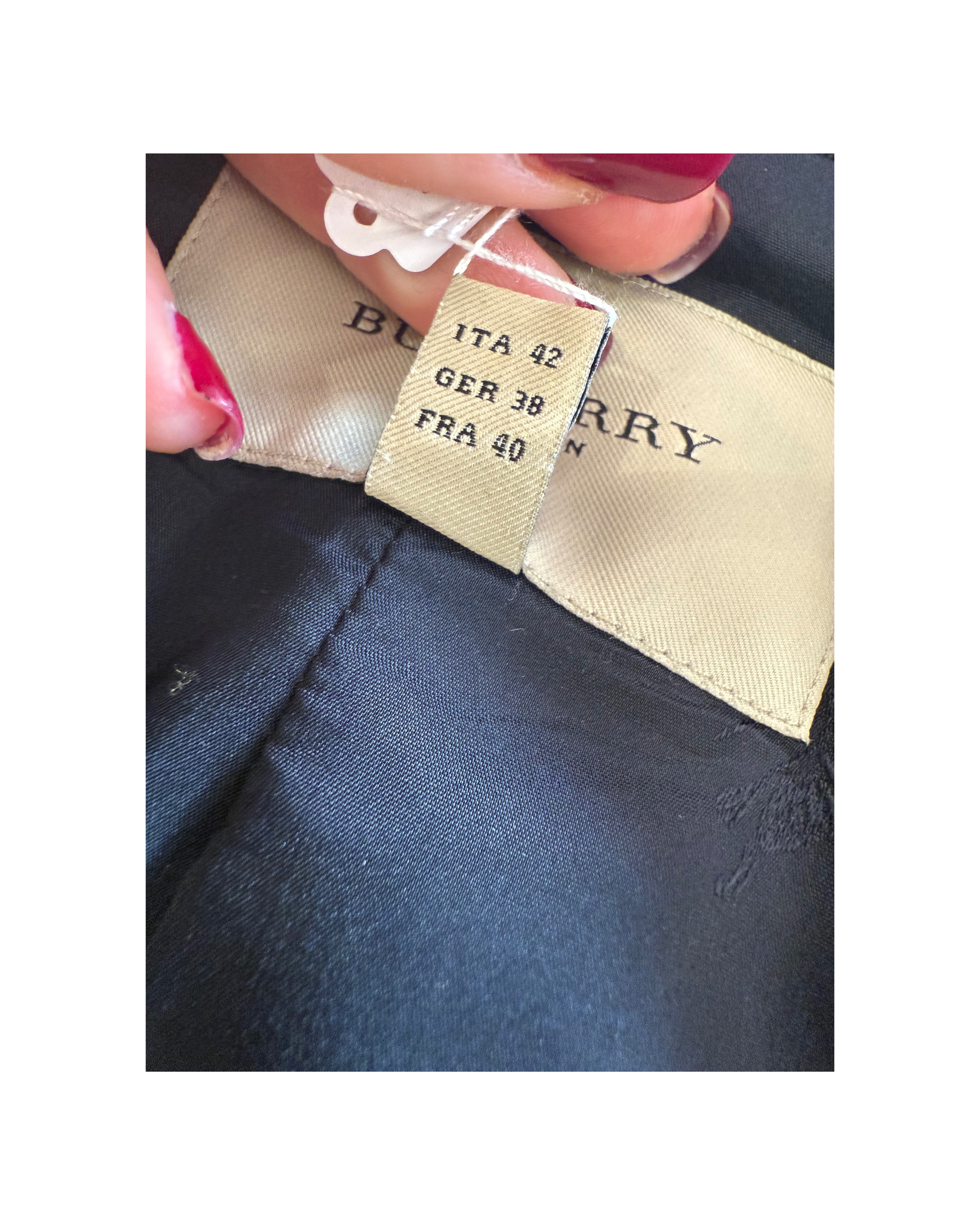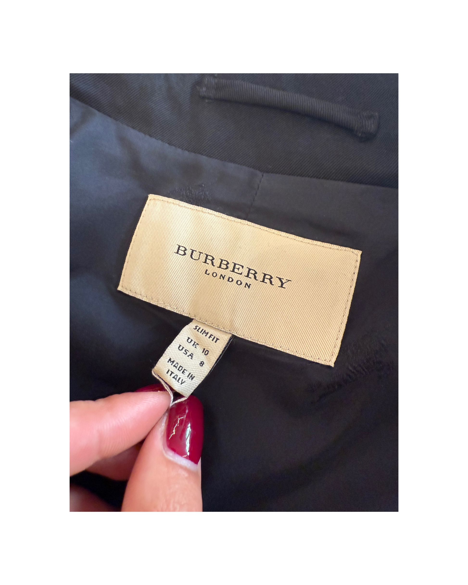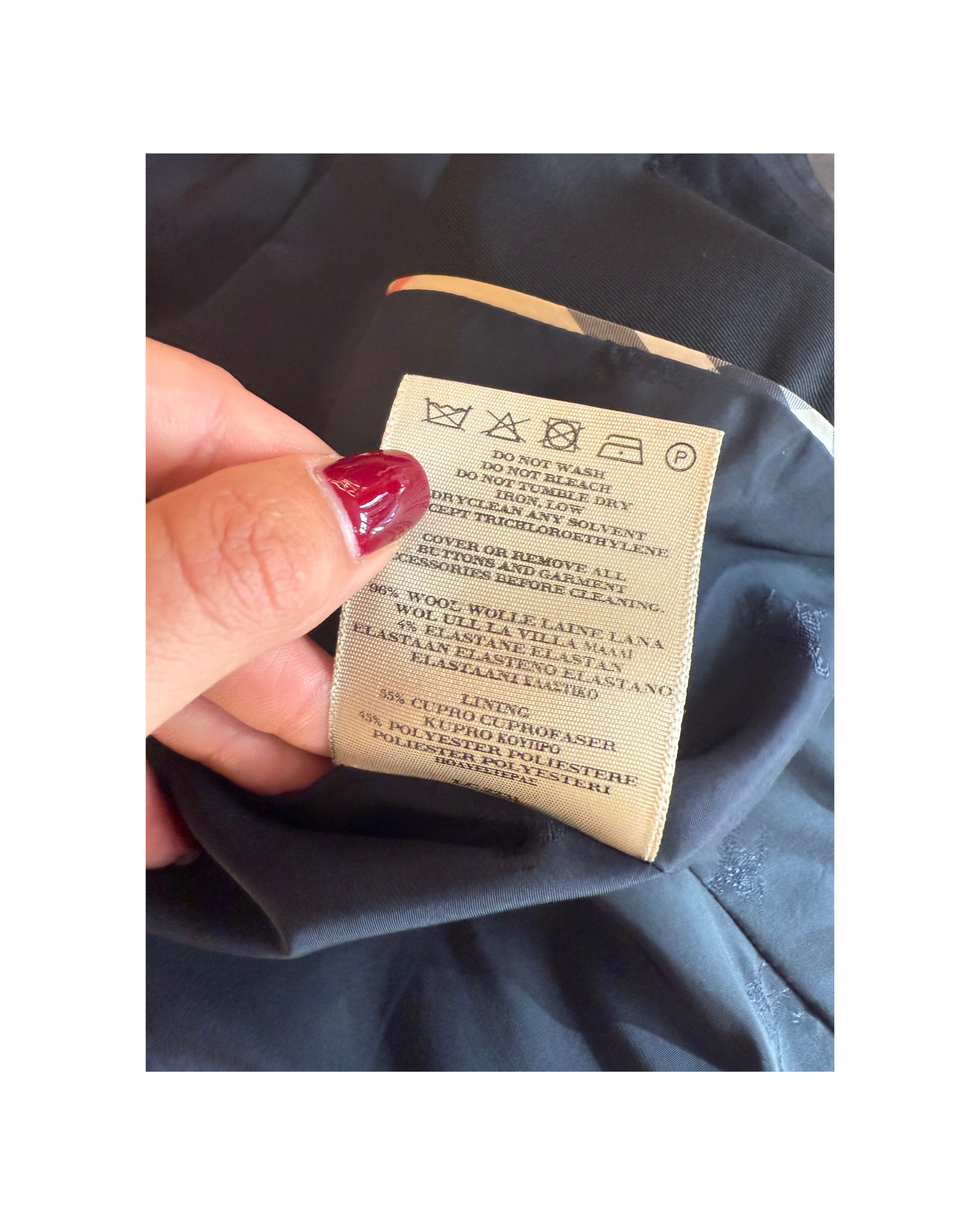 Elegante giacca Burberry in lana blu navy, caratterizzata da un taglio sartoriale con bottoni logati , spalline con passanti e ampie tasche frontali con patta. Un modello intramontabile che unisce stile classico e praticità, perfetto per completare sia look casual che più formali. Realizzata in 55% lana e 45% elastan, con fodera interna in cupro e poliestere, offre una vestibilità confortevole e raffinata.