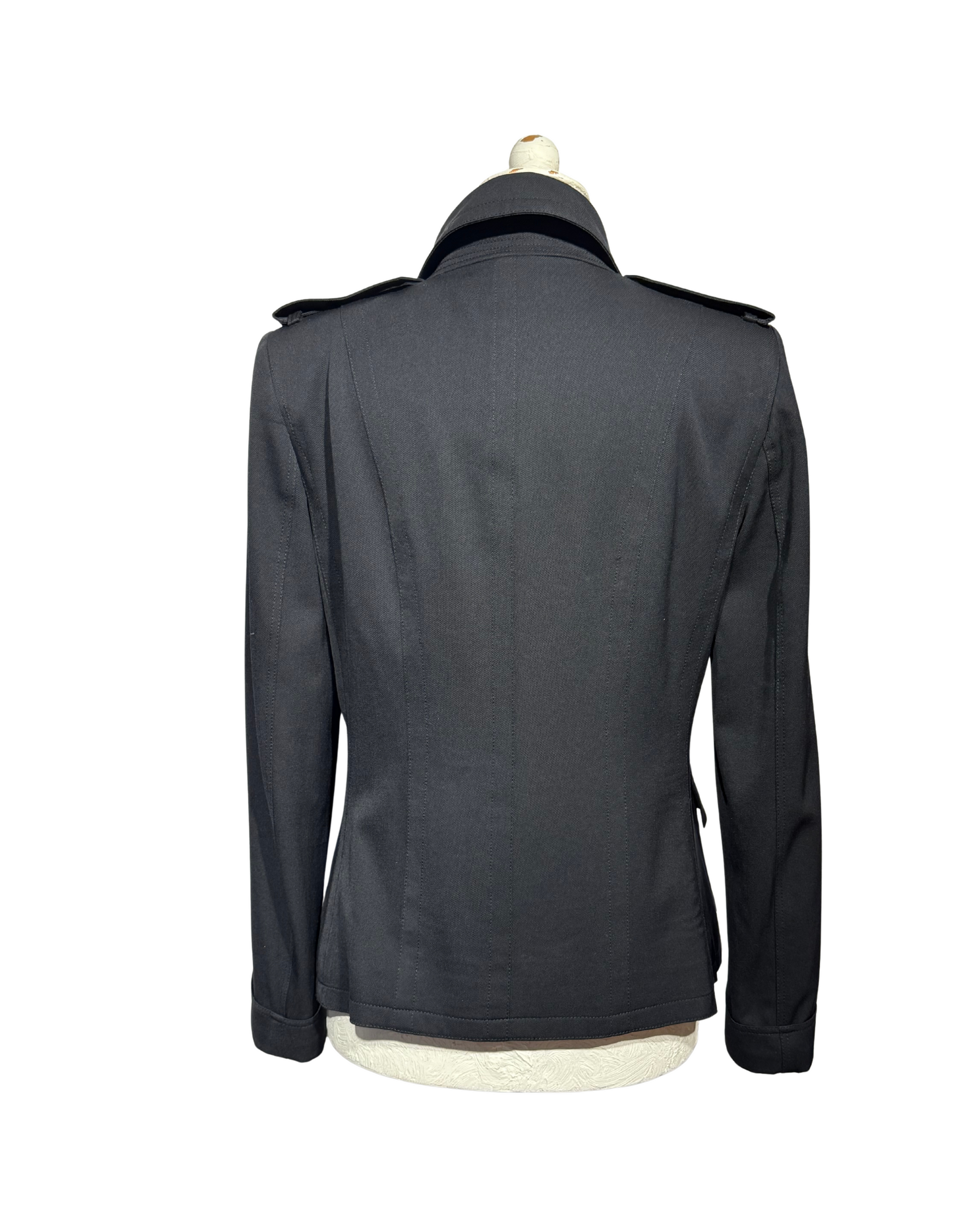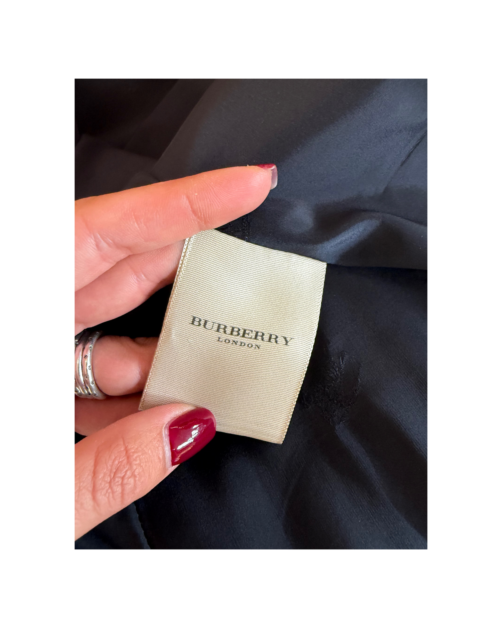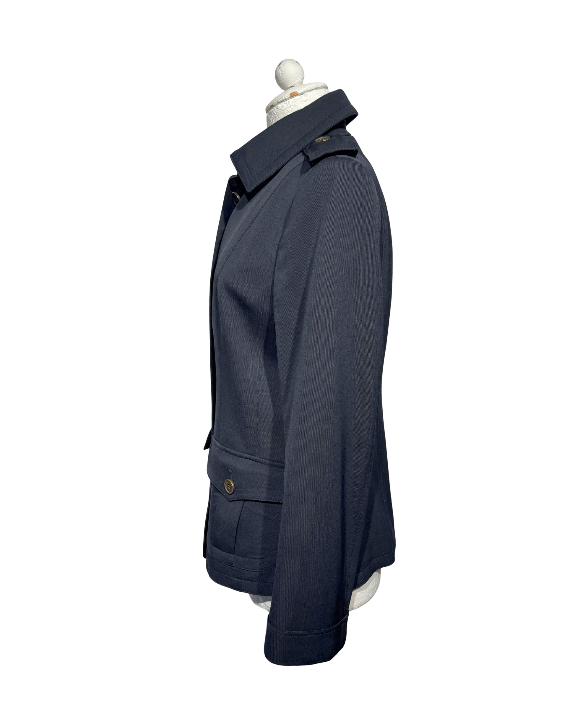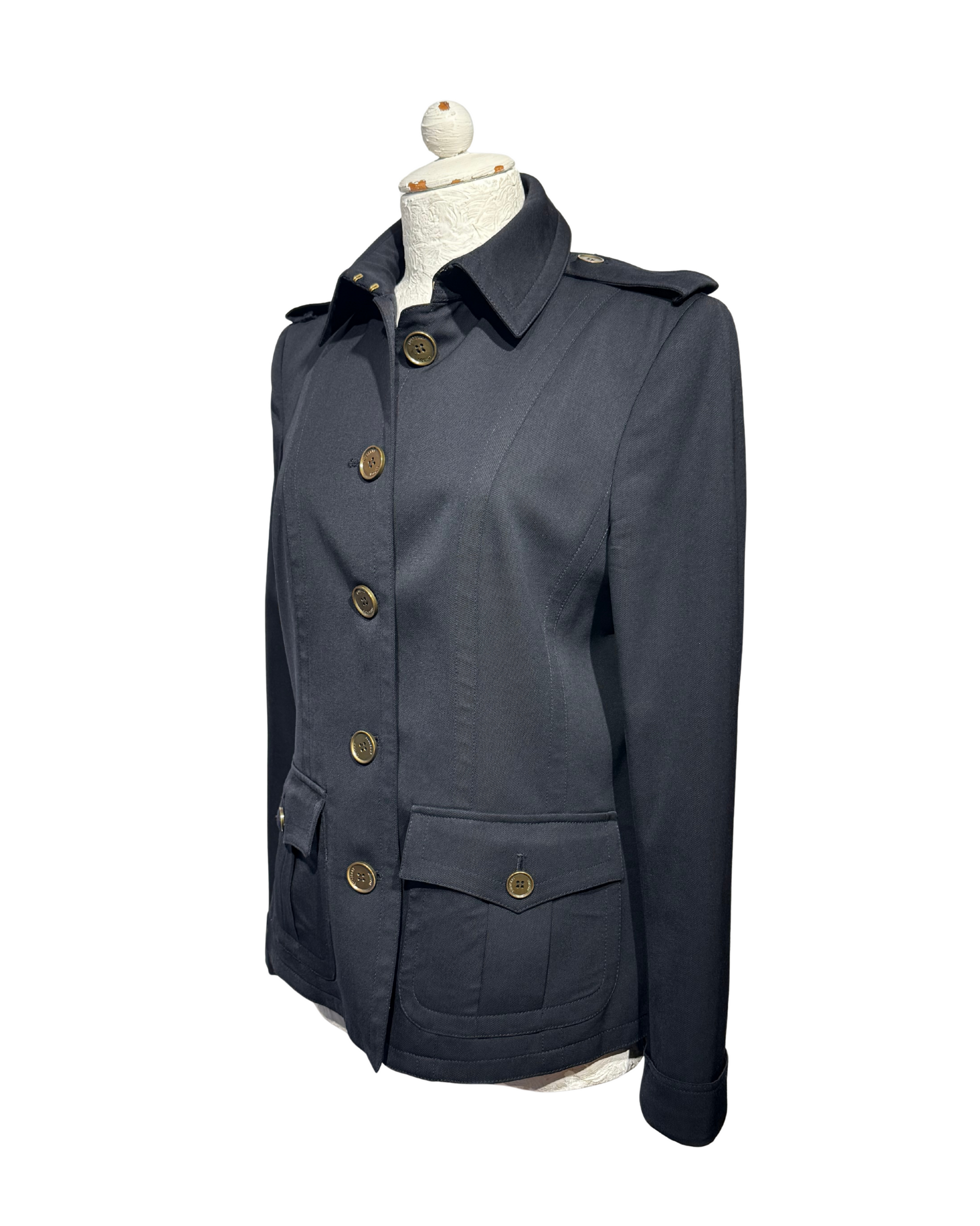 Elegante giacca Burberry in lana blu navy, caratterizzata da un taglio sartoriale con bottoni logati , spalline con passanti e ampie tasche frontali con patta. Un modello intramontabile che unisce stile classico e praticità, perfetto per completare sia look casual che più formali. Realizzata in 55% lana e 45% elastan, con fodera interna in cupro e poliestere, offre una vestibilità confortevole e raffinata.
