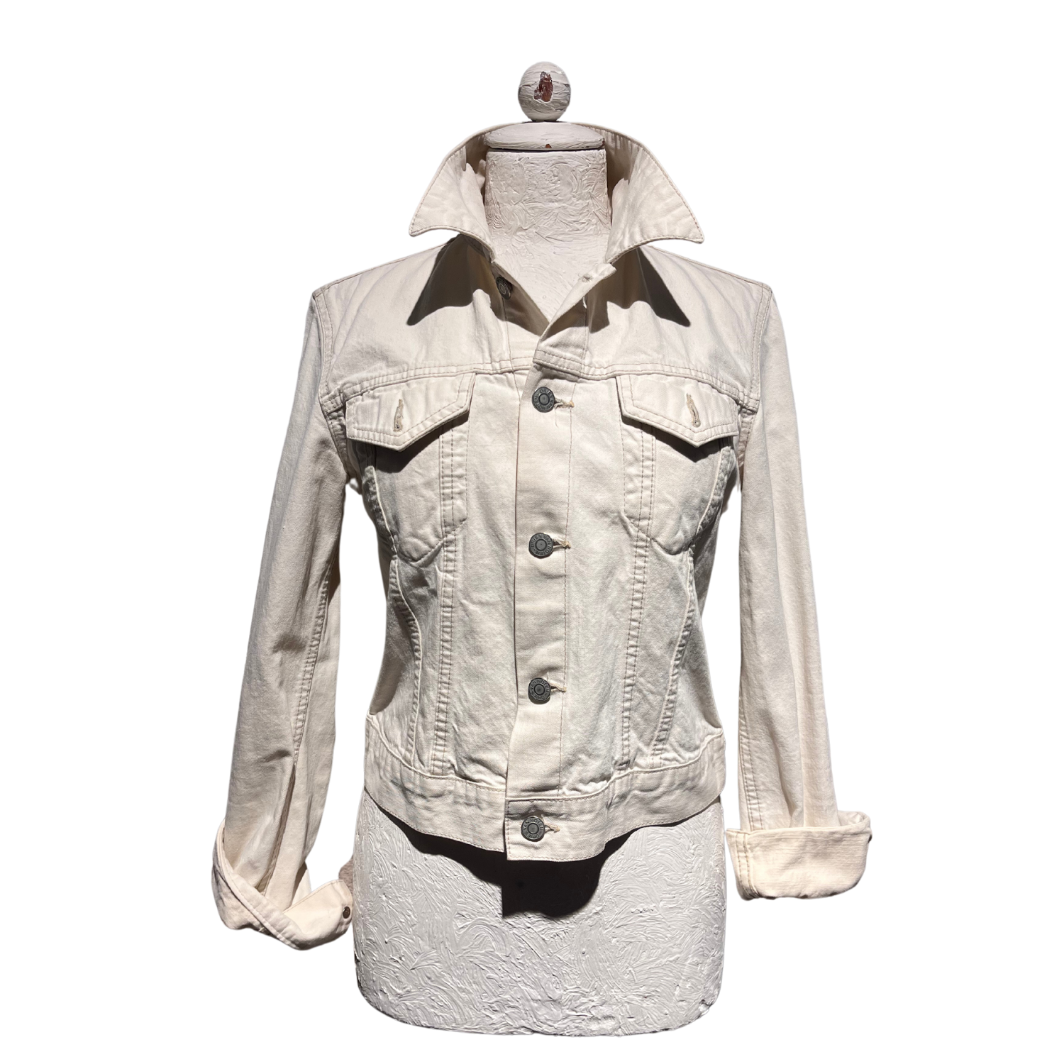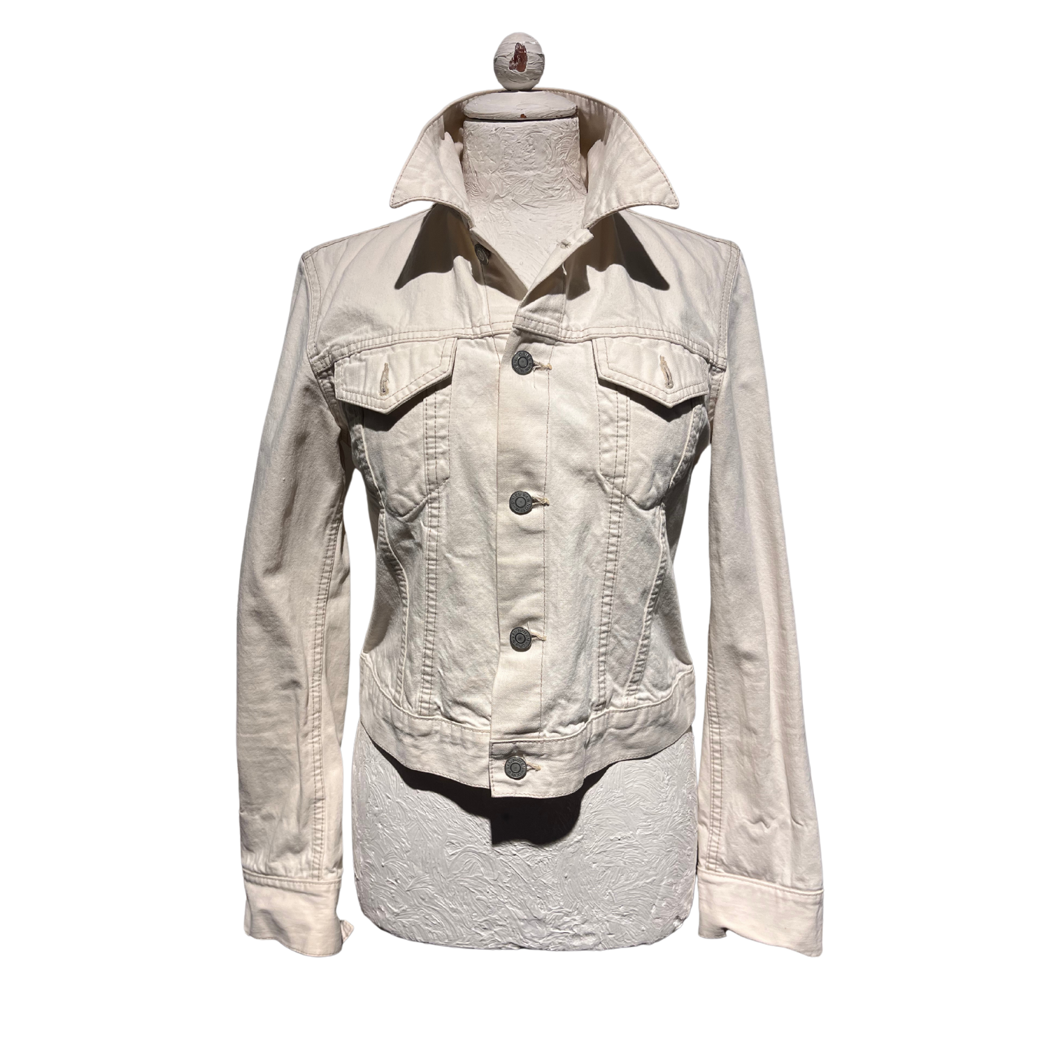 Giacca Dries Van Noten in cotone color panna stile giacca di Jeans. Apertura con bottoni, Due taschine in corrispondenza del petto.