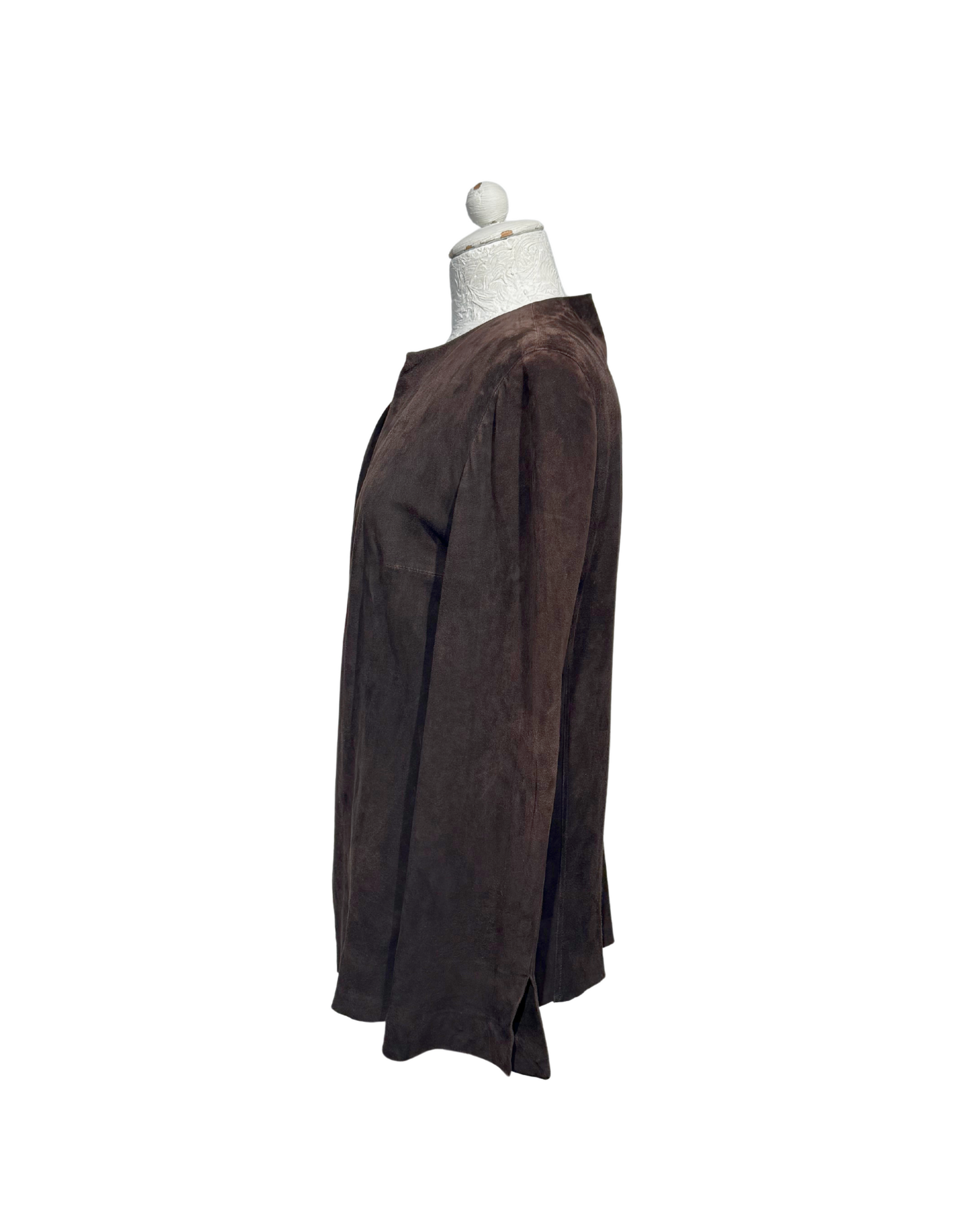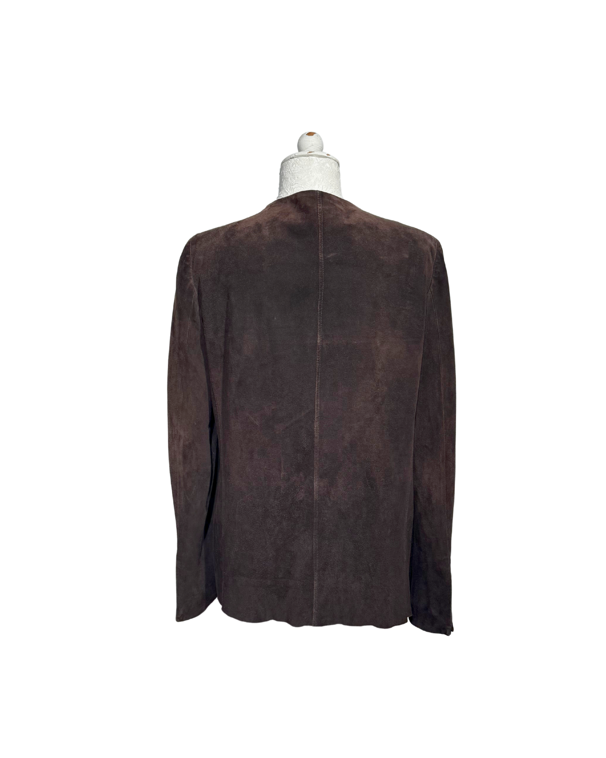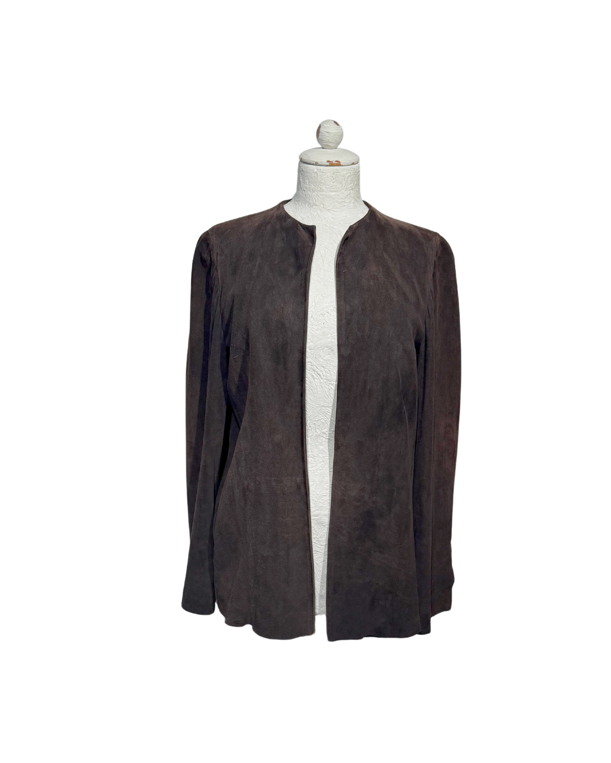 Essenziale , raffinata e intramontabile : questa Giacca Gucci in pelle scamosciata è un must.have per ogni guardaroba elegante. Realizzata al 100% in vera pelle , si distingue per il taglio minimal e senza colletto, che valorizza la silouhette in modo sofisticato. Non sono presenti bottoni o zip.