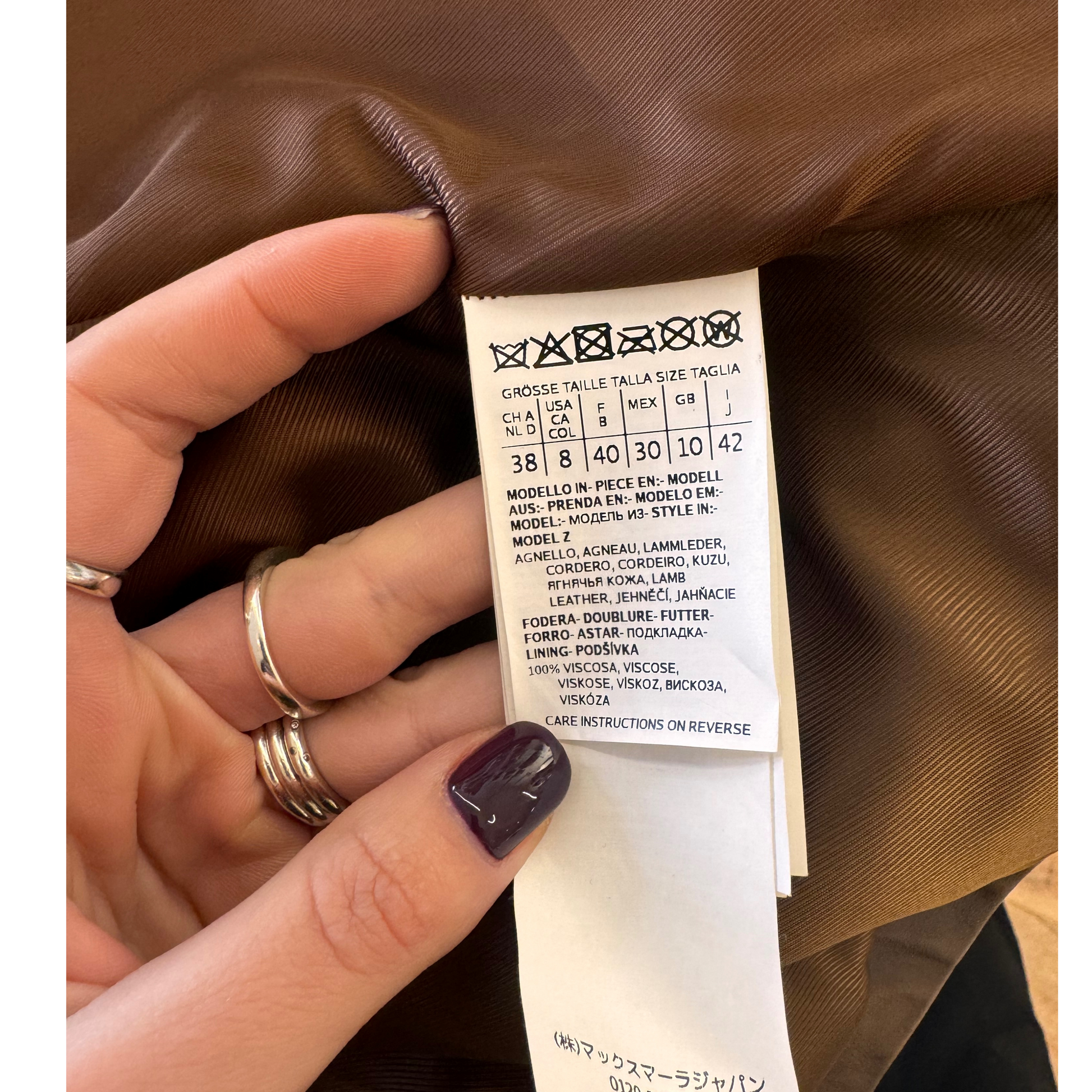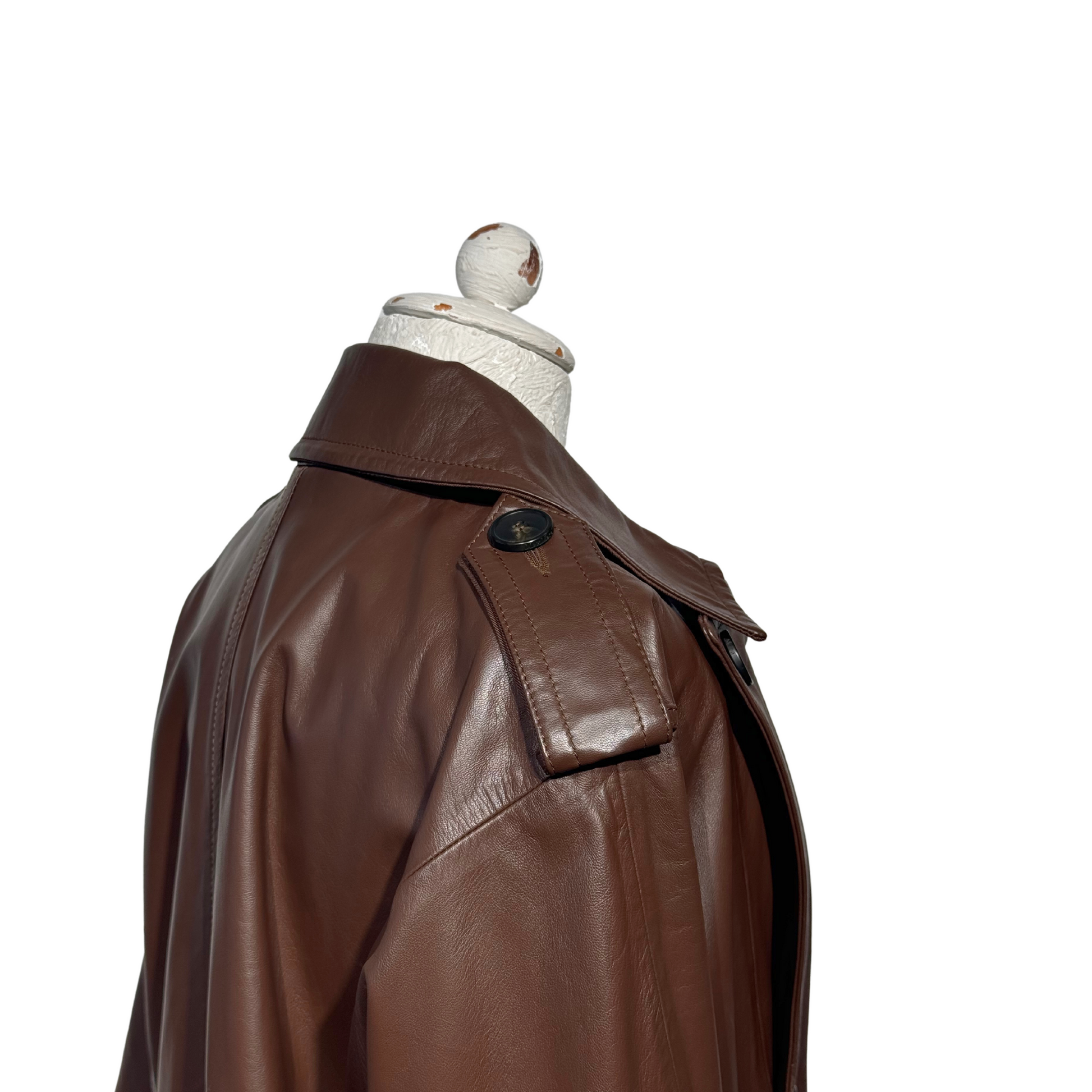 Giacca MaxMara Weekend in pelle di agnello marrone. Bottoni frontali , tasche laterali. Fodera interna tono Su tono. Manica a 3/4