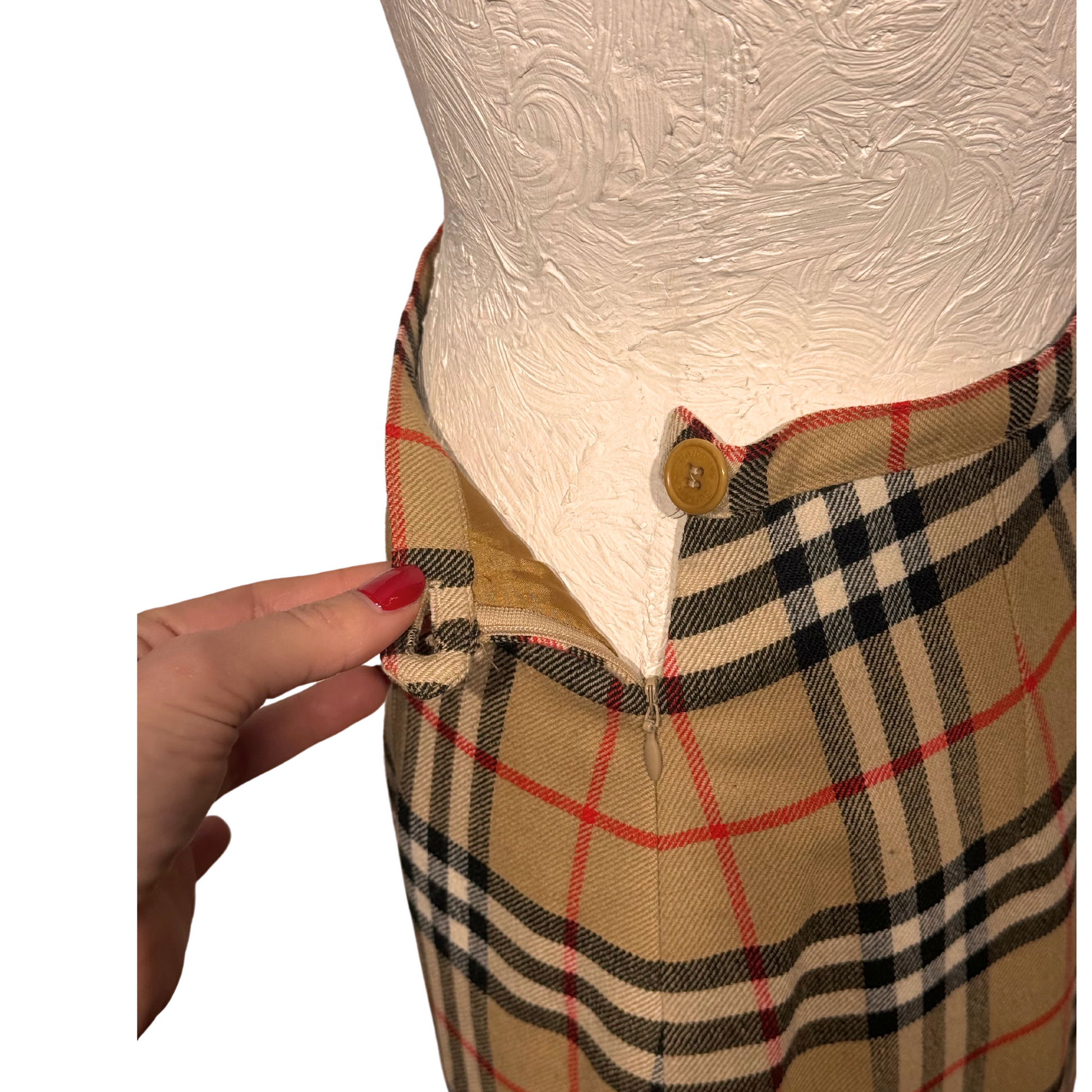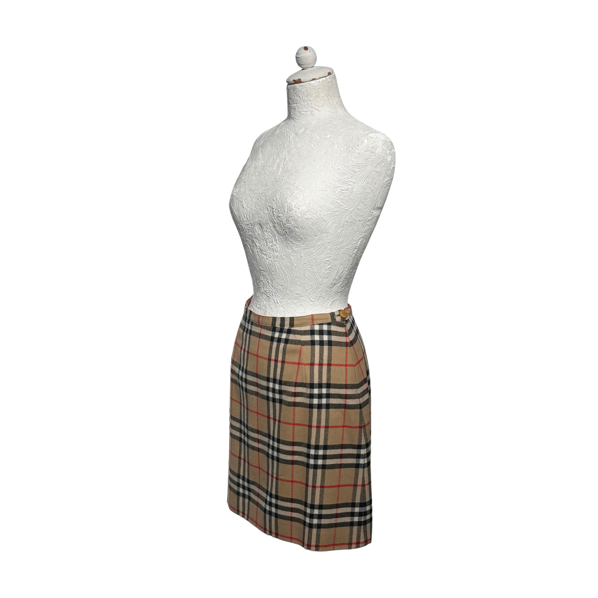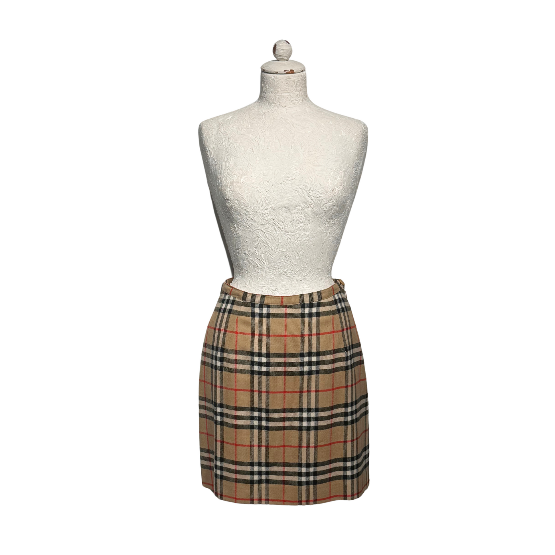 Gonna Burberry realizzata in classico e iconico tartan , 100% lana vergine. Apertura laterale con cerniera e bottone.