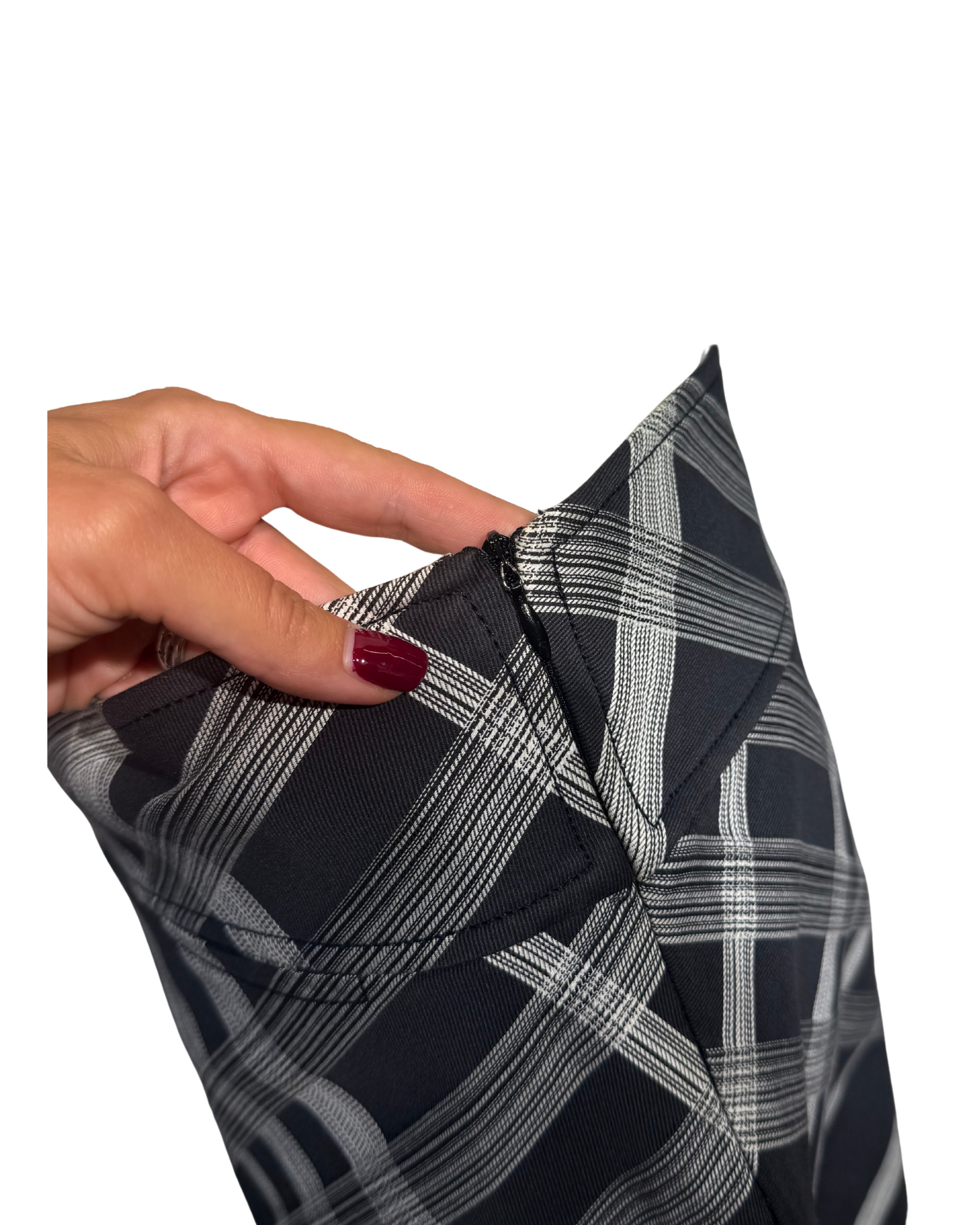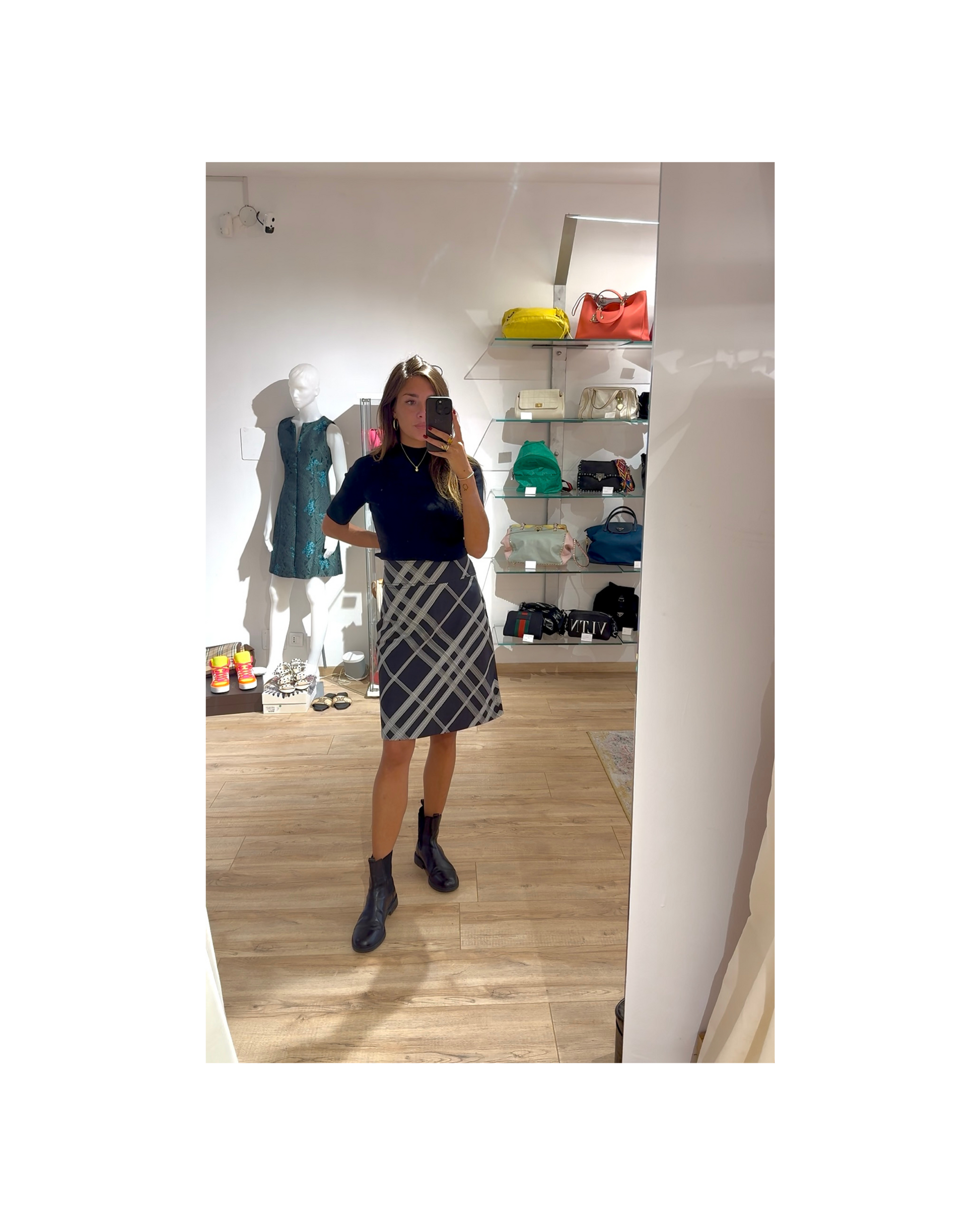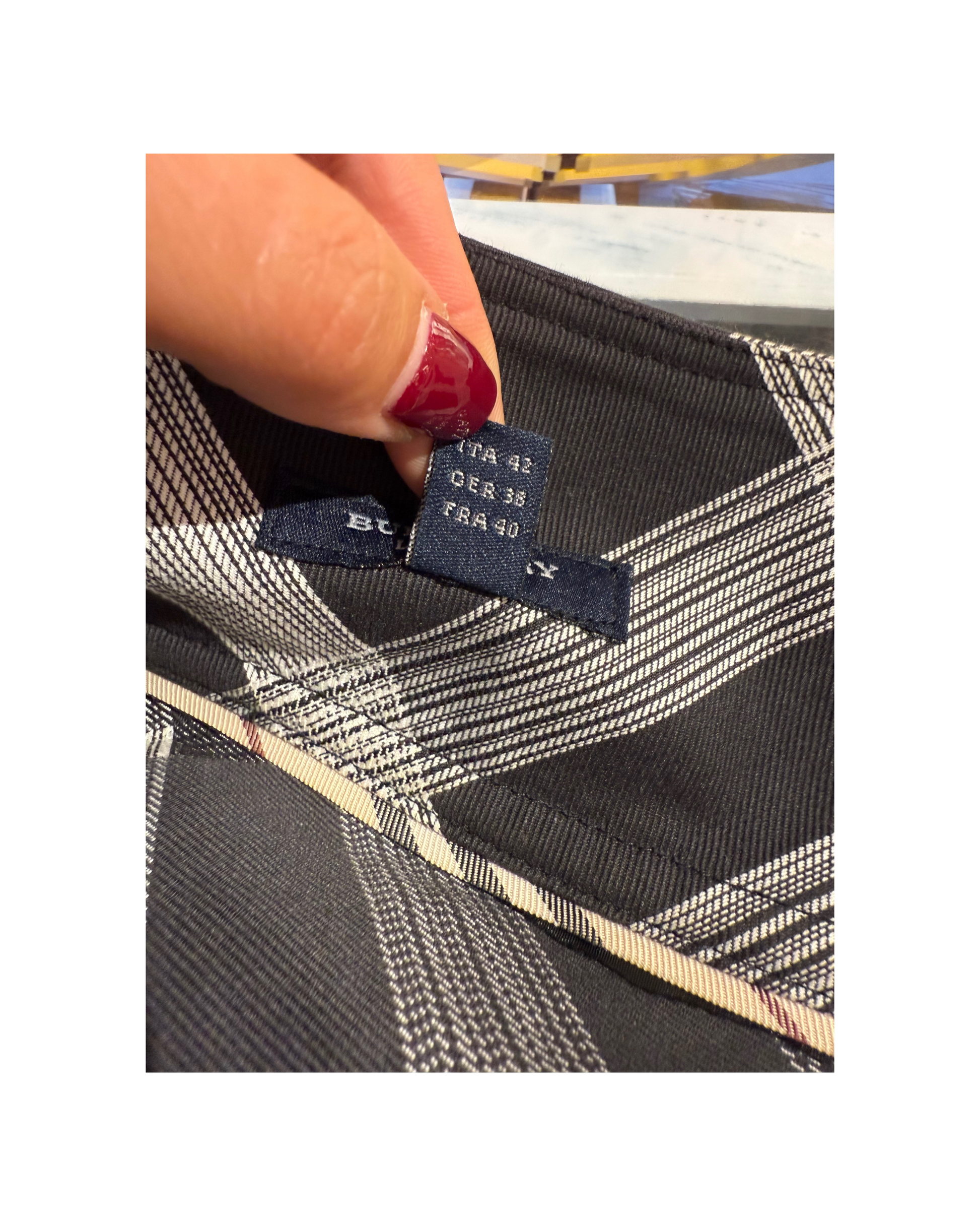 Elegante e senza tempo, questa gonna Burberry London è realizzata in 100% cotone con fodera in cupro. Il motivo check nei toni del grigio richiama l’iconico stile britannico del brand, reinterpretato in una chiave sofisticata e versatile. Dal taglio dritto e lineare, veste in modo femminile senza rinunciare alla praticità. La chiusura laterale con zip invisibile garantisce una perfetta vestibilità. Un capo raffinato e facilmente abbinabile, ideale sia per look da ufficio che per outfit più casual chic.