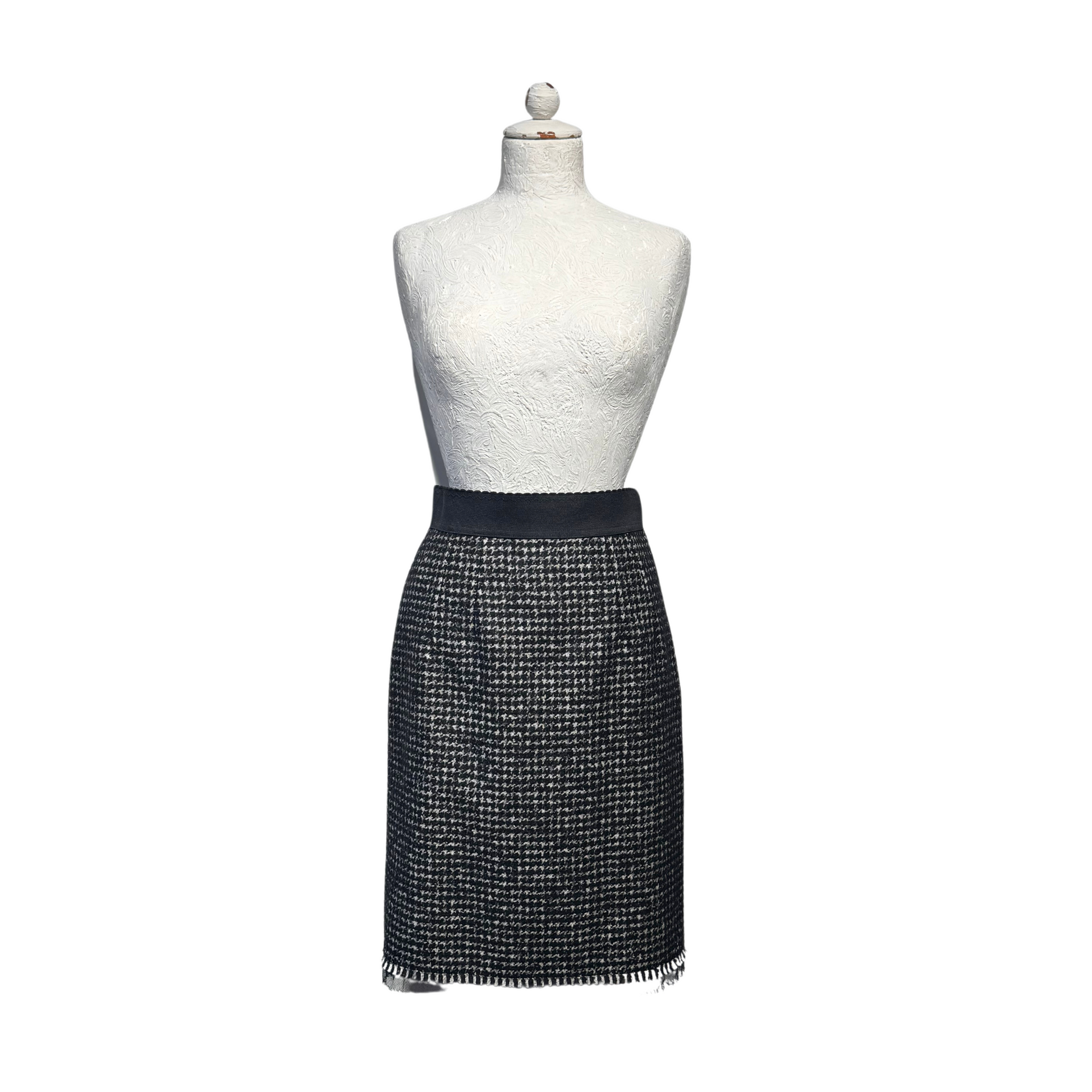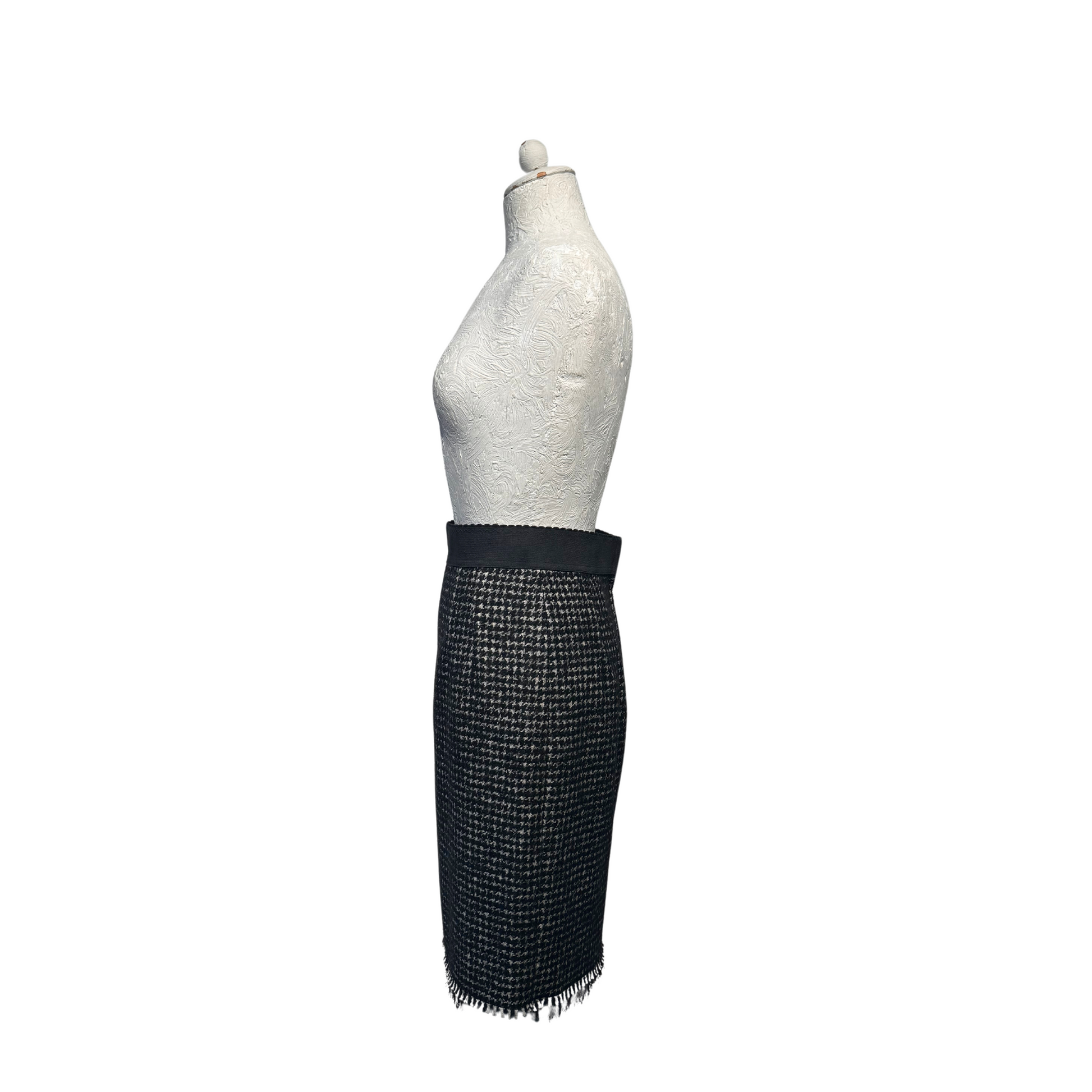 Gonna D&G pied de poulle Bianca e nera. Fodera in seta con bottoncini. Apertura posteriore con cerniera. Elastico in vita nero. Pizzo nella parte posteriore.