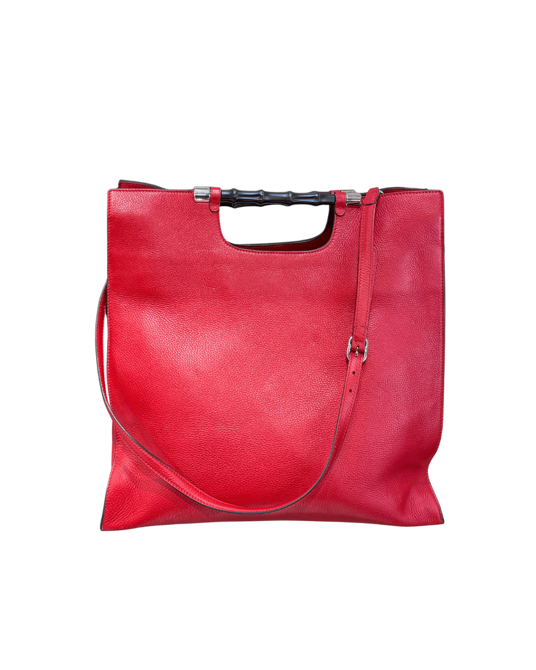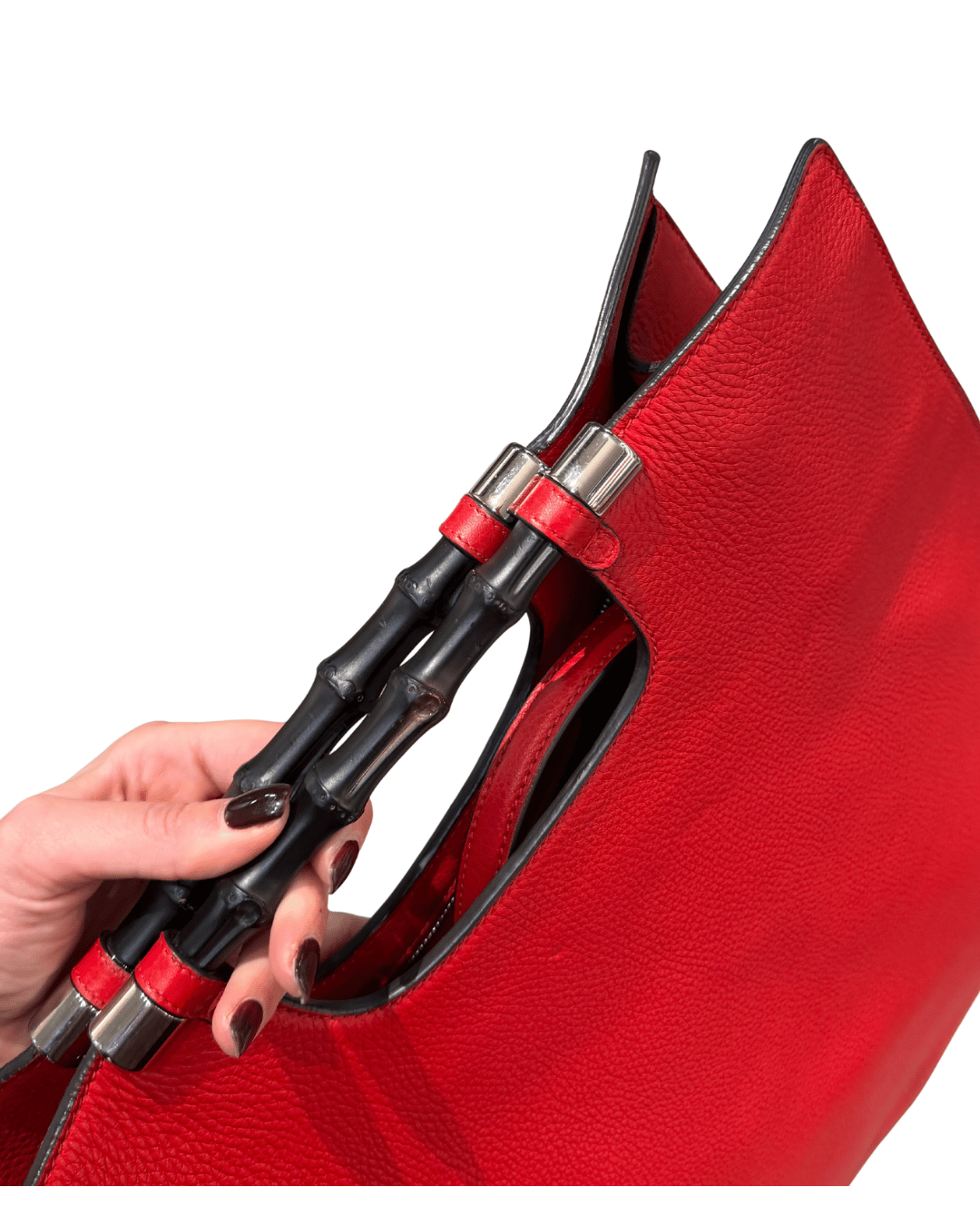 GUCCI RETTANGOLARE PELLE ROSSA MANICI BAMBOO