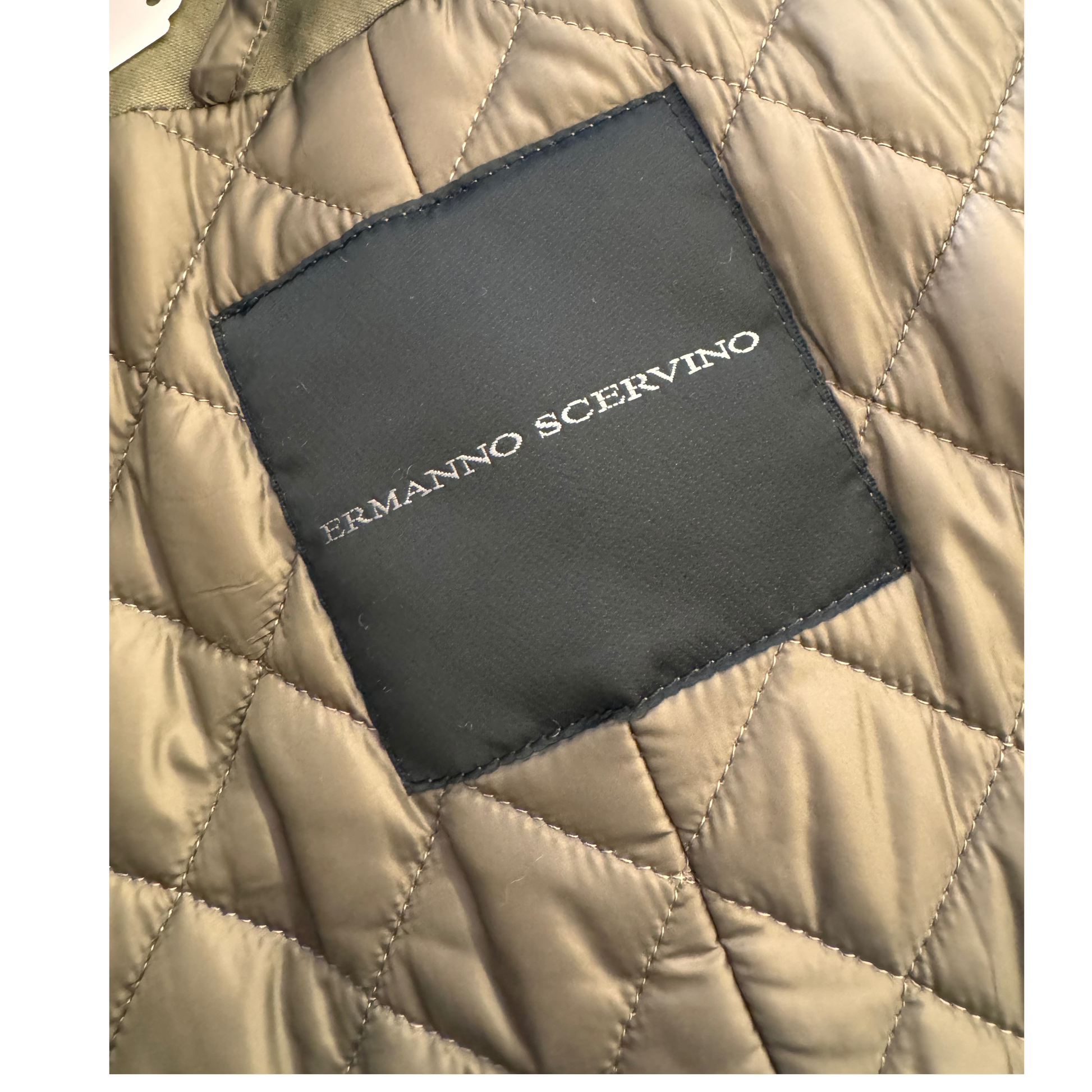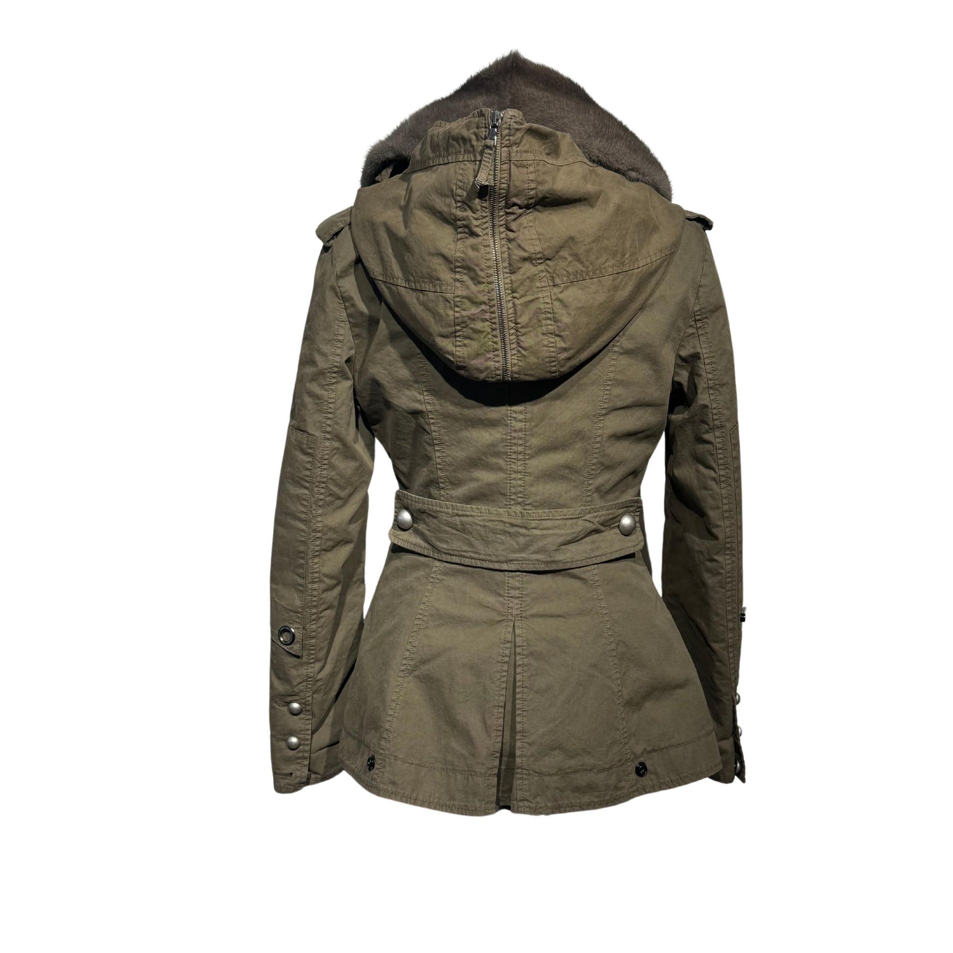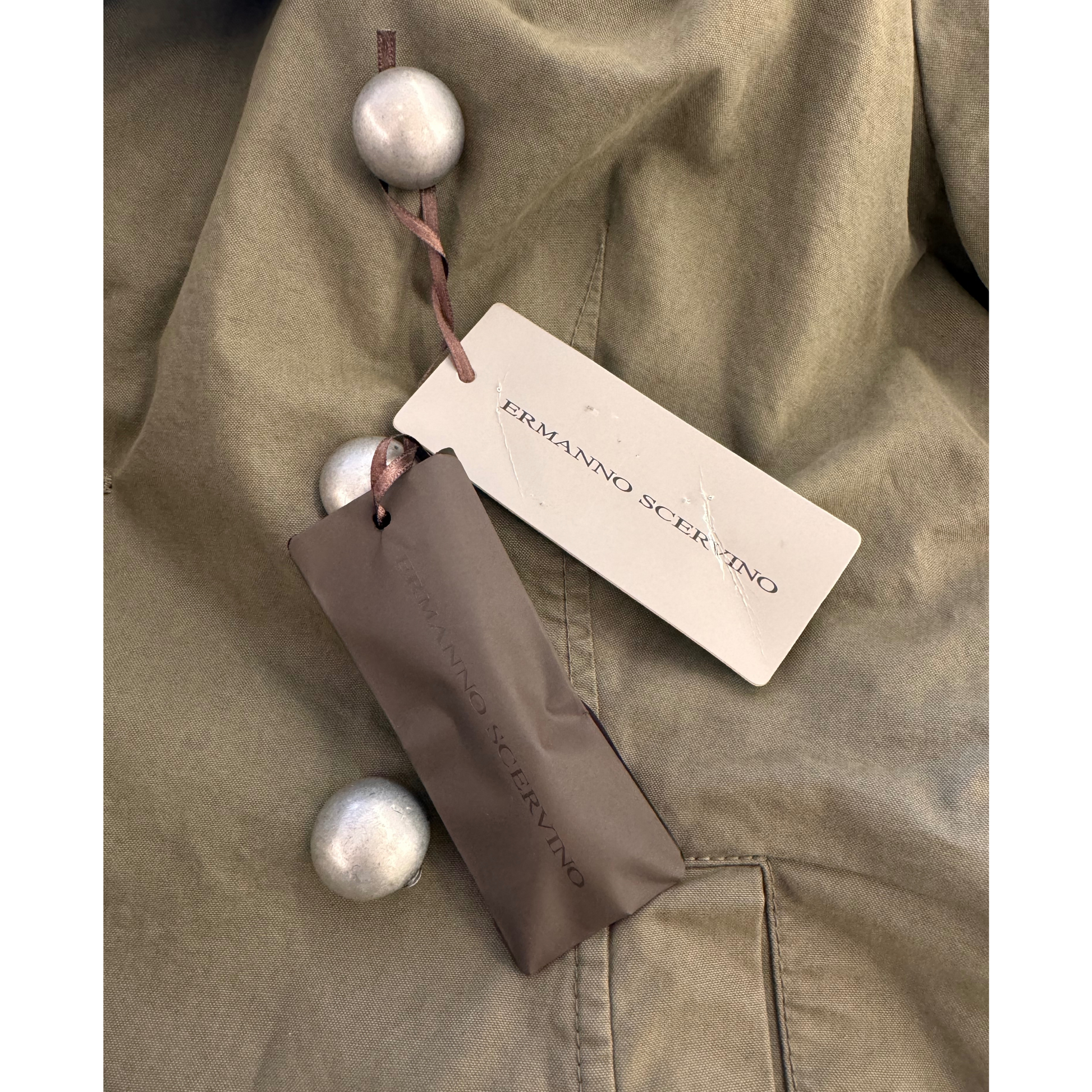 Impermeabile Ermanno Scervino verde oliva , interno imbottito. Impreziosito da collo in visone amovibile color tortora. Apertura frontale a doppio petto, bottoni argentati.