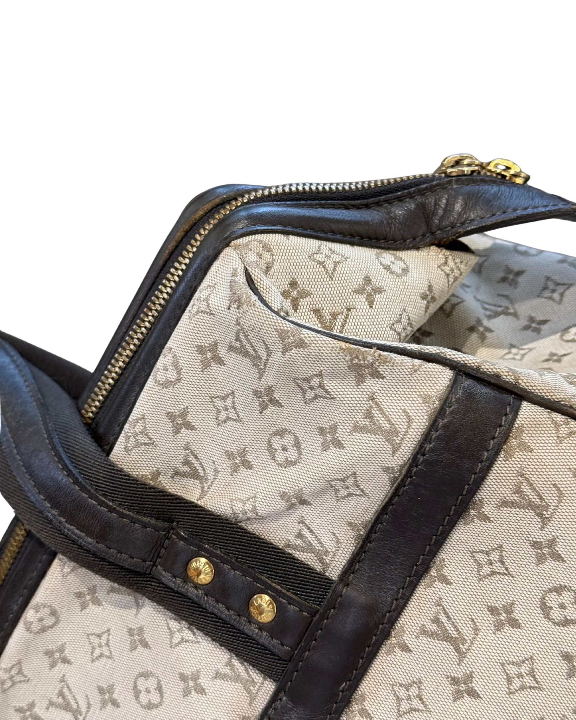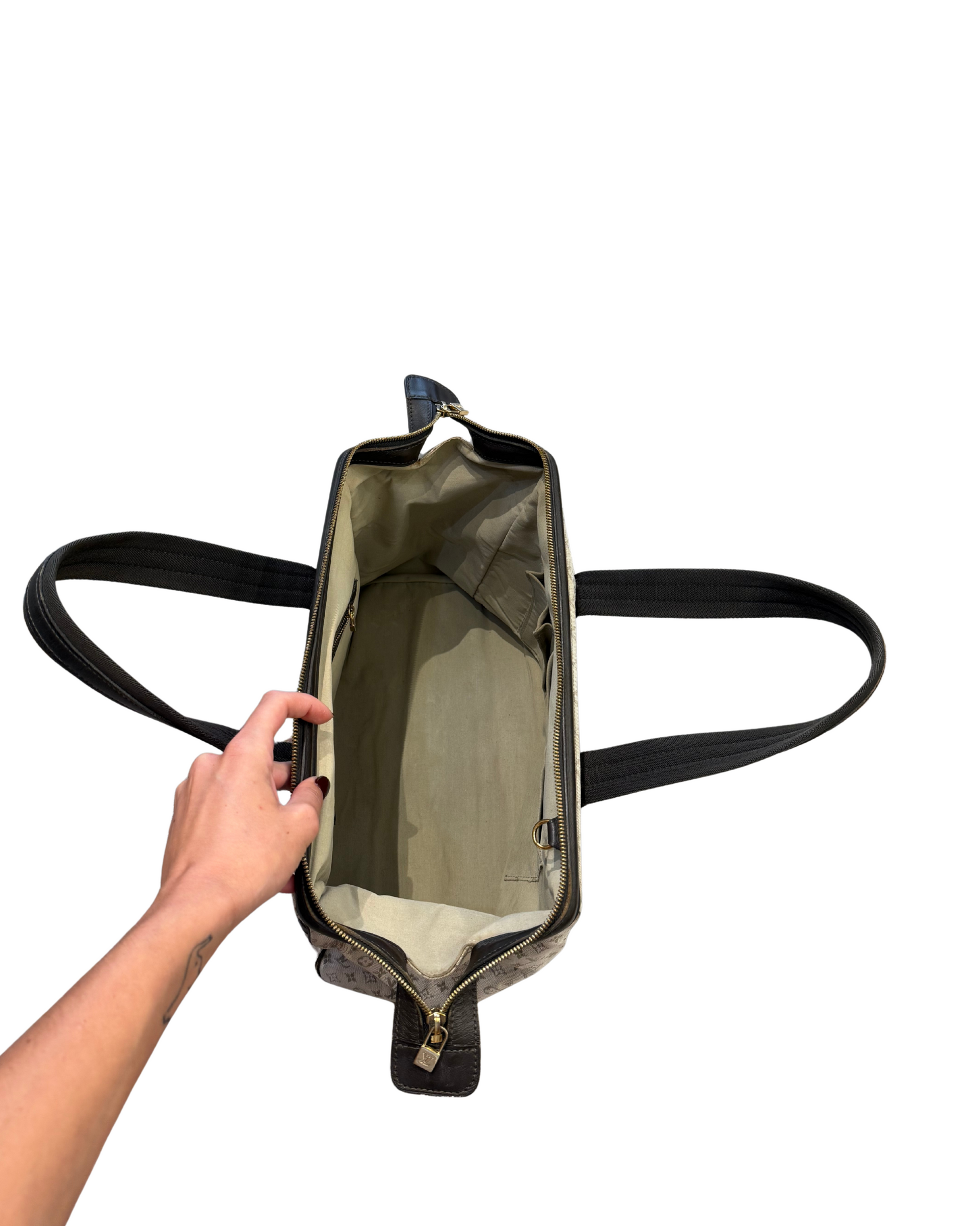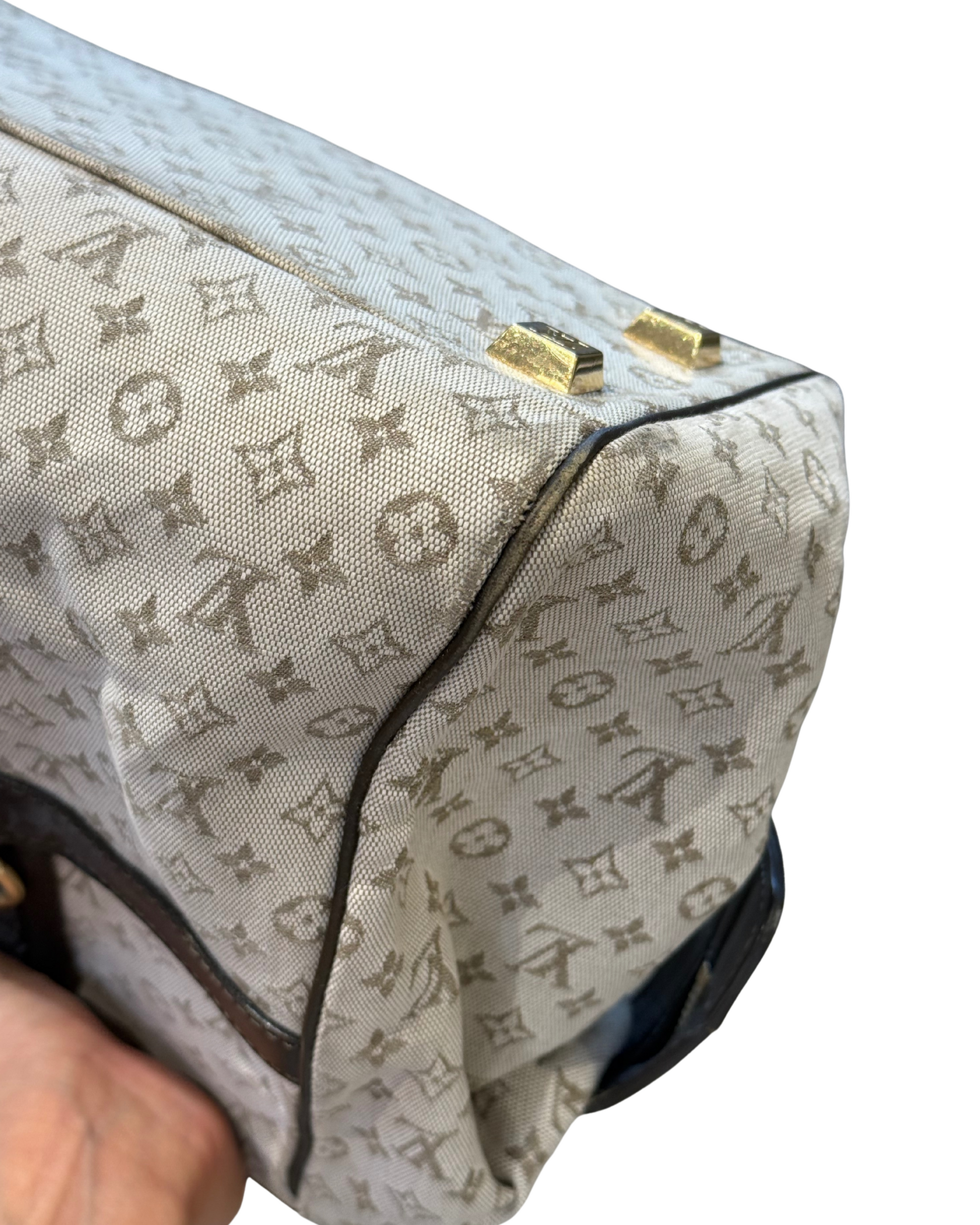 La Josephine di Louis Vuitton è la scelta ideale per chi cerca uno stile raffinato ma pratico. Realizzata in tesa monogram mini Lin Ecrù, questa borsa di distingue per il suo design strutturato e i dettagli in marrone scuro , cono finiture in metallo dorato firmate LV. Dotata di doppi manici , si porta comodamente a mano e a spalla. L'interno è spazioso, foderato di tessuto chiaro con tasca con cerniera e tasche piatte. Piedini d'appoggio. Apertura con cerniera. (codice: VI0042)