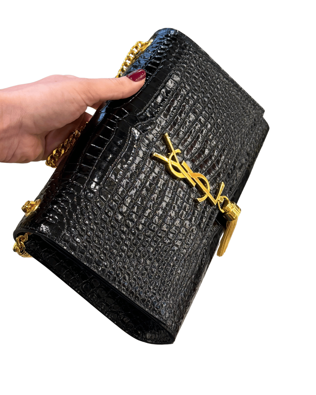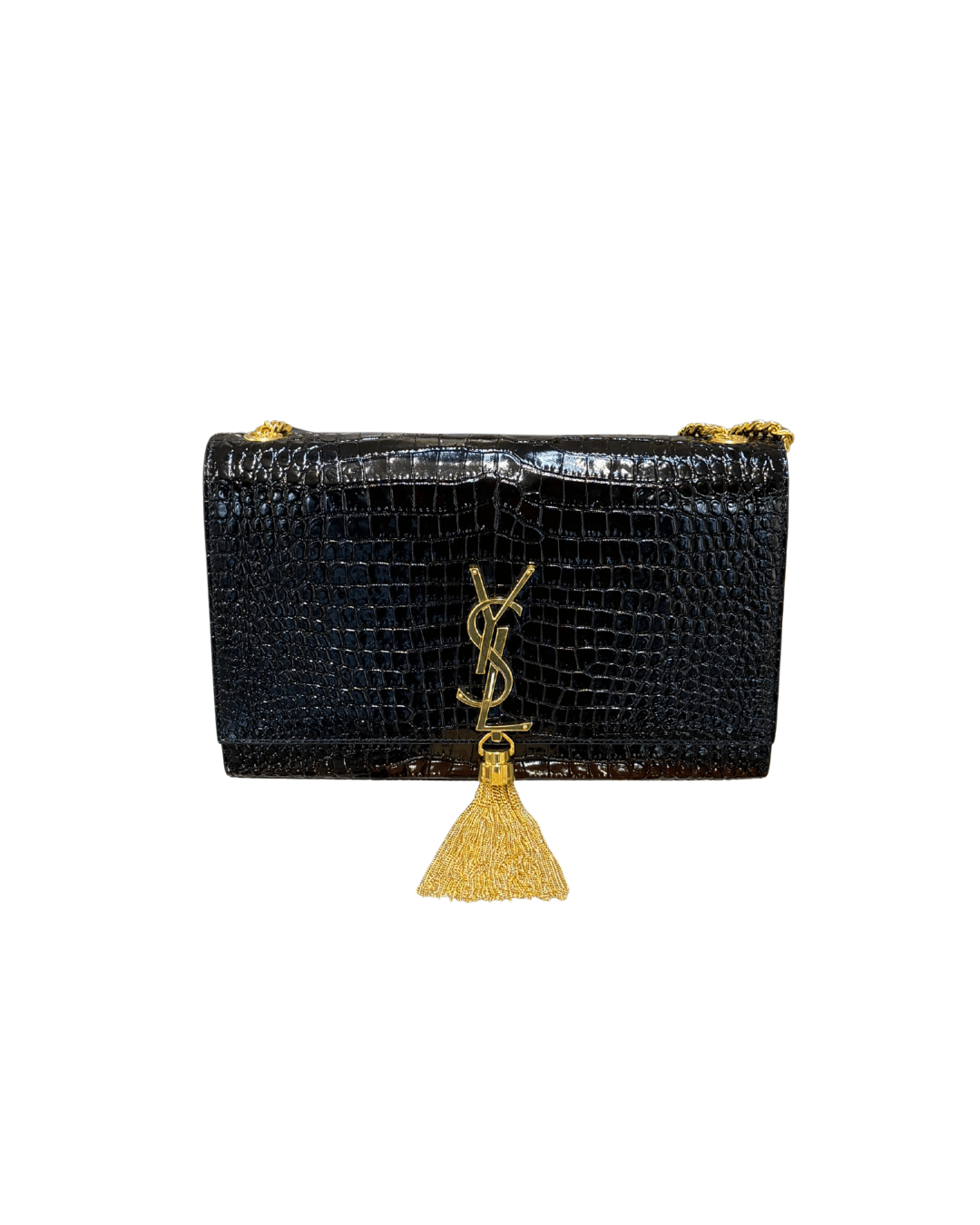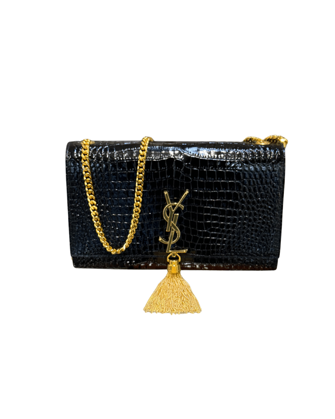 La Saint Laurent Kate Medium in versione stampa cocco nera è una delle borse più iconiche ed eleganti della Maison, un pezzo senza tempo pensato per accompagnare con classe sia le occasioni speciali che i look più minimal da giorno. Si distingue per la sua silhouette strutturata e pulita, illuminata dall’inconfondibile logo YSL in metallo dorato con nappina pendente, dettaglio simbolo della linea Kate. La catena dorata consente di indossarla comodamente a spalla o crossbody, rendendola estremamente versatile. L’interno, in contrasto scuro, è ideale per contenere l’essenziale con stile. ( codice: BRS 354119 0525)