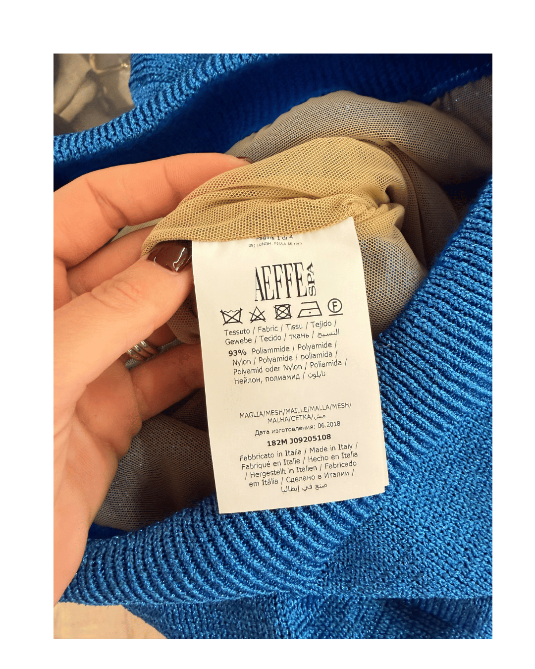 Il maglione più iconico della collezione “Rainbow Week” di Alberta Ferretti: il modello “Sunday”, qui proposto in una luminosa versione blu elettrico con filato lurex che dona luce e carattere a qualsiasi look. Realizzato in Italia, il capo è lavorato in una maglia morbida e leggera, con composizione 93% poliammide e 7% poliestere, perfetta per mantenere la struttura brillante del tessuto senza rinunciare al comfort. All’interno presenta la tipica fodera leggera che rende la vestibilità ancora più confortevole e scivolata. La scritta “SUNDAY” in rosa pastello ricamato sul davanti aggiunge un tocco giocoso e riconoscibile, rendendolo un maglione ideale sia per il tempo libero che per ravvivare outfit più semplici.