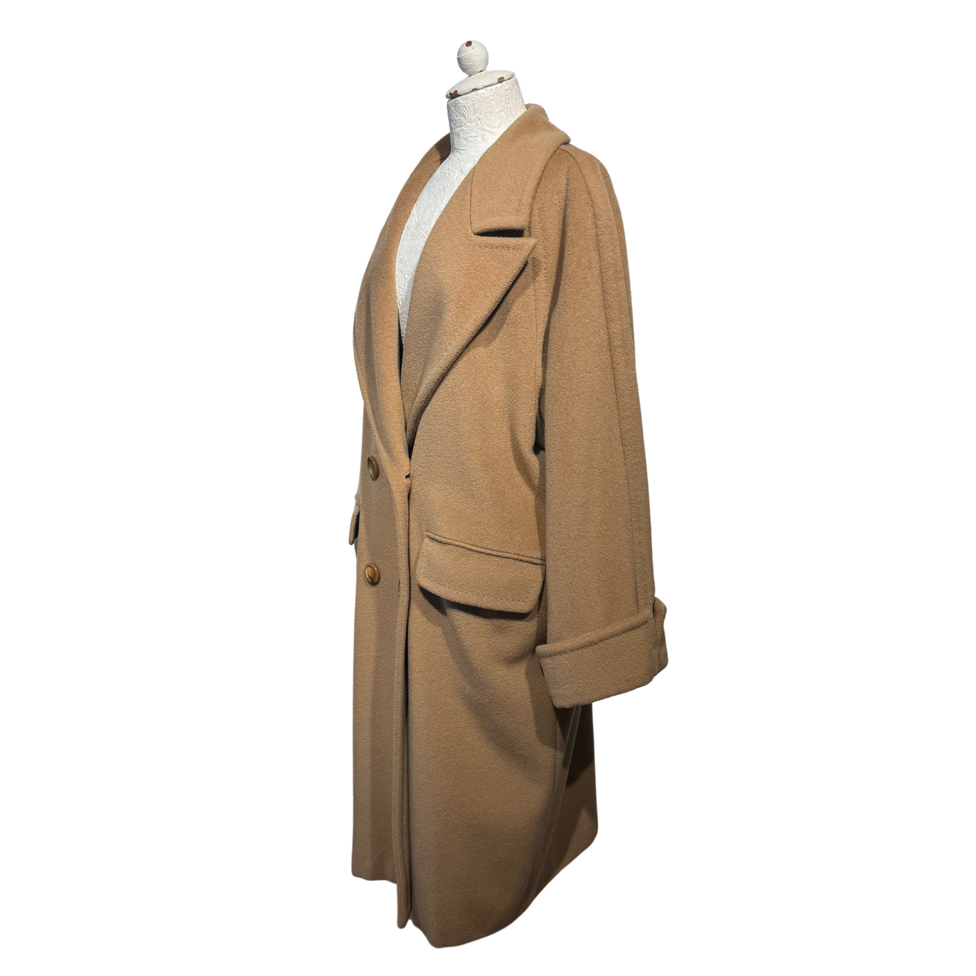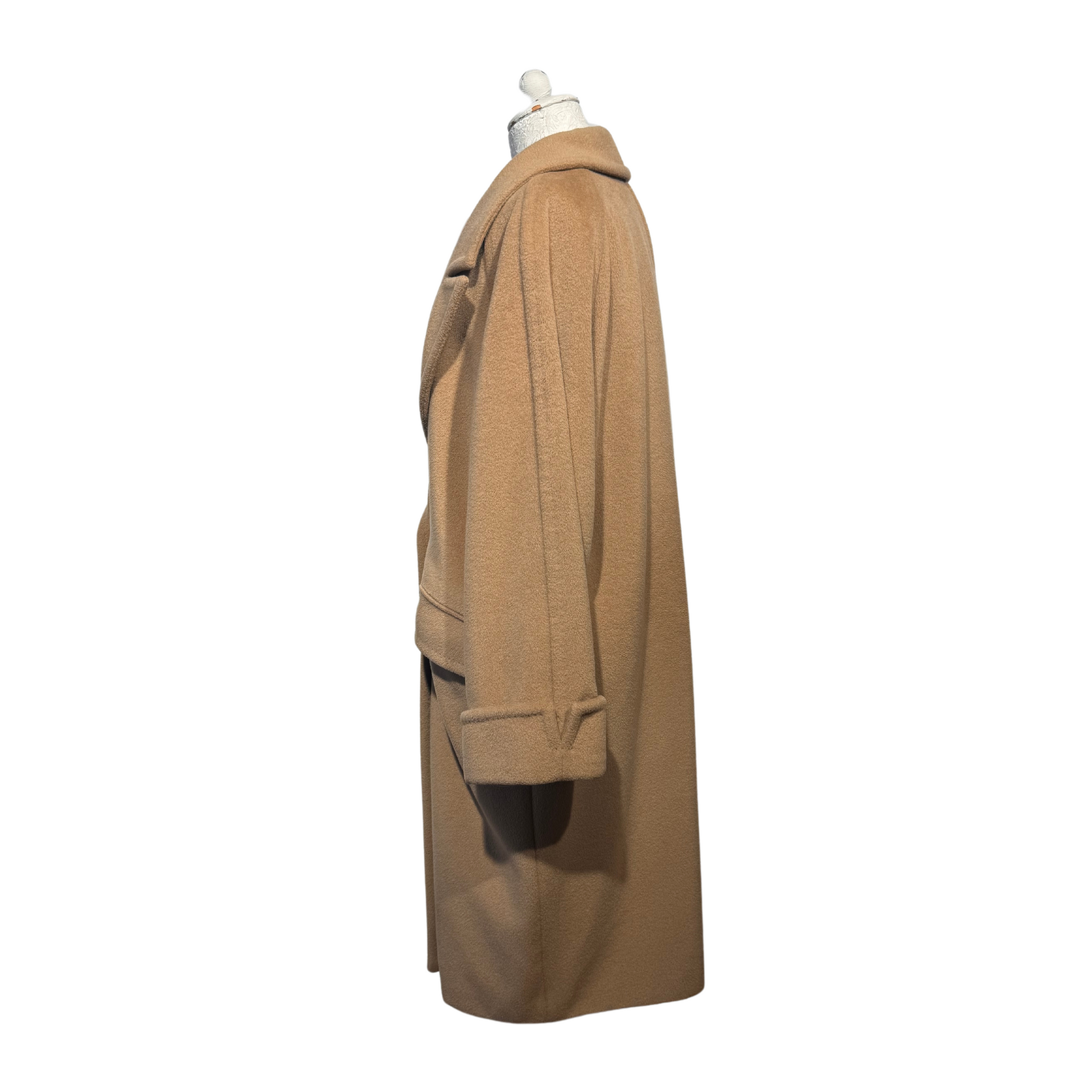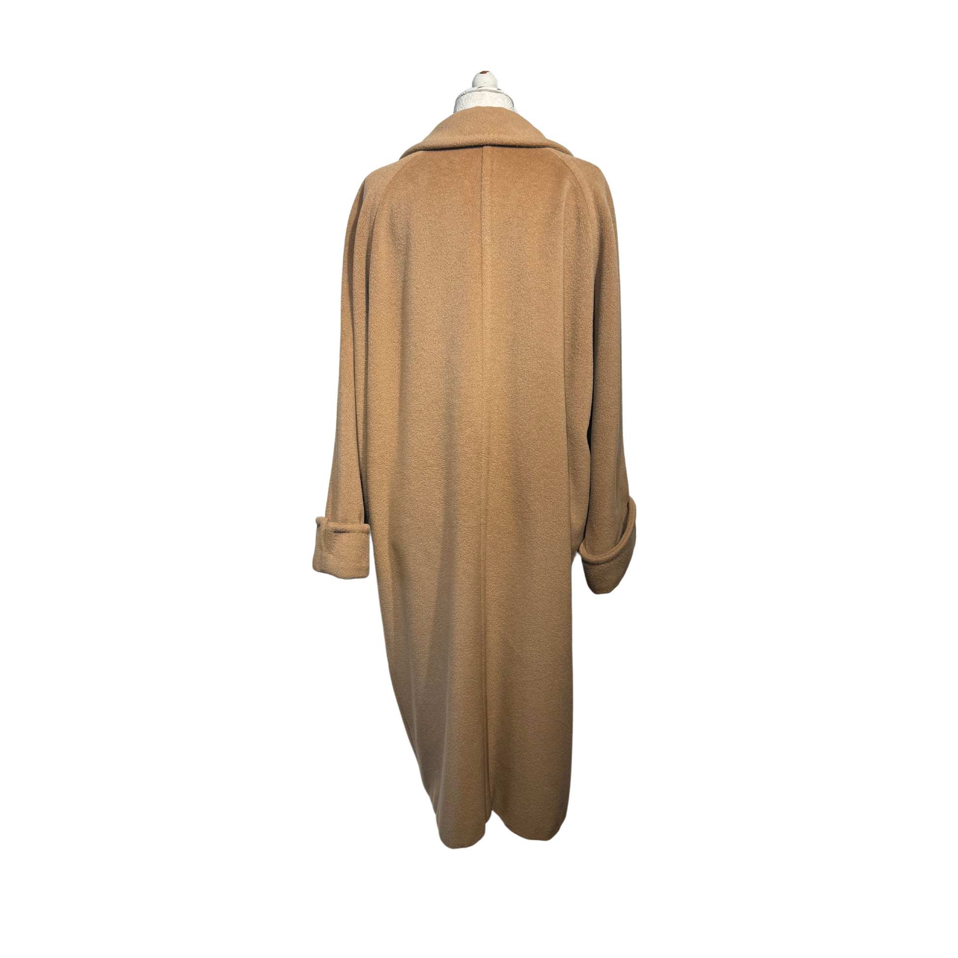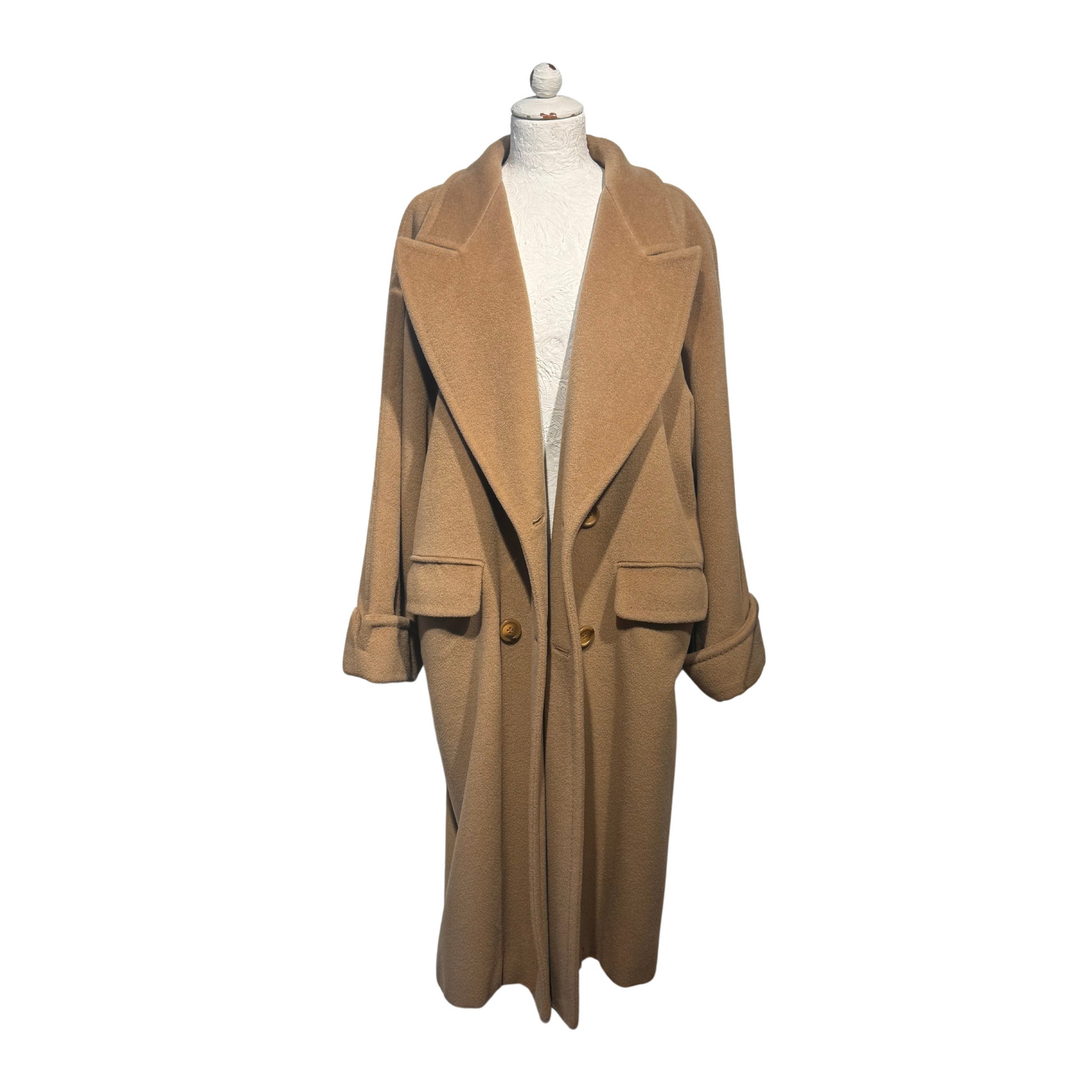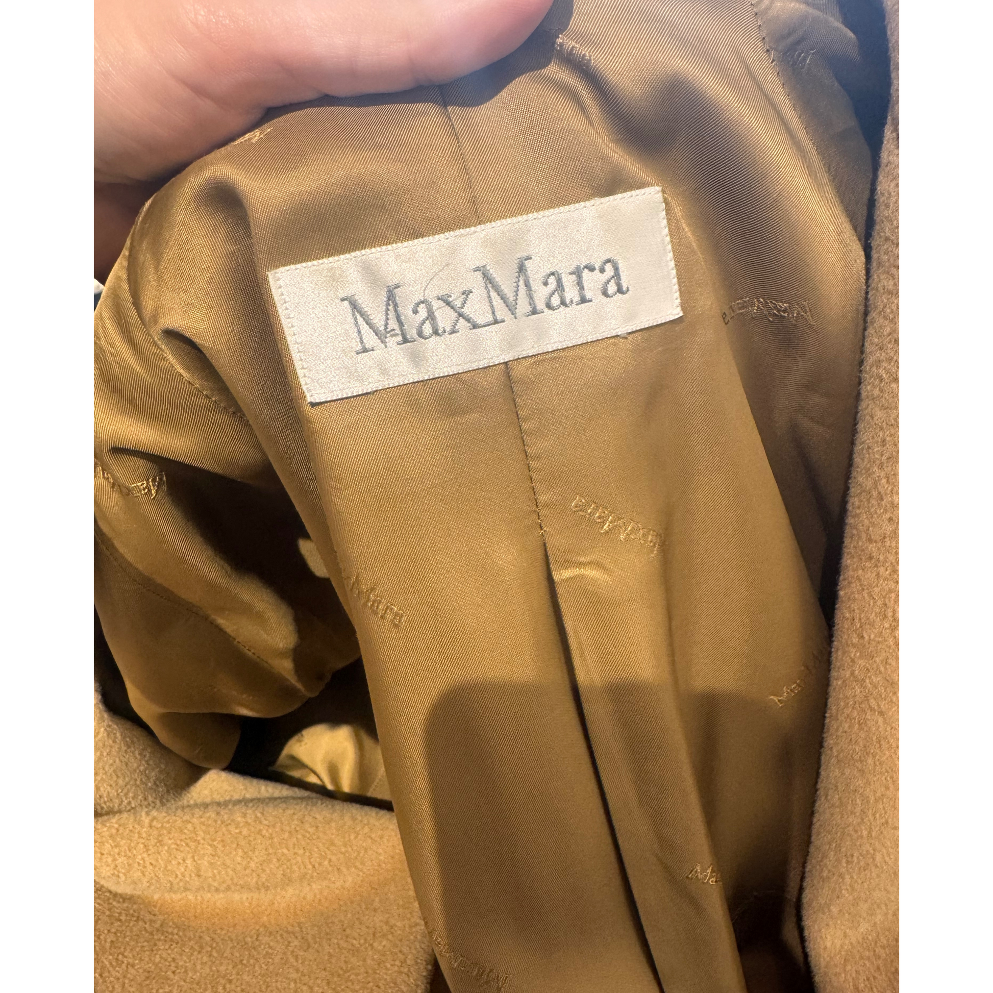 Maxi cappotto Max Mara , 90% lana e 10& cashmere color cammello. Apertura frontale con bottoni. Tasche laterali, risvolto nelle maniche. Vestibilità over.
