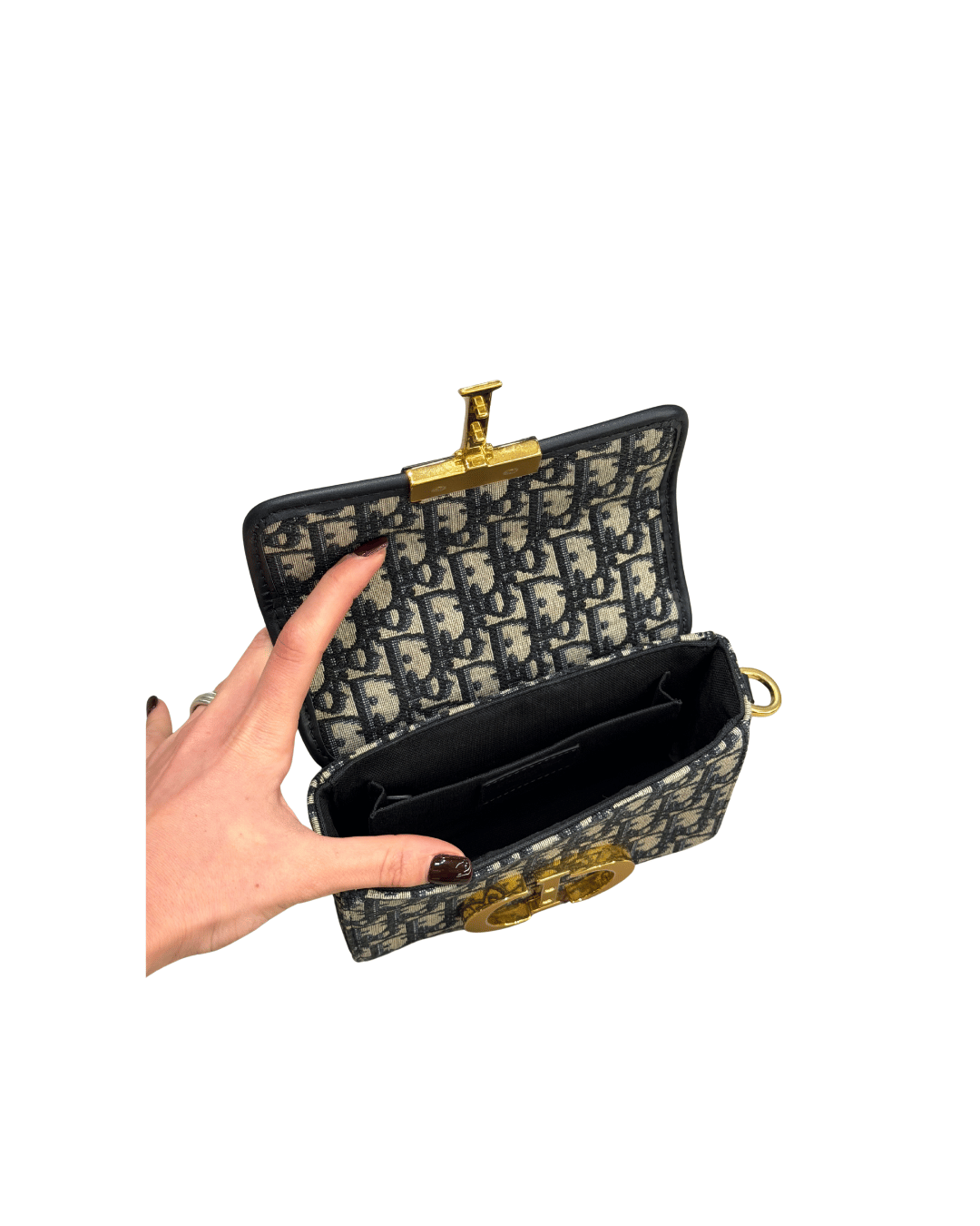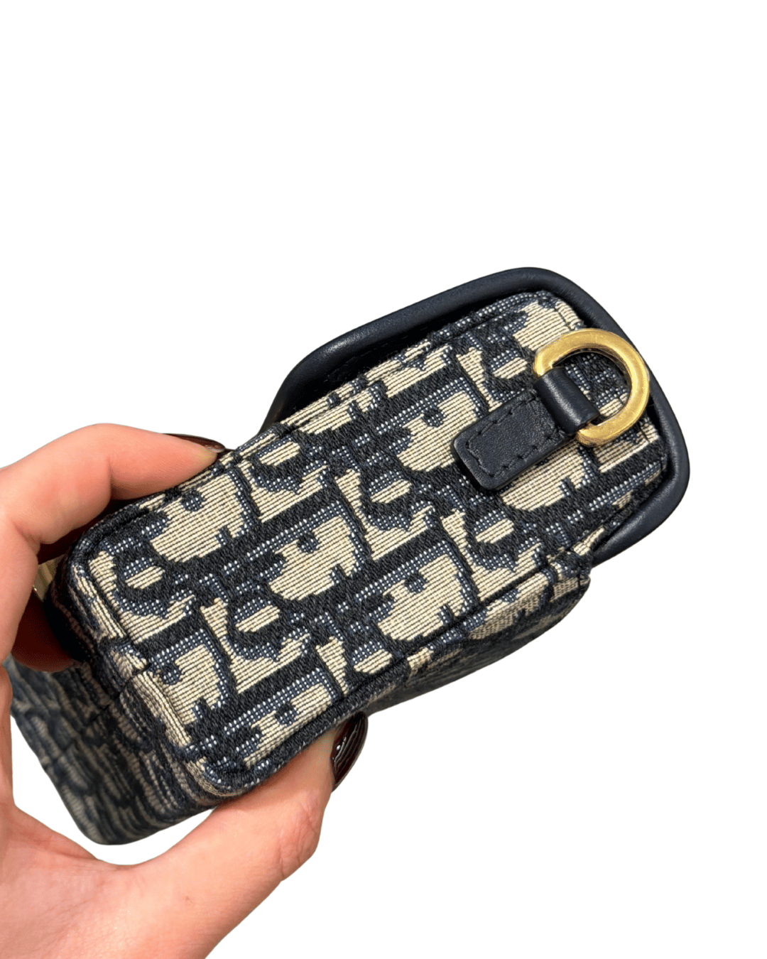 Iconica, sofisticata e immediatamente riconoscibile, la MINI Dior Montaigne è uno dei modelli più amati della Maison, ispirata all’eleganza senza tempo di Parigi e al celebre indirizzo 30 Avenue Montaigne. Questa versione è realizzata nell’inconfondibile tessuto Dior Oblique jacquard nei toni del blu, impreziosita da finiture in pelle coordinata e dall’elegante chiusura frontale con logo CD in metallo dorato, simbolo distintivo e luminoso. Apertura a pressione. Le dimensioni sono ridotte ma presenta un interno ben organizzato con scomparti ideali per custodire telefono, carte e piccoli essenziali. La tracolla regolabile in pelle consente di indossarla sia crossbody che a spalla, rendendola perfetta dal giorno alla sera. (codice: 05-RU-0210)