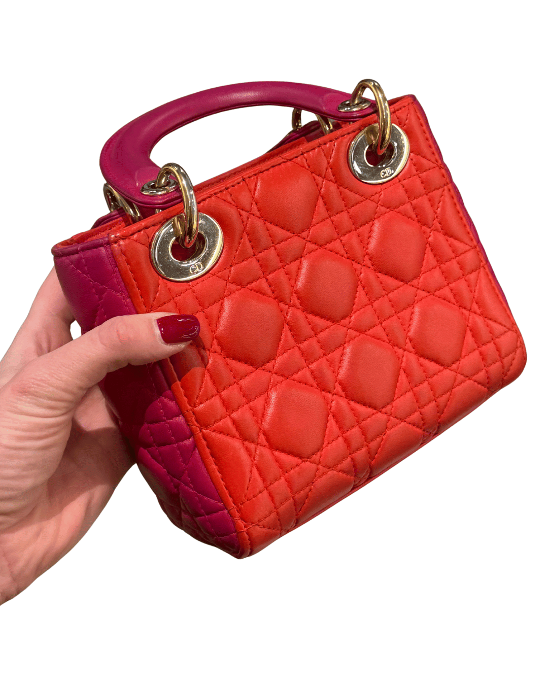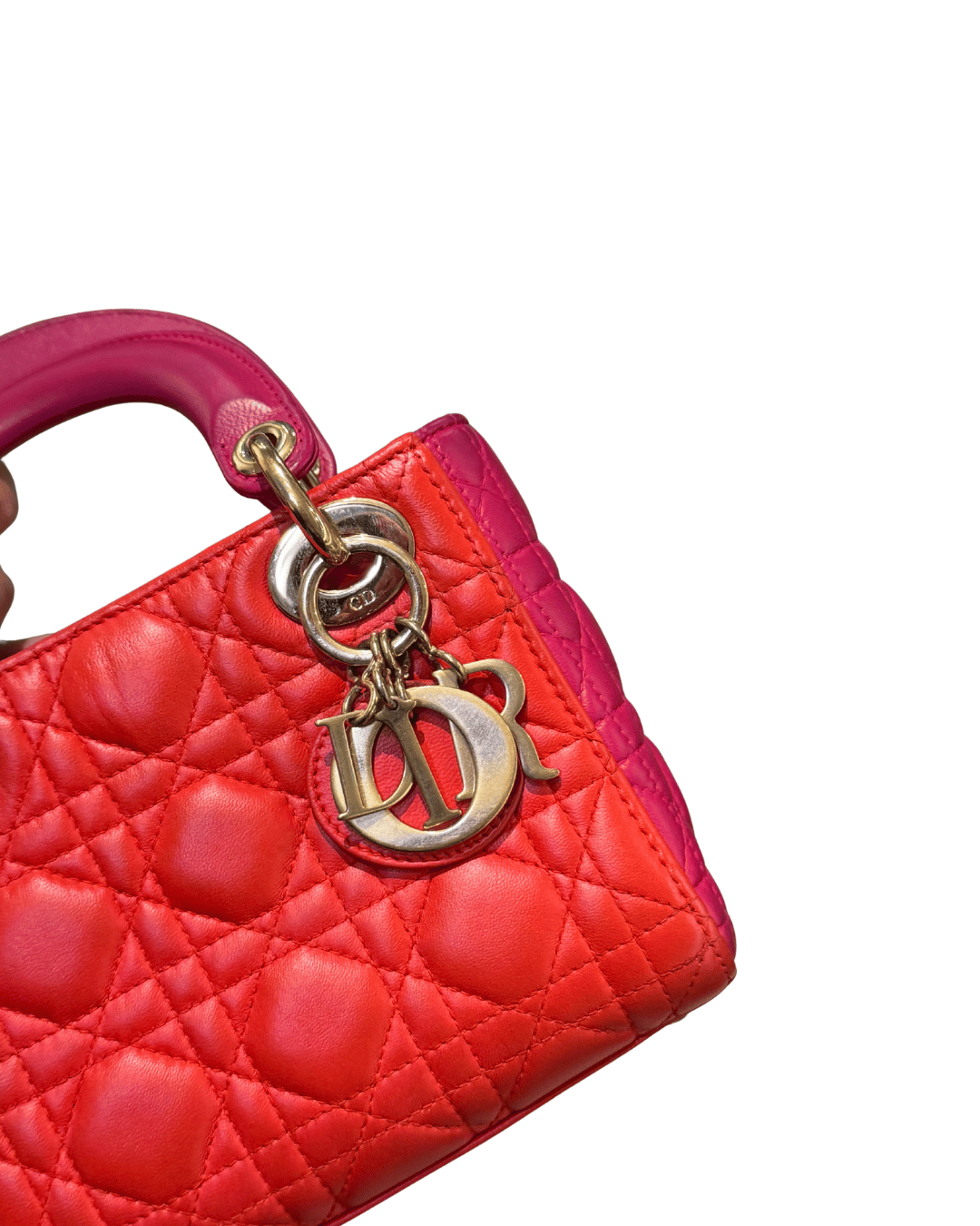 MINI LADY DIOR BICOLORE FUCSIA E ROSSA