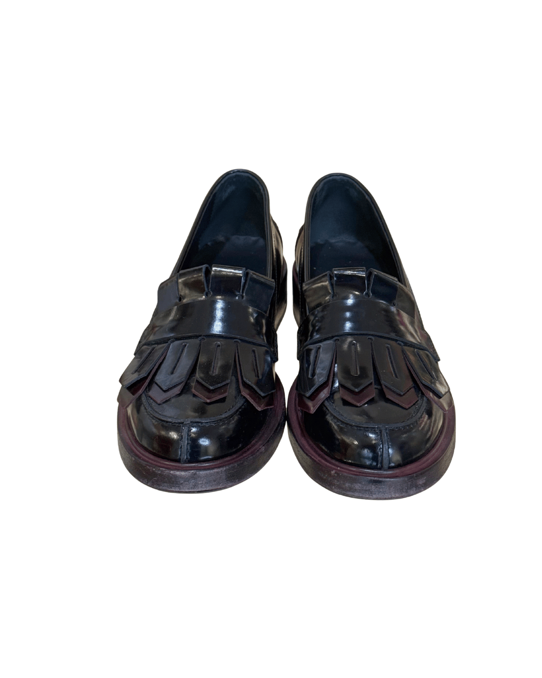 Questi mocassini Tod’s in pelle lucida nera con inserti bordeaux sono la perfetta sintesi tra tradizione artigianale e carattere contemporaneo. Il modello è arricchito da frange lavorate e da dettagli sovrapposti che donano movimento e personalità alla calzatura. La suola in cuoio con inserto in gomma garantisce comfort e resistenza, mentre il bordo bordeaux aggiunge un tocco di originalità. La linea maschile e sofisticata li rende ideali da abbinare sia a look formali sia a outfit più casual, per uno stile deciso e senza tempo.