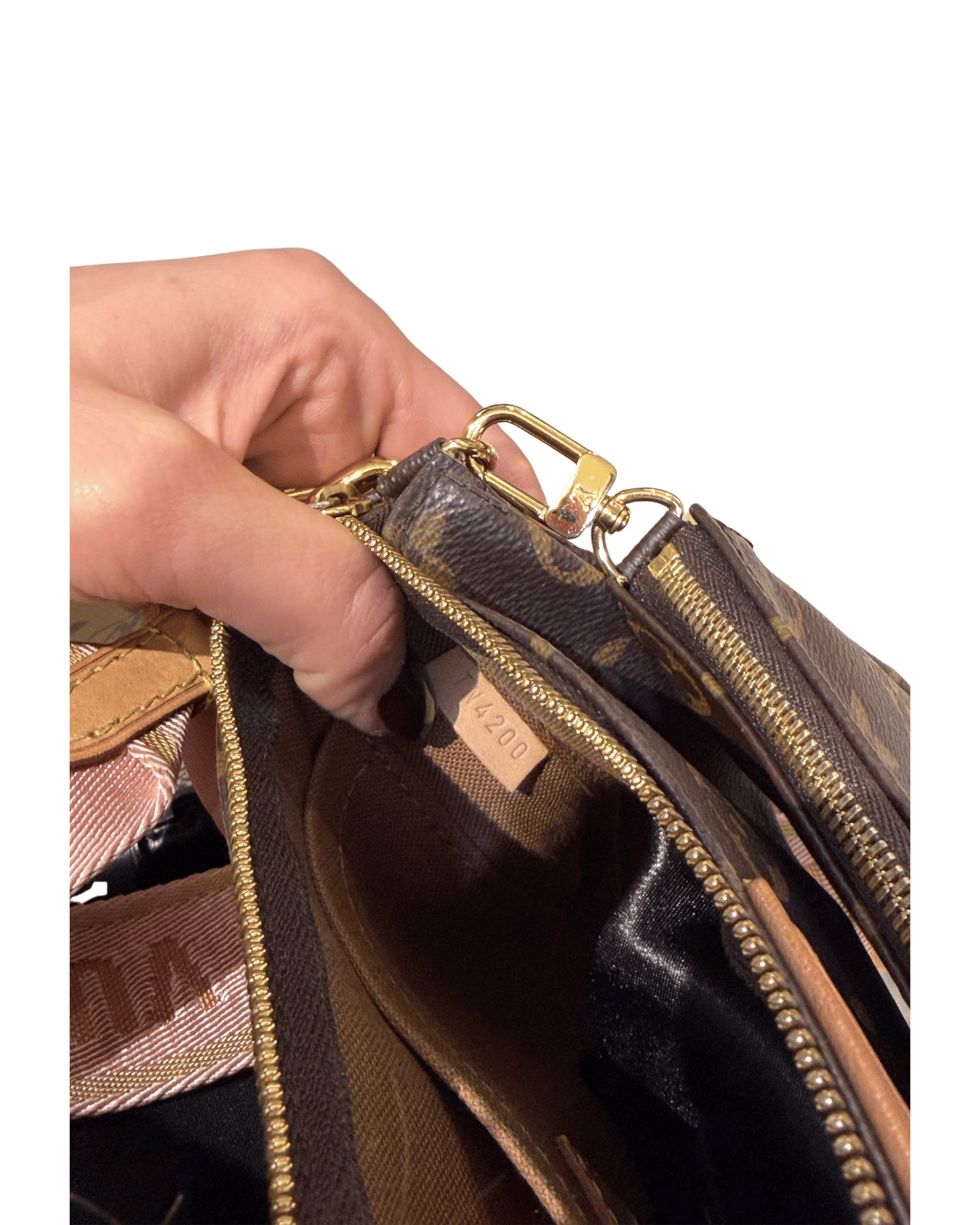 Multi Pochette Accessorise di Louis vuitton , corpo in tela monogram e rifiniture in vacchetta naturale. Portamonete rotondo con cerniera . Mini pochette accessorise e pochette amovibile . Interno in tessuto marrone. tracolla regolabile in tessuto rosalogato. Catenella frontale. Metalleria dorata. (codice: TN4200))