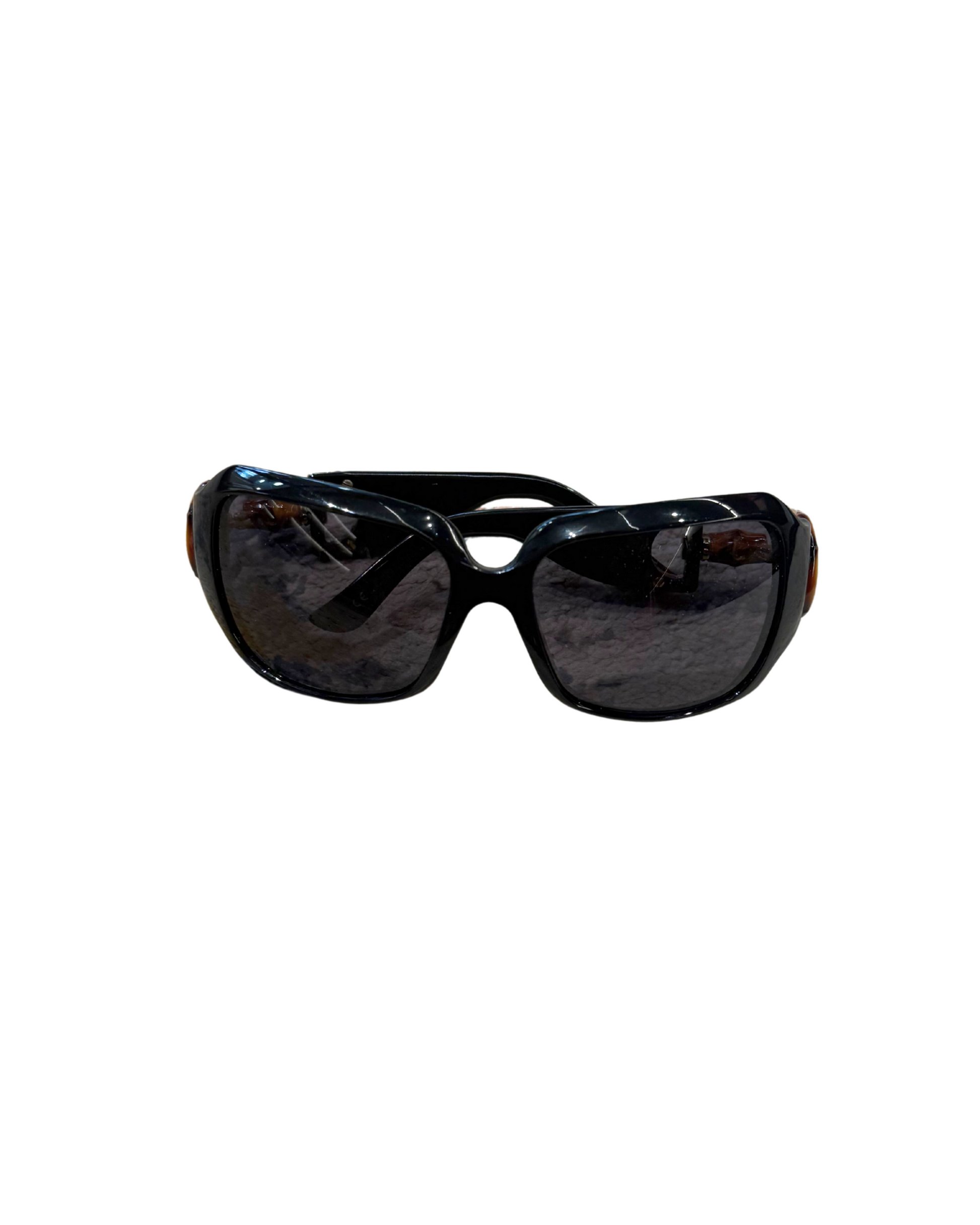 Eleganti e decisi, questi occhiali da sole Gucci rappresentano perfettamente l’estetica distintiva della maison. Realizzati in acetato nero lucido, si caratterizzano per le aste lavorate con dettaglio in bamboo effetto tartarugato e iconico logo GG dorato. Il frontale oversize conferisce un’allure decisa e contemporanea, mentre le lenti scure garantiscono una protezione ottimale dai raggi UV. Modello: GG2803/S