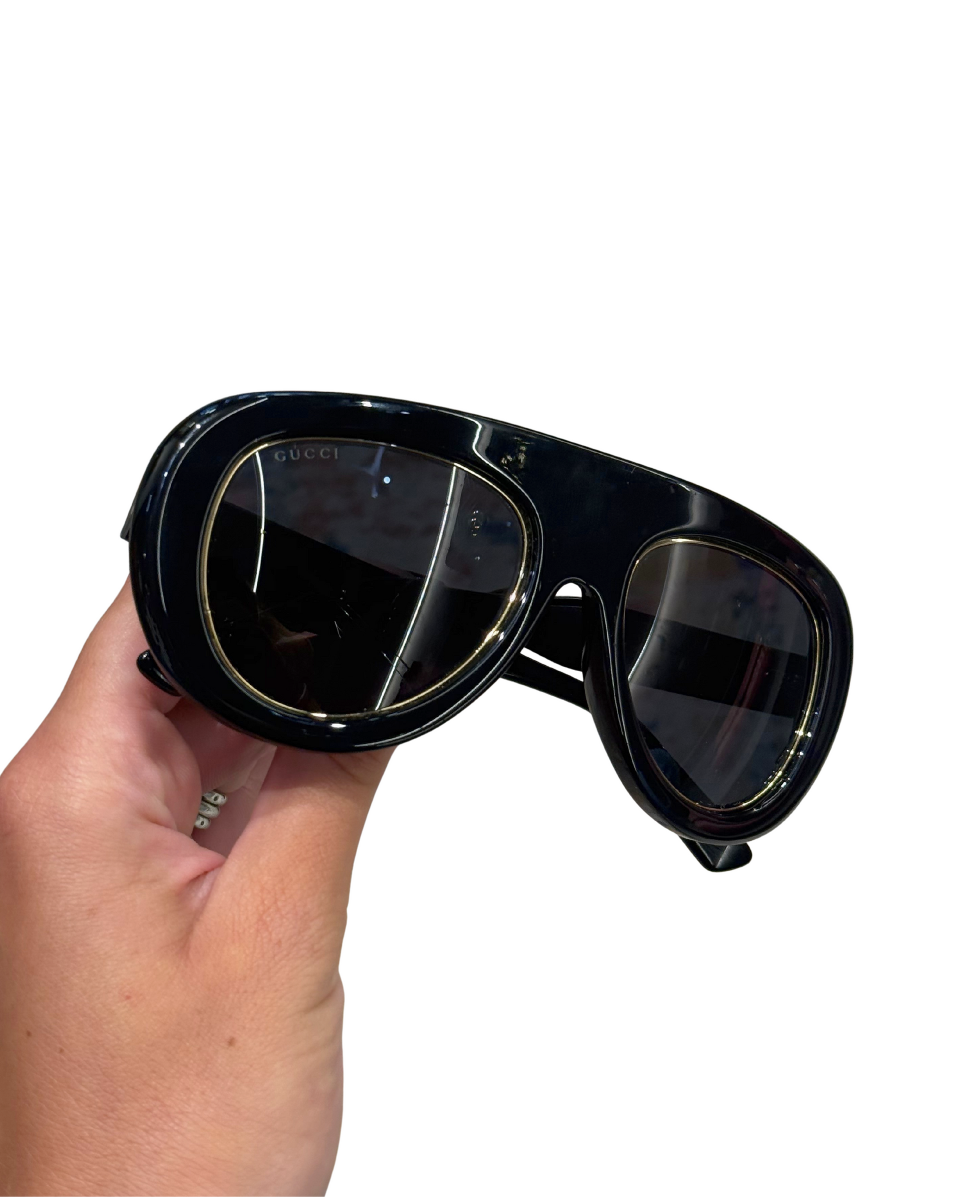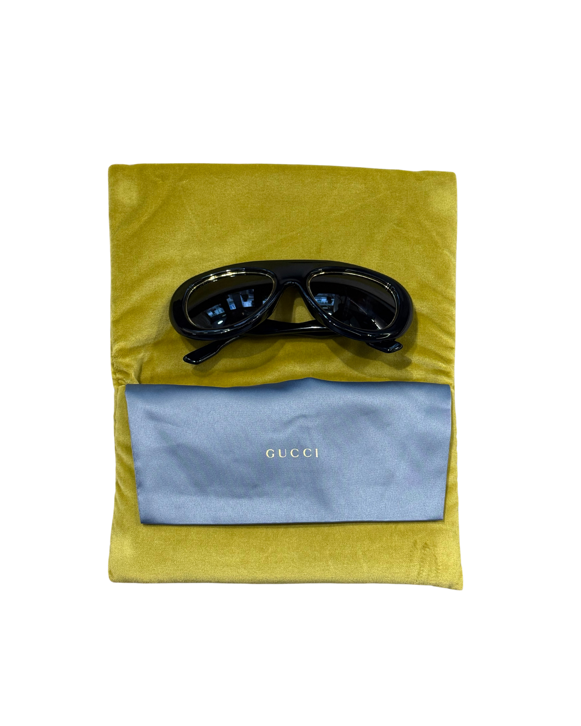 Questi occhiali da sole Gucci GG1152S sono un modello dallo stile audace e contemporaneo, pensato per chi ama distinguersi con carattere. Realizzati in acetato nero lucido con dettagli in metallo dorato, presentano una montatura oversize dalle linee avvolgenti e lenti scure che assicurano protezione e un look sofisticato. Le aste bold, arricchite dalla scritta GUCCI in oro a contrasto, rendono il design immediatamente riconoscibile e iconico. Prodotti in Italia con materiali di alta qualità. Le misure riportate sull’asta sono 54-21-140 (larghezza lente 54 mm, ponte 21 mm, lunghezza asta 140 mm)