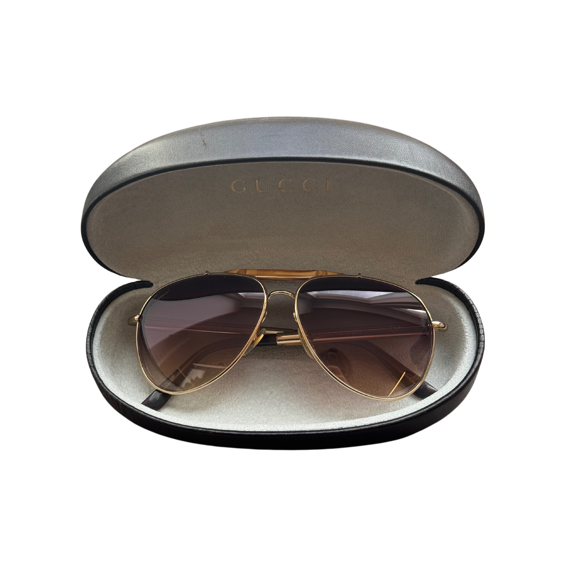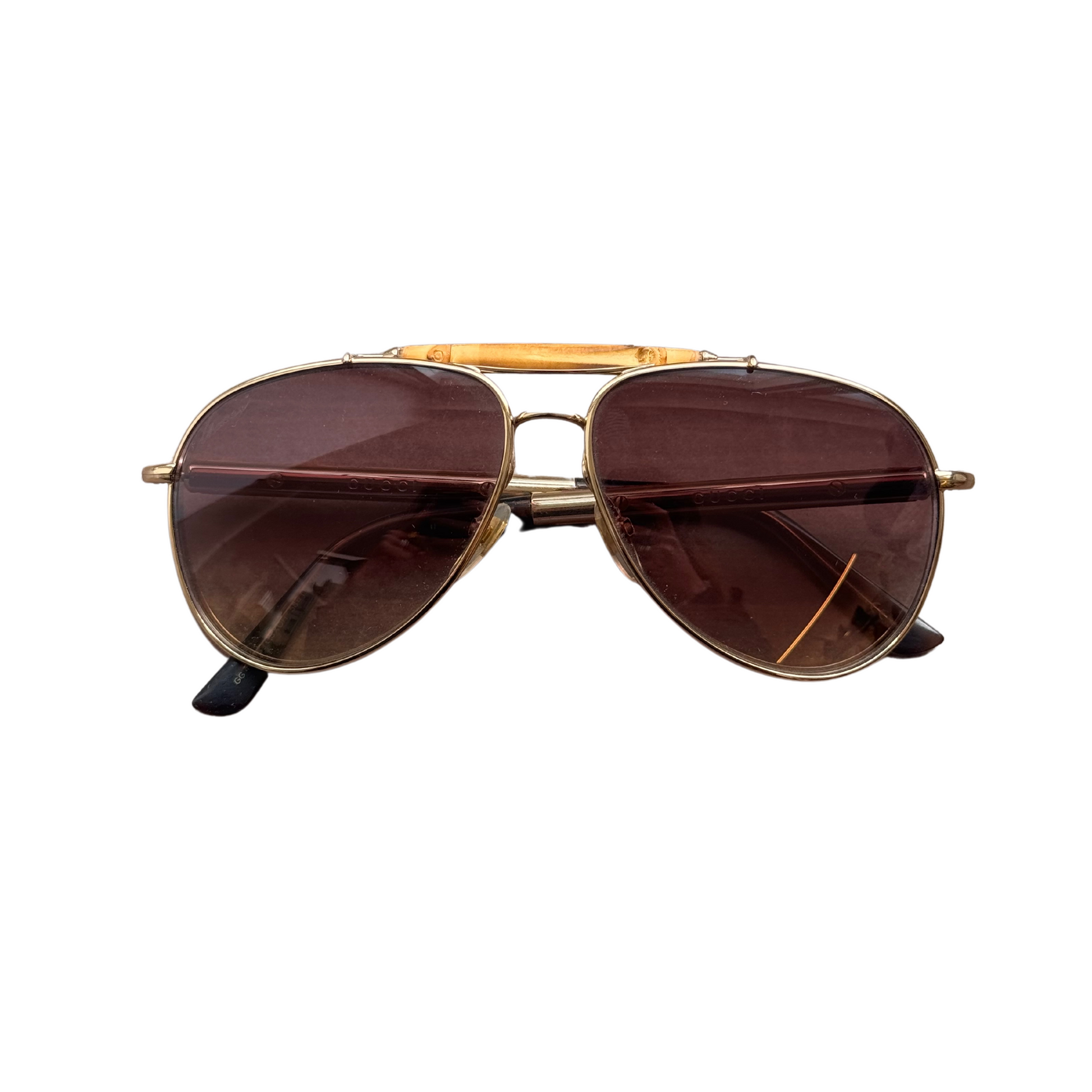 Occhiali Limited Edition Gucci a goccia, impreziositi da stanghette in bambu.