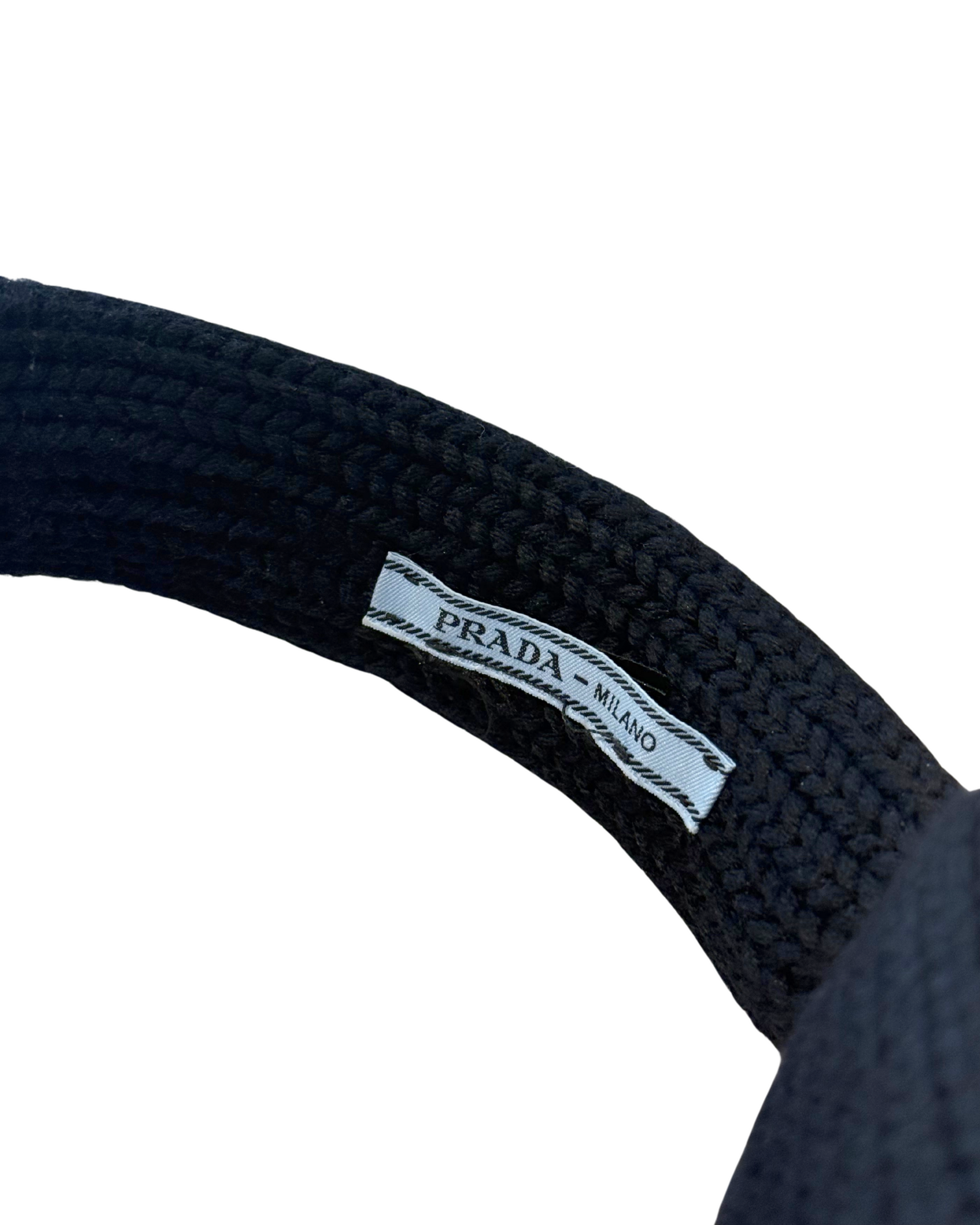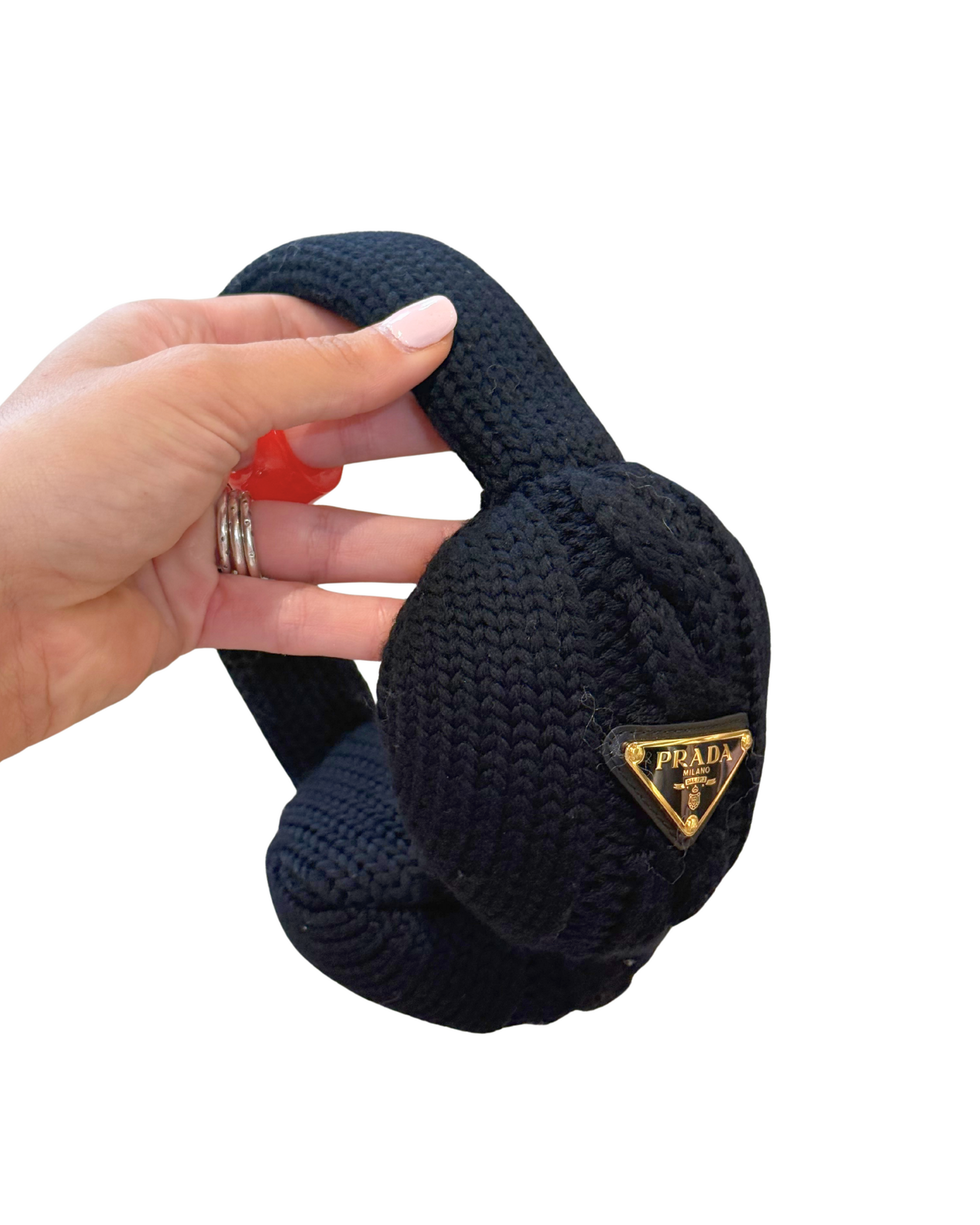 Caldi , comodi e con un tocco inconfondibile luxury: questi paraorecchie firmati Prada sono l'accessorio ideale per affrontare l'inverno con stile. Realizzati in lana nera a lavorazione spessa, avvolgono perfettamente le orecchie garantendo protezione dal freddo. Iconico logo triangolare.