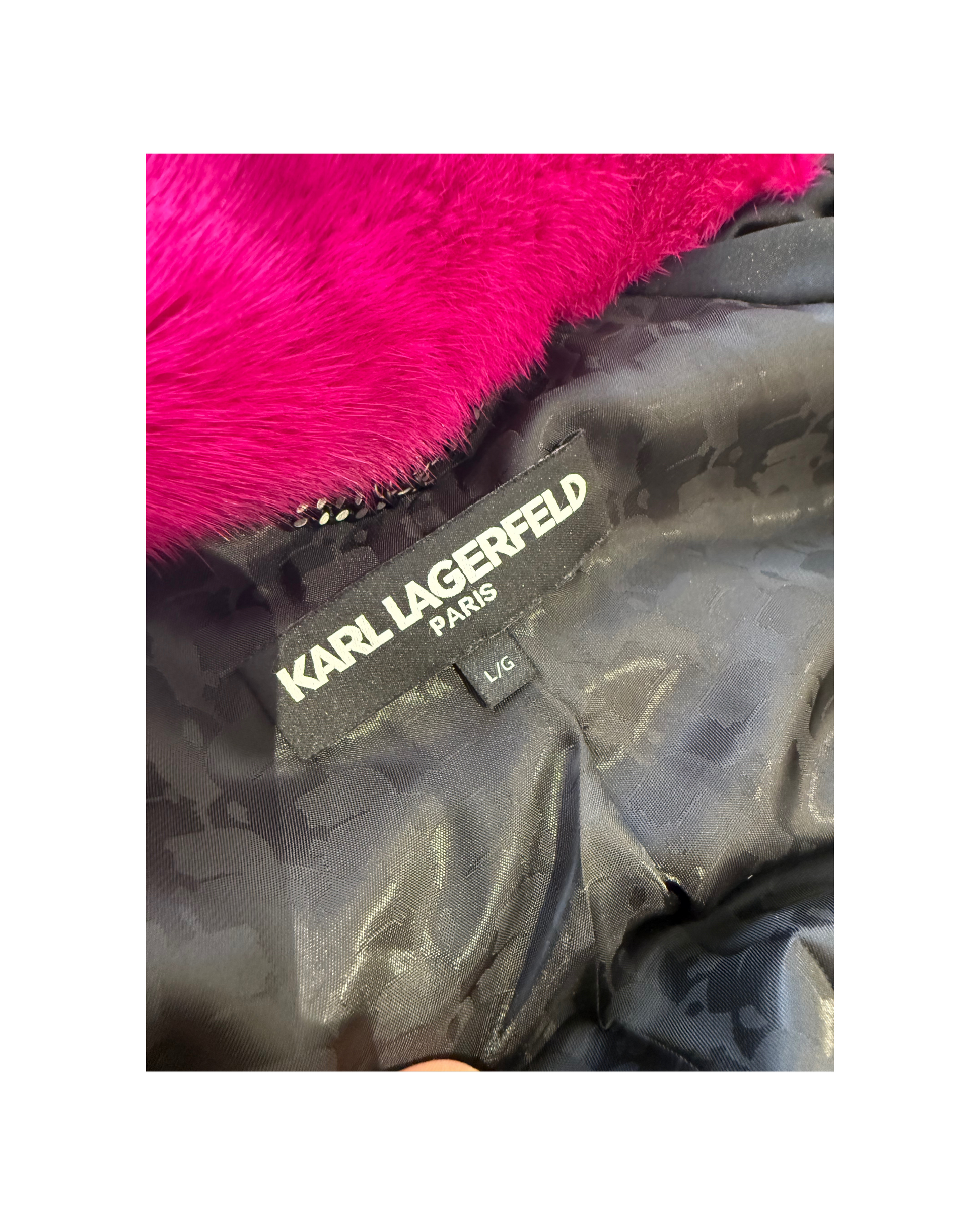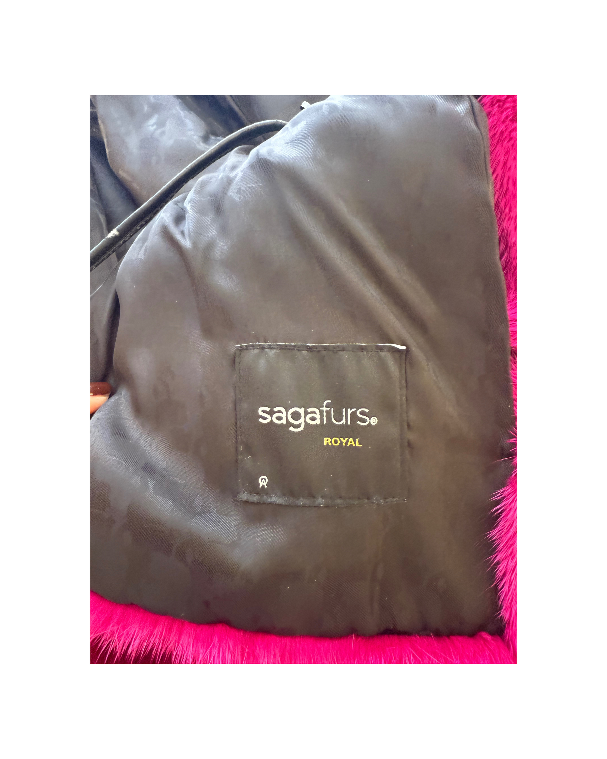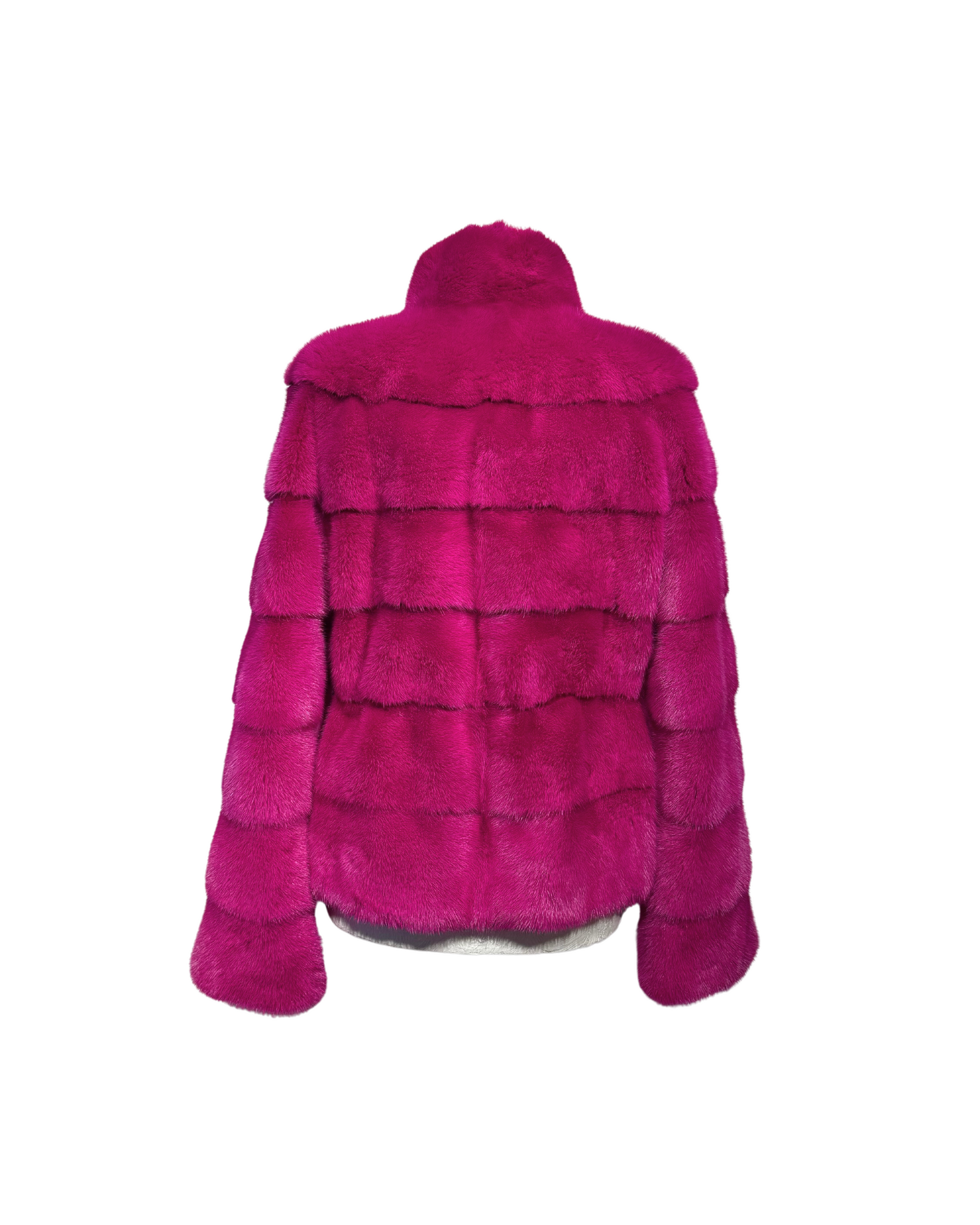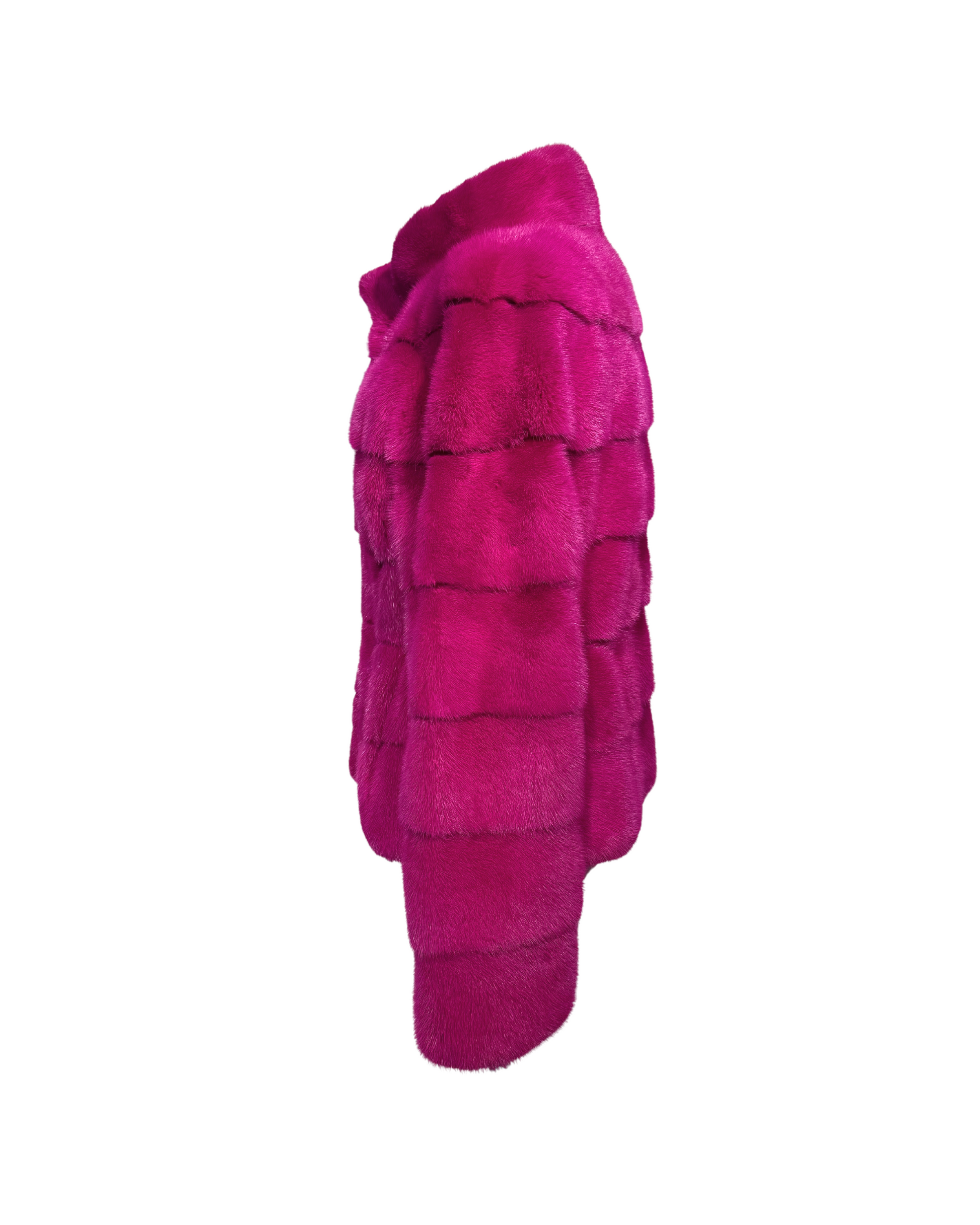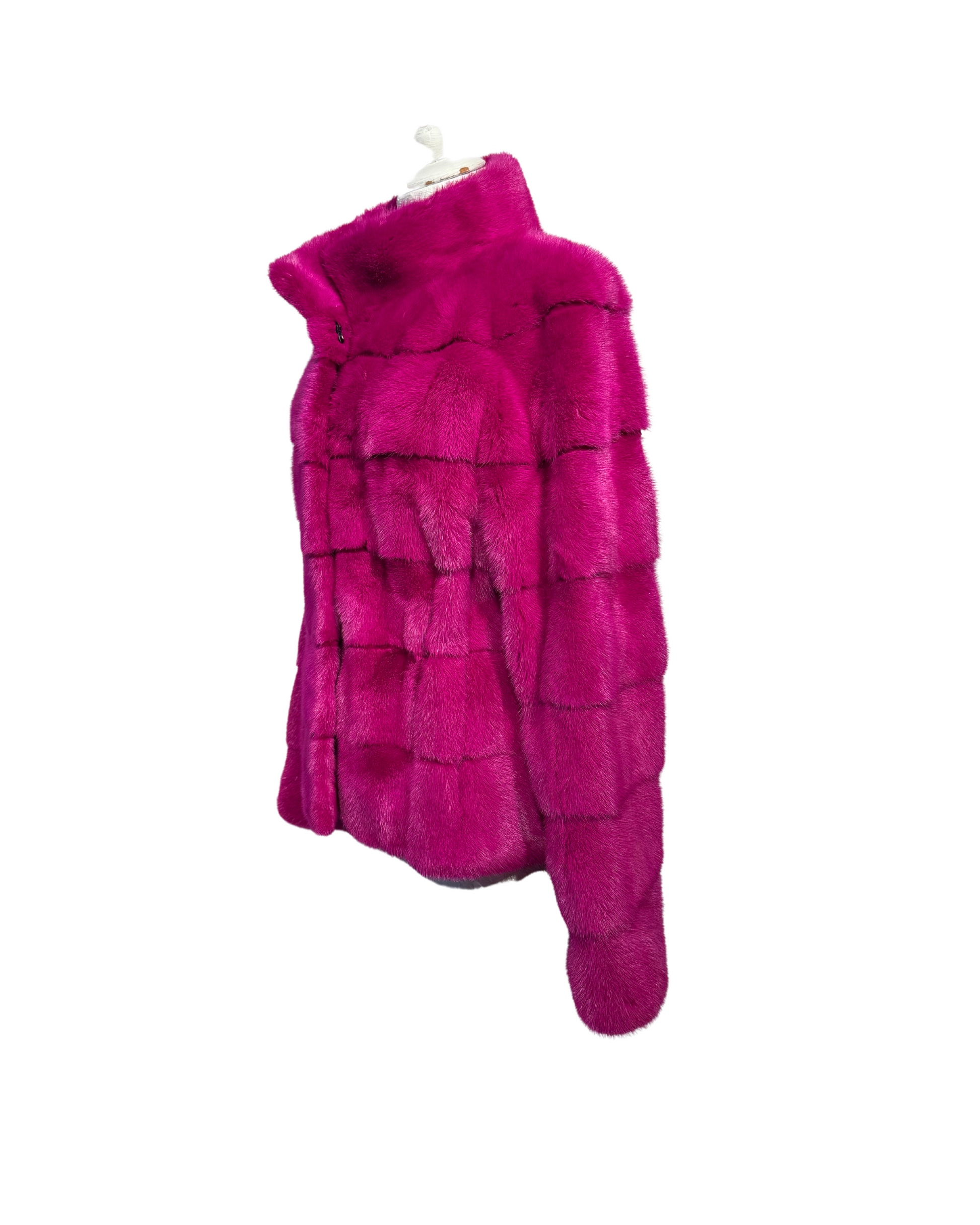 Una Pelliccia di forte impatto firmata Karl Lagerfeld, realizzata con pelliccia pregiata e certificata Saga Royal . Il design è moderno e strutturato, con lavorazione orizzontale a bande che esalta la lucentezza del visone. Chiusura frontale con ganci nascosta, colletto morbido e silhouette avvolgente. In vita è presente una coulisse che consente di stirngerla.