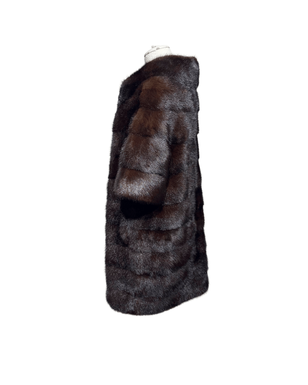 Un capo prezioso e intramontabile, realizzato in morbido visone dalla tonalità cioccolato profonda e luminosa. La lavorazione orizzontale esalta la naturale lucentezza della pelliccia, creando un effetto pieno e compatto, perfetto per chi cerca un capo elegante ma contemporaneo. La linea è dritta e leggermente avvolgente, con maniche corte che donano leggerezza e modernità al modello. Il collo morbido può essere portato aperto o più avvolto, aggiungendo versatilità allo styling. L’interno è foderato con tessuto tono su tono. Chiusura con bottoni magnetici.
