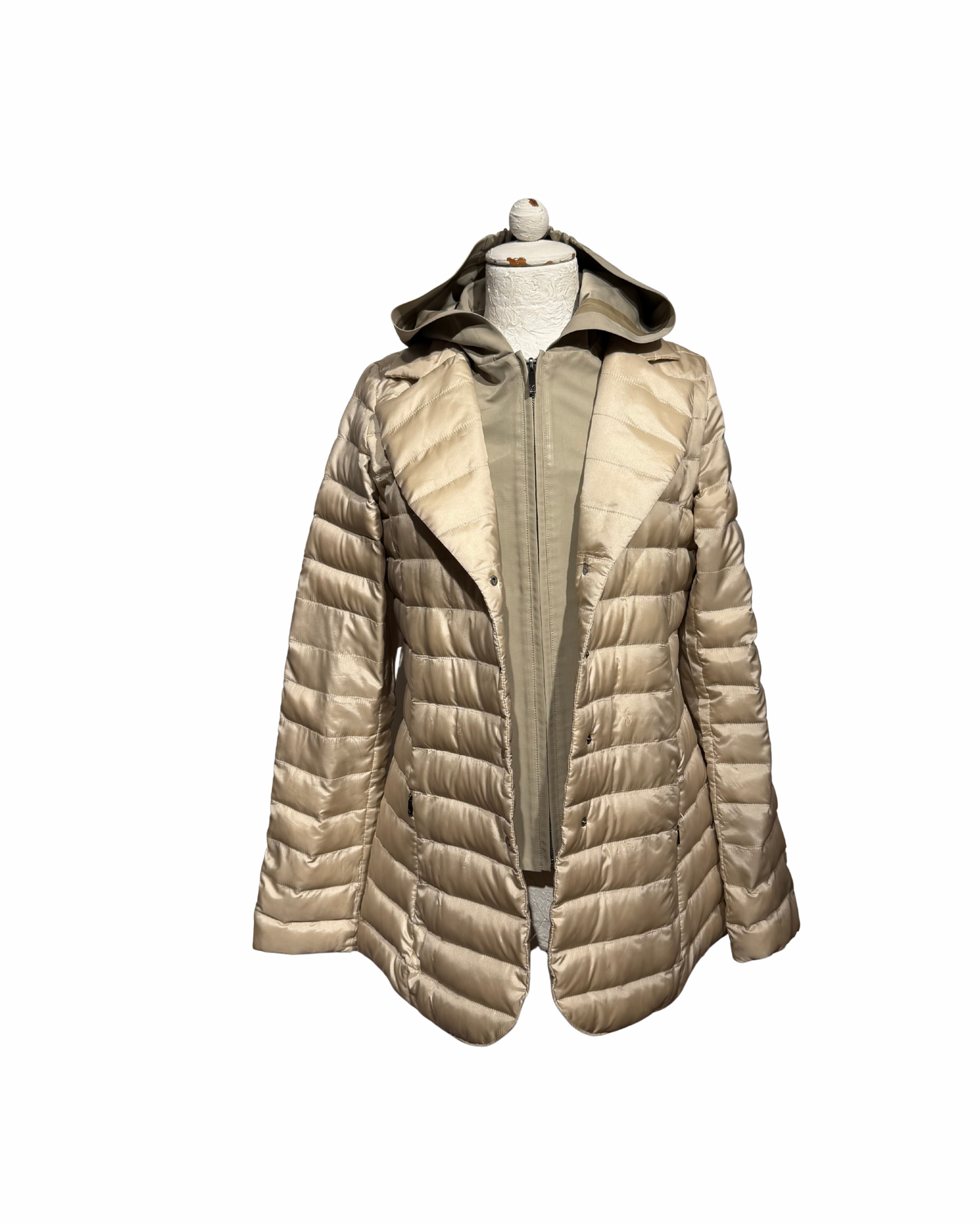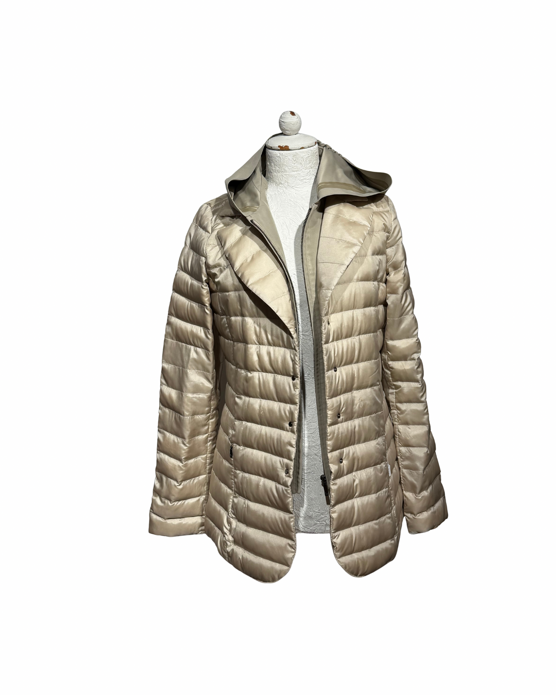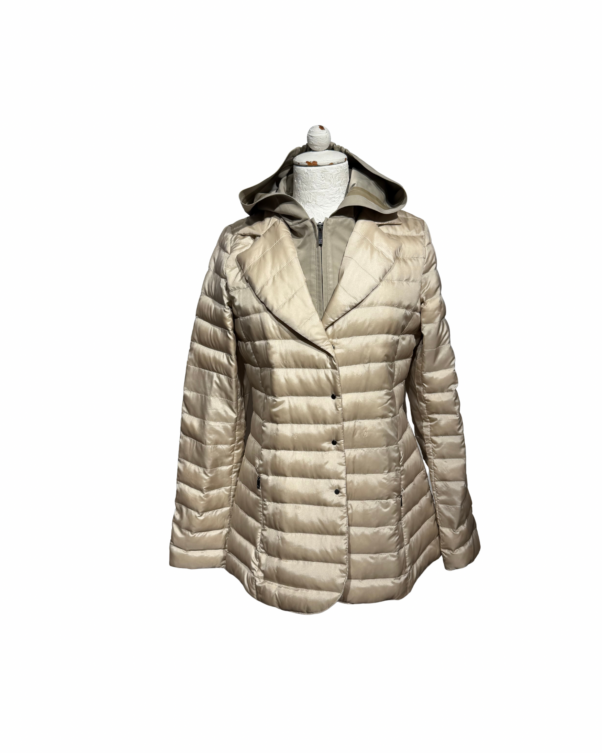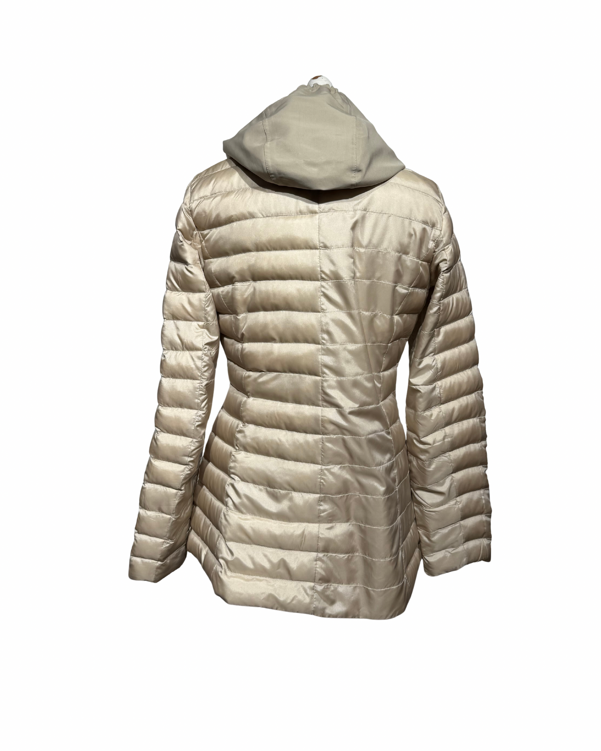 Un capo iconico della linea Weekend Max Mara, pensato per accompagnarti con eleganza nelle mezze stagioni. Questo piumino leggero in tonalità beige dorato unisce praticità e stile, con la sua linea leggermente sfiancata che valorizza la figura e il cappuccio che dona un tocco casual-chic.