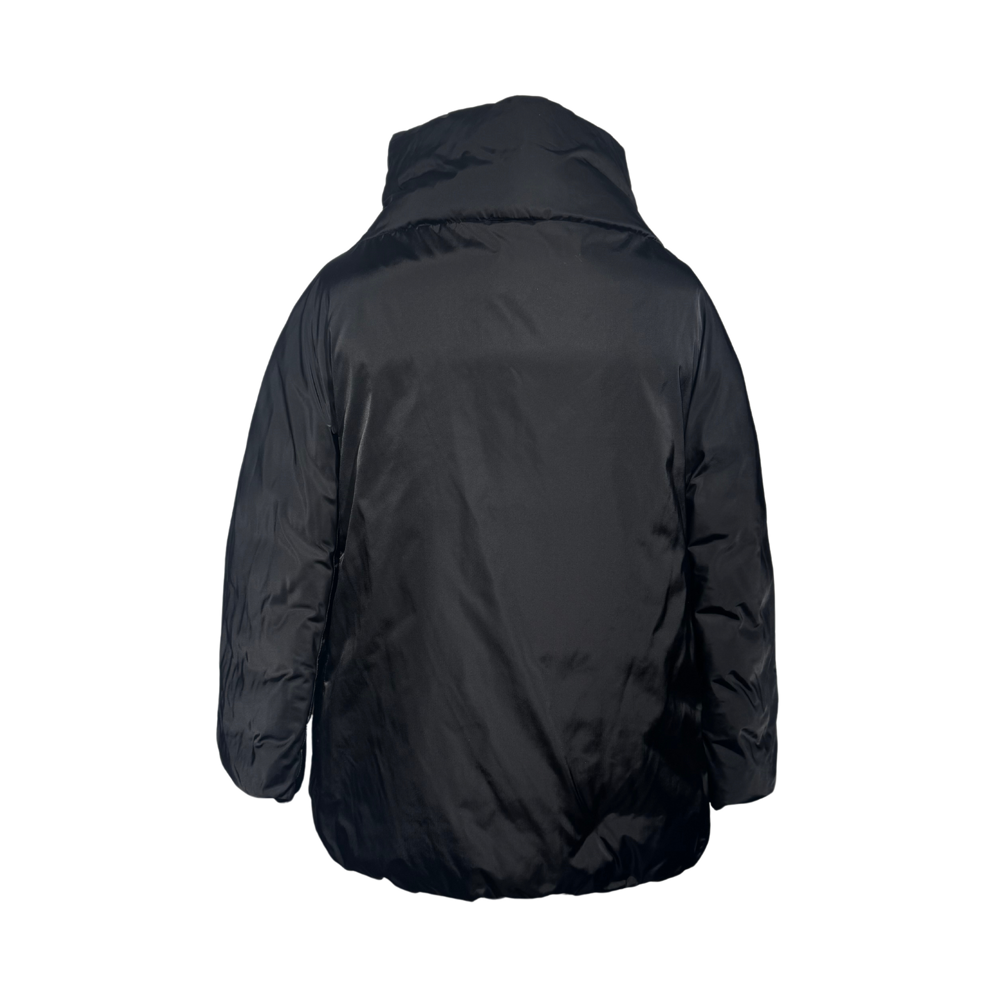 Piumino Herno reversibile con manica a tre quarti. Apertura con bottoni. Da un lato bianco /tortora /nero, dall'altra nero.