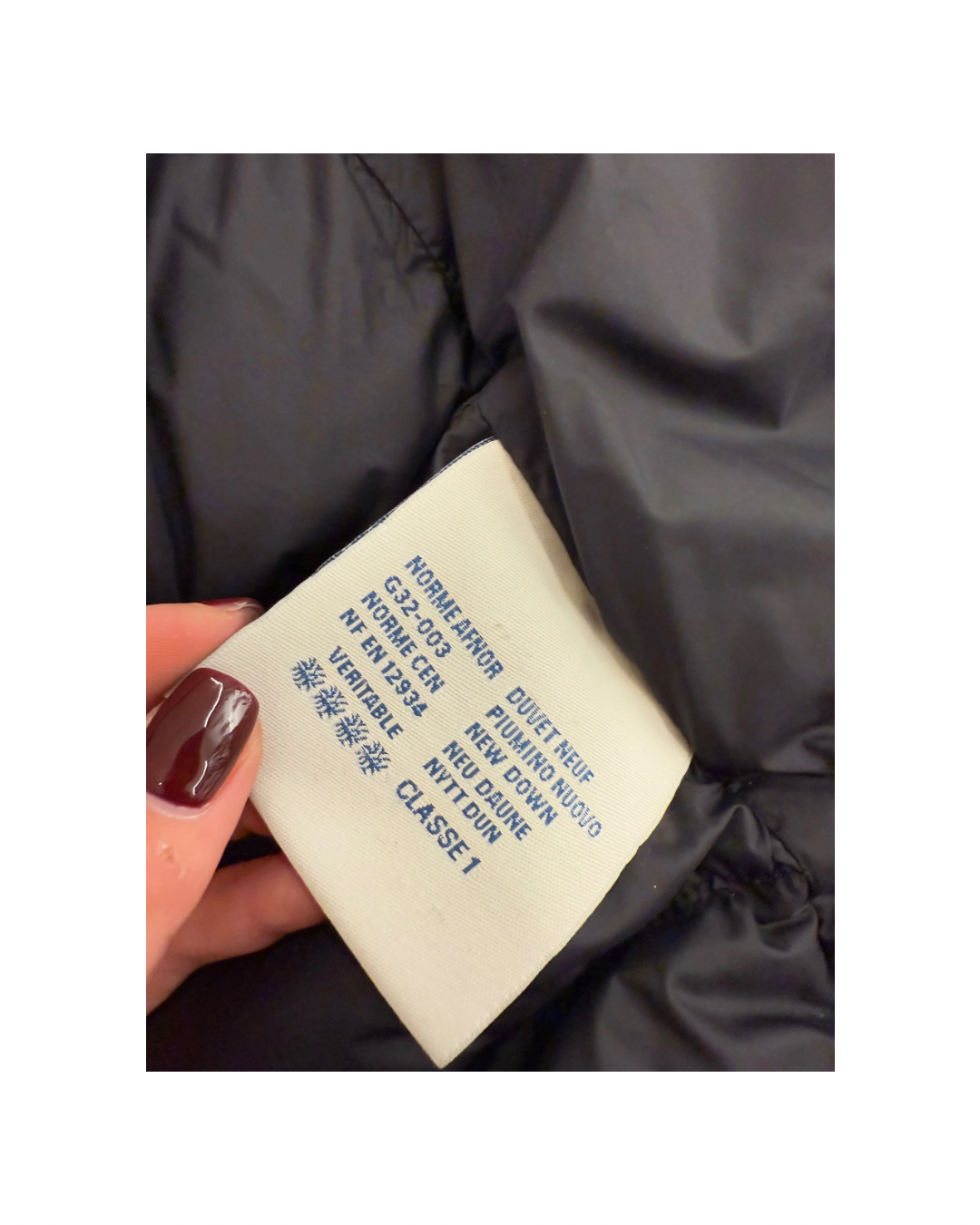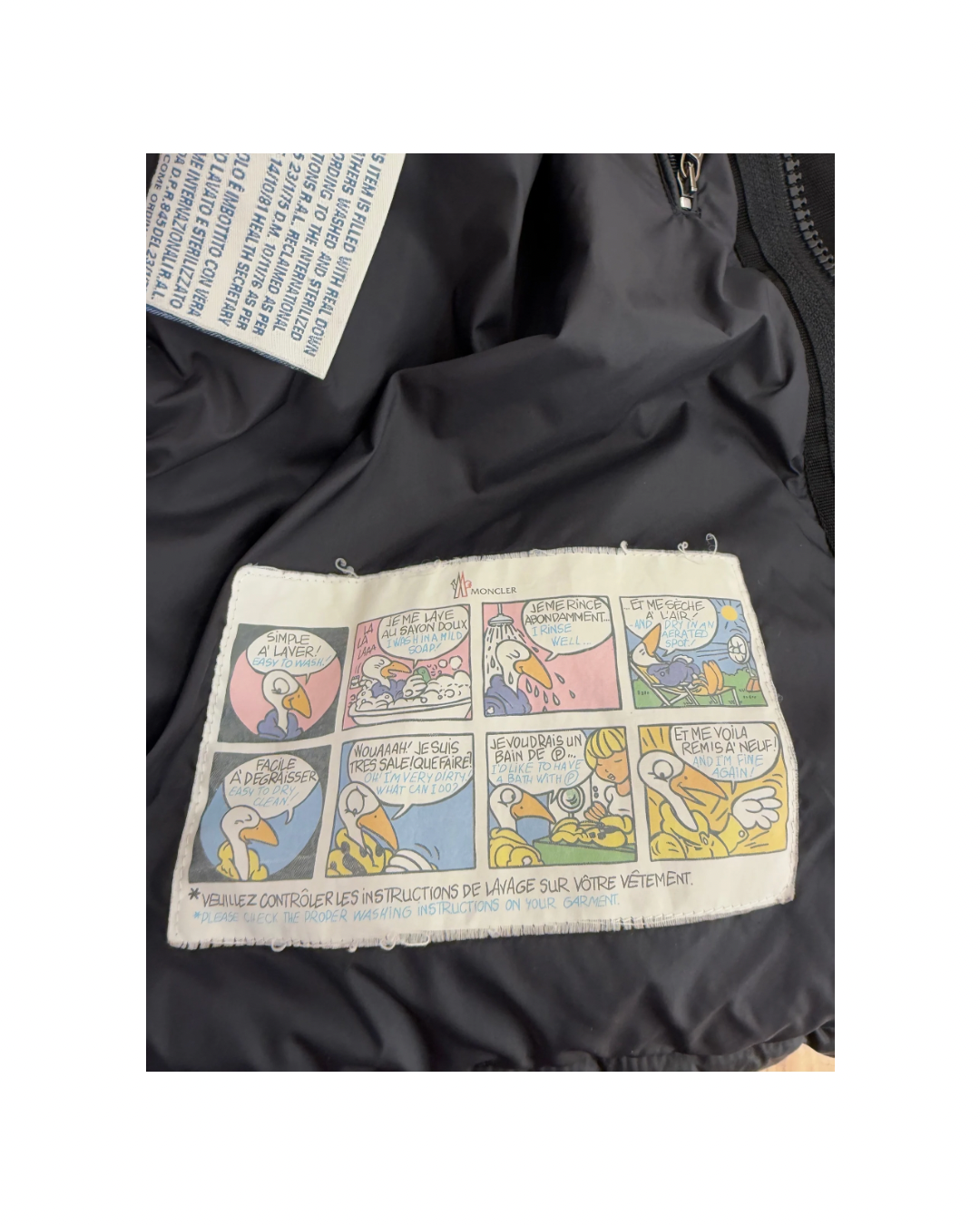 Un’icona senza tempo firmata Moncler, questo piumino in nylon nero con imbottitura in piuma d’anatra è sinonimo di calore, leggerezza e stile. Il modello presenta chiusura con zip e bottoni a pressione, collo alto avvolgente e tasche laterali con patta. ( presente cappuccio dentro al colletto perfetto per la pioggia) Il celebre logo Moncler ricamato è applicato sulla manica sinistra.